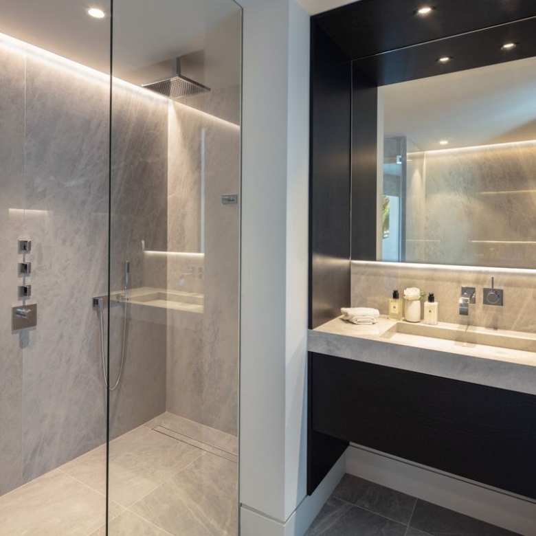has their own en suite bathroom with walk- in shower and top-of-the-range fixtures and