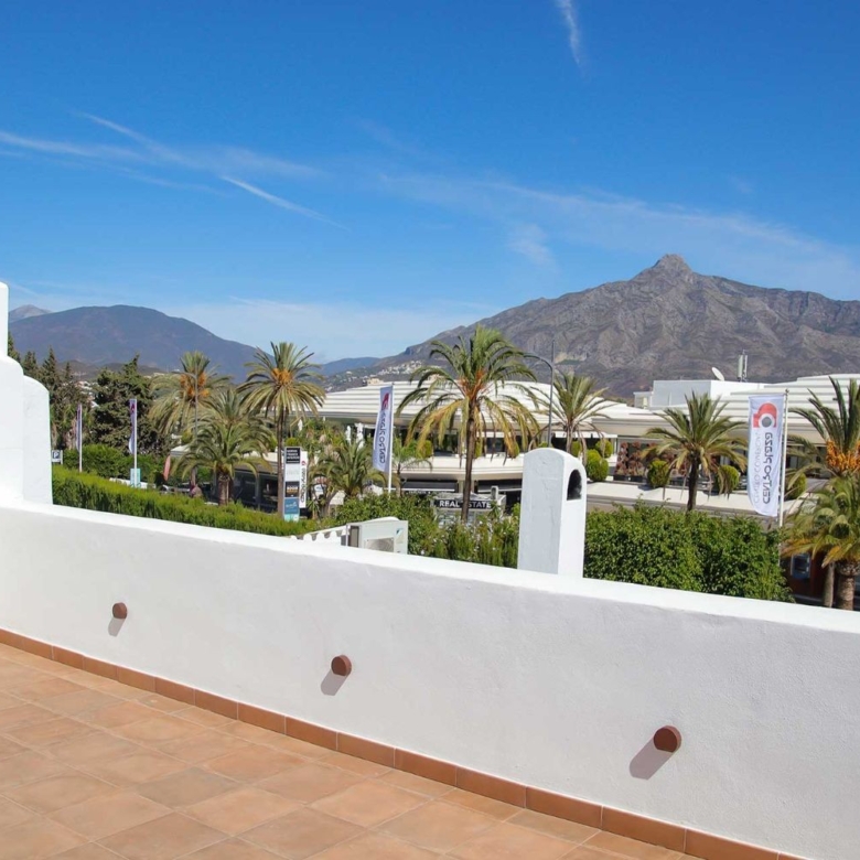 This luxurious 2-bedroom penthouse in Nueva Andalucía, Marbella, is a blend of contemporary elegance and Mediterranean charm. The open-plan design connects the living, dining, and kitchen areas, with high-quality materials and minimalist finishes. The kitchen is equipped with state-of-the-art appliances, ensuring comfort and functionality. The spacious bedrooms, each with elegant wooden floors and built-in closets. The bathrooms follow a minimalist aesthetic, featuring walk-in showers, integrated shelving, and natural wood accents. The private terrace enjoys a panoramic views of the Mediterranean Sea and La Concha mountain. The property also includes access to a communal swimming pool within beautifully landscaped gardens. It is located in the center of Marbella’s luxury lifestyle, near boutique shops, high-end restaurants, fitness centers, and supermarkets. Puerto Banús, known for its luxury yachts, designer stores, and vibrant nightlife, is just a few minutes away. This penthouse is a rare find in today’s market, making it an ideal choice for those seeking a modern, luxurious home in Marbella.