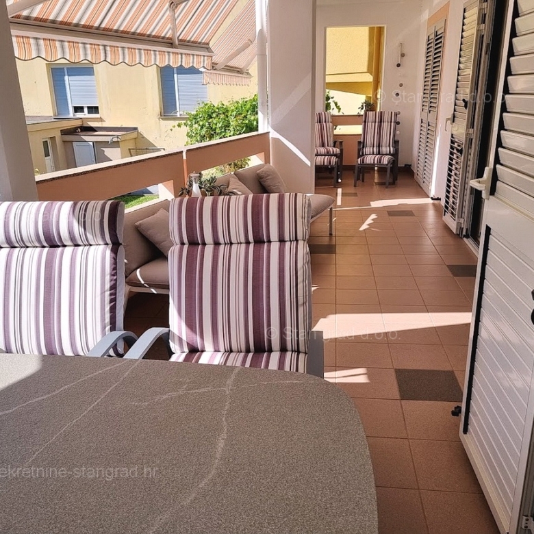 For sale by the Stan Grad Immobilien agency on the Adriatic coastal area of the island of Krk, there is an apartment of very good quality and in a general state of preservation. This apartment is located in an excellent and rarely available location, very close to the sea and within walking distance of the center of Punat and key life amenities. Considering the property by type, this is a spacious one-story apartment. Within a very nice house, the apartment is located on the ground floor. The total area of this apartment is 97 m2. The above dimensions include a living room and kitchen, 3 bedrooms, a bathroom, a toilet and a covered terrace. The well-maintained interior of the property is fully furnished with quality furniture and all the necessary technical equipment. The owner of the apartment can use all the common parts and spaces of the property without hindrance. One owned parking space is provided in the yard of the described apartment. In addition to the previous technical and spatial features, it is important to single out the beautiful orientation of the apartment, which offers a pleasant view of the sea and nature. The apartment in question is owned by a physical obligation and upon transfer of ownership is subject to the calculation of real estate sales tax in the amount of 3%. The owner of this apartment guarantees a quick and easy transfer of ownership to the buyer of the property. We are happy to welcome you in Kvarner, at the address of our office on the island of Krk. In addition to the presentation of the real estate and its legal status and conducting negotiations with the seller of the real estate, our expert team will assist the buyer in transferring ownership of the apartment and transferring bills for electricity, water supply and utility services to his name.