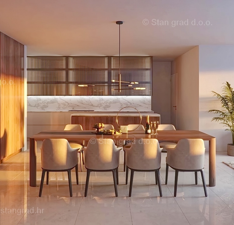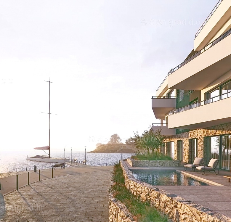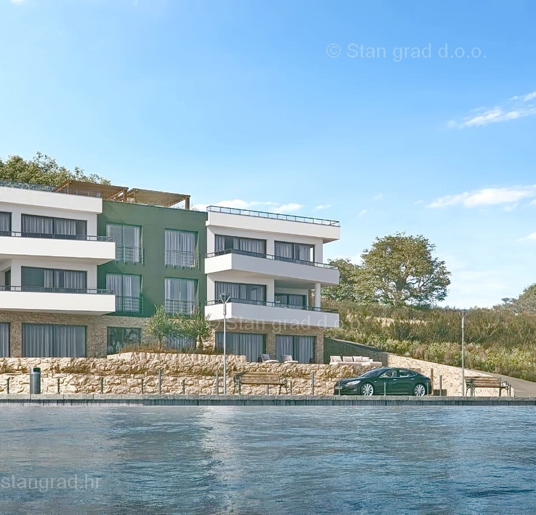 The Stan Grad Immobilien agency is selling an exceptional apartment built according to a modern project on the attractive northern Adriatic area of the island of Krk. This apartment is located in an exceptional location, first row to the sea in the vicinity of Punt. This is an extremely comfortable one-story apartment that offers its tenants a nice living space. In a first-class building, the apartment is located on the ground floor. The total area of this apartment is 103 m2. This area includes the entrance hall, toilet, 2 bathrooms, 3 bedrooms, one of which has a dressing room and private bathroom, kitchen with dining room and living room with access to a spacious covered terrace and garden. A special charm is given to this apartment by its garden, which contains a swimming pool and a sunbathing area. A vehicle can be comfortably parked in the adjoining part of the garden of the described property. In addition to the previously mentioned characteristics, the apartment has an excellent location and orientation, which provide its residents with a beautiful open view of the sea. The property is under construction, and the planned completion of the works is expected at the end of 2025. This apartment is subject to VAT. The seller of the apartment guarantees complete and orderly documentation and a simple transfer of the property to the buyer. Contact us with confidence at the address of the office on the island of Krk and we will be your partner for the safe purchase of real estate in Kvarner. The sales team of the Stan Grad Immobilien agency will be happy to assist the buyer of this property in transferring ownership of the property to the land register and transferring electricity, water and garbage collection bills to their name.