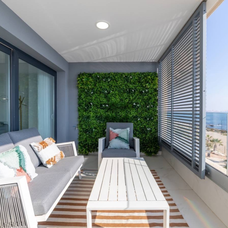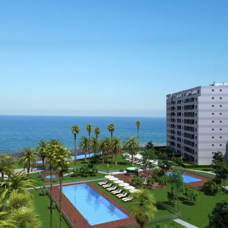 Apartments on the seafront in Punta Prima, Torrevieja, Costa Blanca A new promotion of apartments with exclusive views of the sea and the beach. The homes have been designed with comfort and convenience in mind, with excellent qualities, thus allowing you to fully enjoy the common areas of the residential area. The residential consists of houses with 2 and 3 bedrooms and 2 bathrooms, all of them with large terraces and magnificent views of the Mediterranean Sea and the beach of Punta Prima and facing south. All homes are delivered with an underground parking space and storage room. Closed surveillance circuit. This residential is characterized by its large garden areas and its complete facilities from which you can enjoy the sun and sea views; These common areas are equipped with 3 swimming pools, one of which is partially heated. Children can enjoy their own children’s pool, as well as a children’s play area. From the urbanization, there is a direct access to the promenade. 1 hour from Alicante airport. Punta Prima, located just 5 km from Torrevieja, is characterized by good communication infrastructures, as well as sanitary facilities, the proximity to Alicante airport, and the number of services open throughout the year. Just 10 km away we can find the golf courses of Villamartin, Campoamor, Las Ramblas, Las Colinas and Lo Romero; all of them 18 holes, as well as the Zenia and Habaneras shopping centers. Delivery date block 5 (48 apartments): November 2022 Includes: Underground parking, Storage room, Community pool, Elevator, Community garden, Private garden, Air conditioning, Heating, Underfloor heating, Sea views, Near the beach, Terrace, First line to the sea, Public transport, Nearby servicesEnergy rating: C Property ID: GH-24124-D-D Price: €574,000 Property Size: 105 m2 Land Area: 143 m2 Bedrooms: 3 Bathrooms: 2 Property Type: Apartment Property Status: For Sale