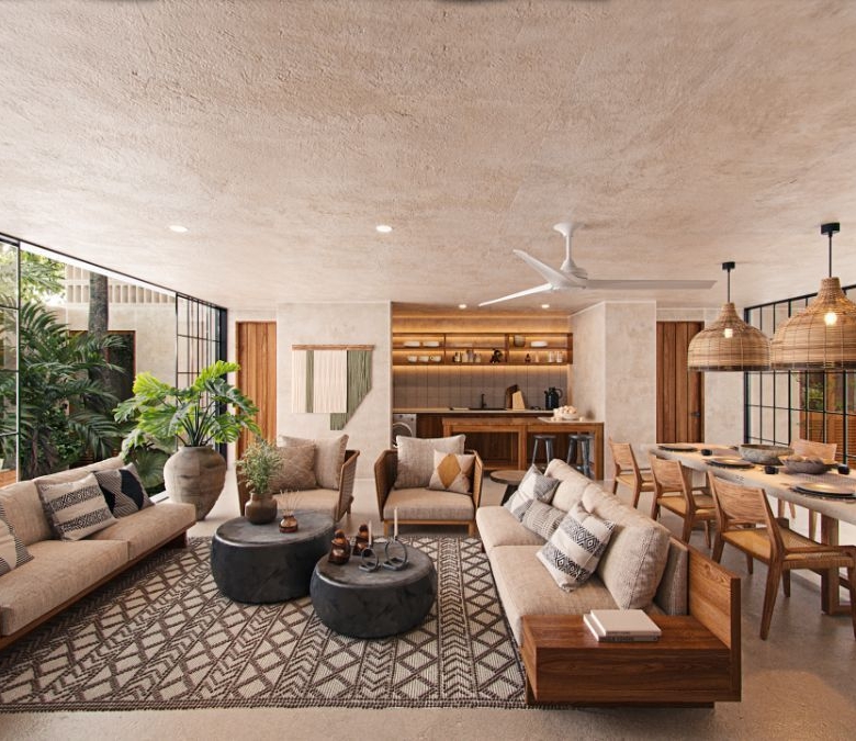 Crafted by the esteemed architectural firm Garduno Arquitectos, this residence harmonizes contemporary living with the rich heritage of the Yucatan Peninsula. Each space thoughtfully integrates natural light, carefully selected materials, and serene landscaping, reflecting a timeless design that enhances comfort and tranquility.