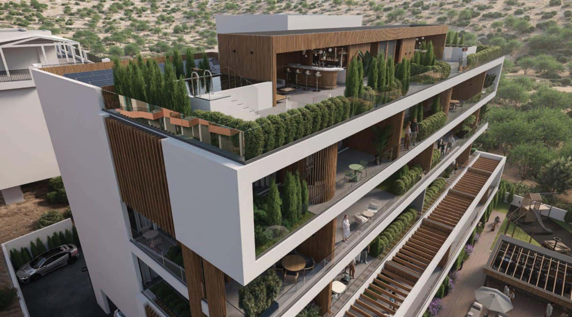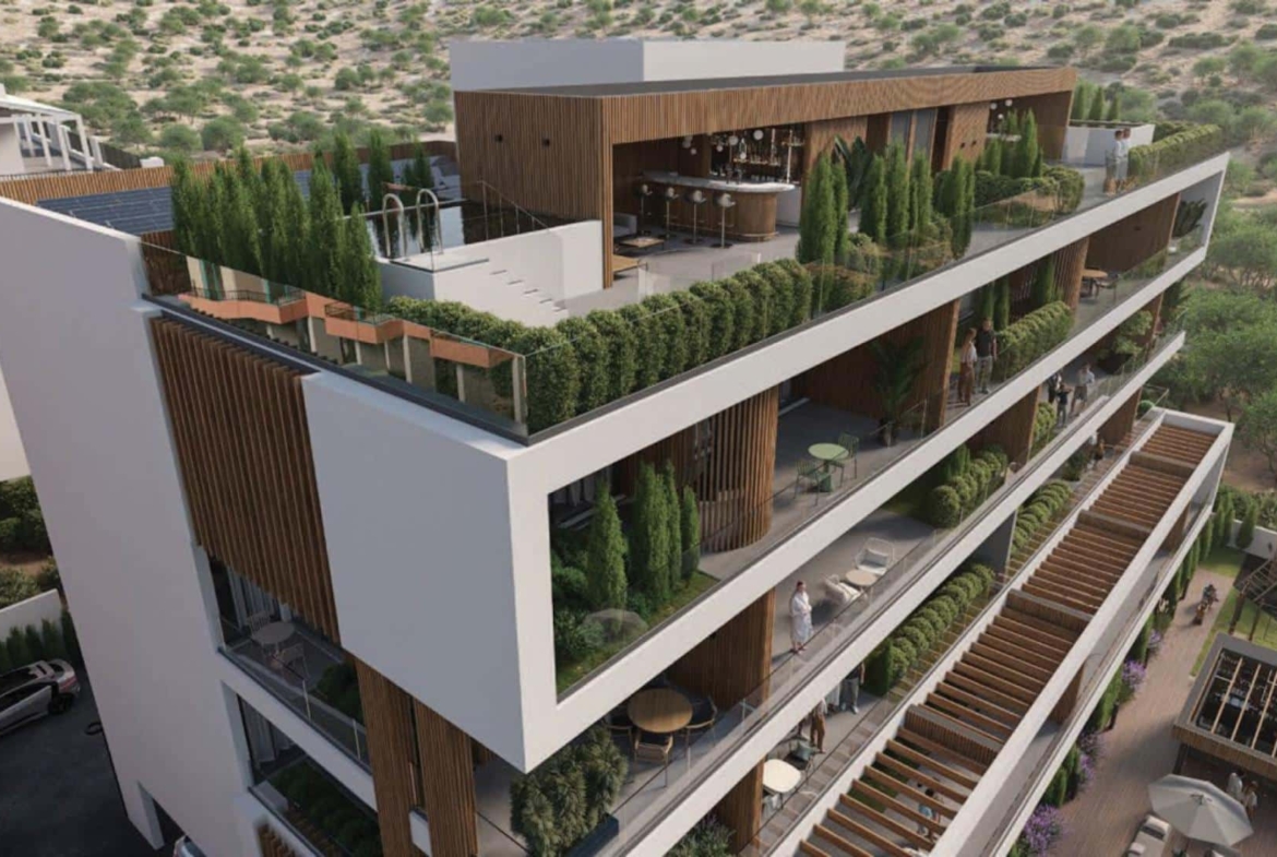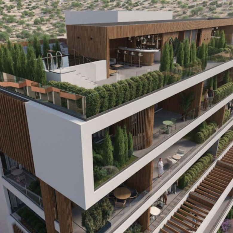 Introducing a remarkable new mid-rise apartment development of 1,2 and 3 bedrooms in the upmarket suburb of Yermasogeia, just north of Limassol city. The development features secure gated access, ample off-street parking, a fabulous pool and entertainment terrace, a children’s playground, a BBQ and bar area, and landscaped grounds. Designed with the modern way of living in mind, these apartments are configured to maximise floor area and optimise tree-top views from balconies. Day to day living areas benefit from full height glass doors that embrace the balconies, while kitchen and dining layouts create year-round indoor/alfresco dining opportunities. The amazing 3 bedroom spacious penthouse includes photovoltaic panels and boasts a wonderful 46㎡ terrace with panoramic views!