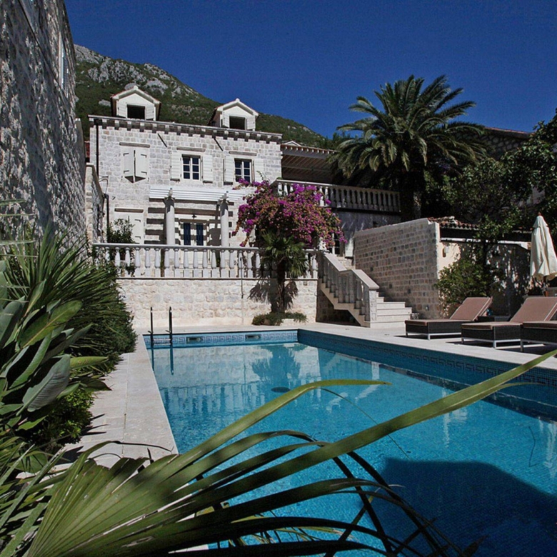 This beautiful, 350 years oldstone villa for saleis locatedin Perast, in Kotor municipality. Perast, as an absolute highlight of theBay of Kotor, is one of the most beautiful baroque towns in Montenegro.As a former sailor center, it still shines with marvelous buildings, pretty churches, and a romantic waterfront.The villa is renovated in 2013. It has an area of 273m², with an additional terrace of 48m².During the renovation, only the highest quality materials were used (Italian stone slabs and bathroom equipment, Dutch and French furniture, Toshiba air conditioning, Bosh households appliances, etc), so further investment is not needed any time soon.From the spacious terrace, you have access right to the ground floor. There is the kitchen and living area with an old-fashioned stone fireplace, wine cellar, and the extra apartment next to the living room, with its bathroom and a small kitchen.On the first floor, there is a big dining area with a kitchen, one bedroom, bathroom, and a terrace with an open sea view. There is a barbeque area on the same level, in the back of the house.On the second floor, there are two bedrooms and one bathroom. The villa is air-conditioned and additionally, there is underfloor heating in the living room and all bathrooms.In front of the villa, there is a big swimming pool 11mx5m, with heating, lighting, and a swimming geyser. Near the pool, together with pool furniture – deck chairs and parasols, there is also a rest area and an arranged space for family gatherings and outside dinners.This villa is well known as the house with the largest garden in Perast, so it is a perfect place to enjoy it with your family and friends.Below the pool, in the basement is a technical room. The villa is also equipped with video surveillance.This beautiful old villa is just a few steps away from the beach, crystal clear seawater, and all other amenities and famous places in Perast.In terms of connectivity, Old Town of Kotor is just 14km from the villa, airport Tivat 22km, Porto Montenegro marina for superyachts only 25km, and Porto Novi only 23km from here.Thanks to such a good location, in the heart of Perast, the value of this property will only grow over time.Do not hesitate to contact us for more information, we believe that this property won’t be so long on the market.