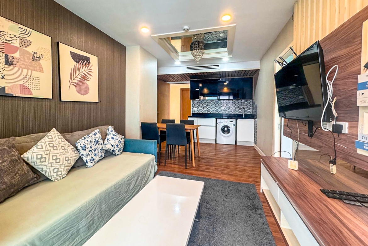 This 2-bedroom, 2-bathroom condo is situated on the 5th floor of Building C at Dusit Grand Park 1, a well-managed, resort-style condominium in the Jomtien area of Pattaya. With a total living area of 62.73 sq.m., this fully furnished unit is ideal for both residential living and investment. The unit is under foreign ownership (foreign quota), making it available for non-Thai buyers.