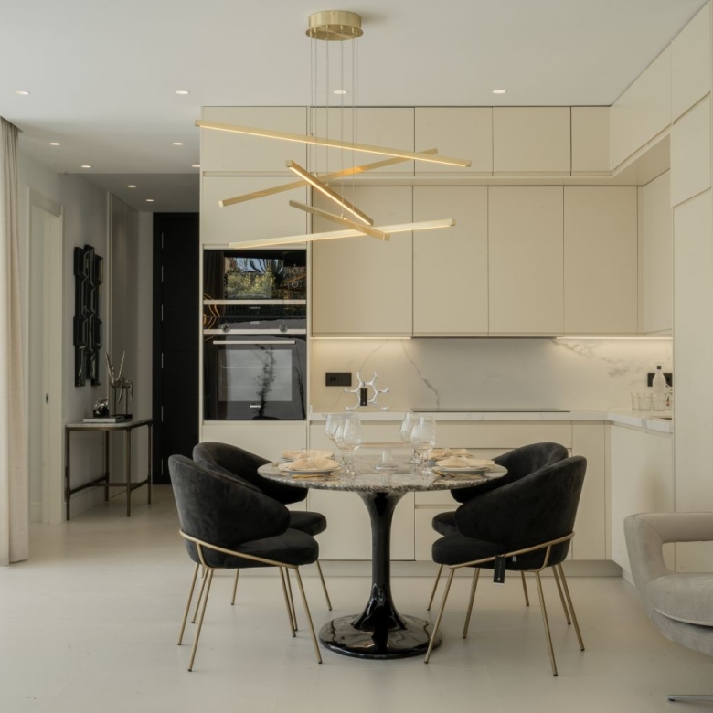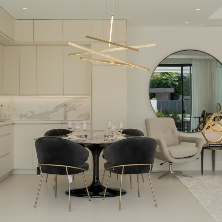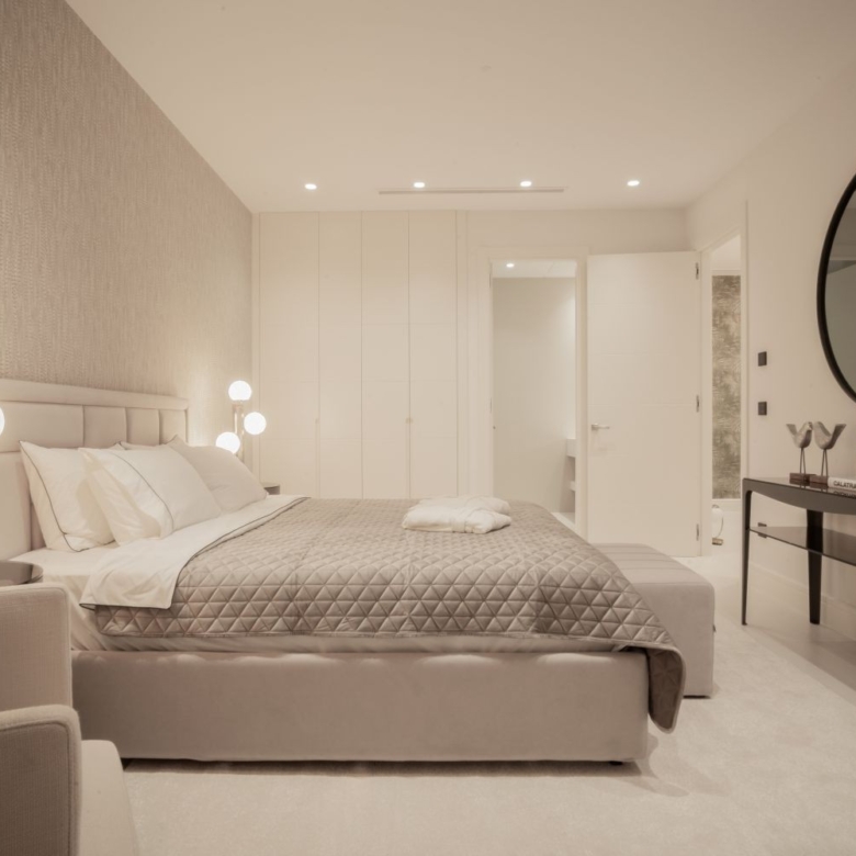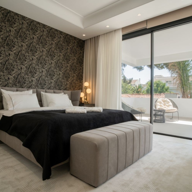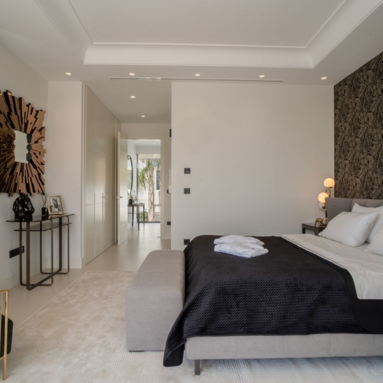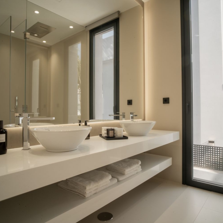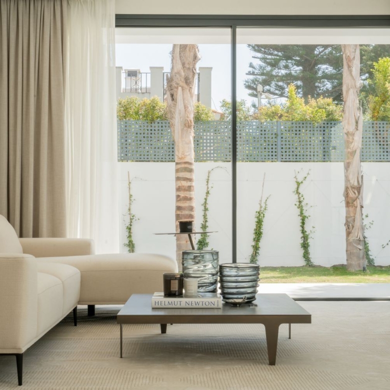 These marvelous new modern villas for sale are located in one of the most luxurious residential areas in Marbella – Golden Mile, in a secure urbanization Rio Verde, just 100 meters from the beach. The villas combine excellent quality, amazing location and the best price. Each house is spacious, full of light and equipped with everything necessary for a comfortable life. It consists of 4 bedrooms and 5 bathrooms, as well as large terraces on each floor, both covered and uncovered, perfect for barbecue, gatherings with friends or just sunbathing to your heart’s content. A private swimming pool will bring joy to your whole family throughout long Spanish summer. These villas in the Golden Mile are located close to the beach, three minute walk away from Puerto Banus and within a walking distance from the supermarkets. The villas offer beautiful sea views and are the perfect choice both as a holiday residence and as a family home.