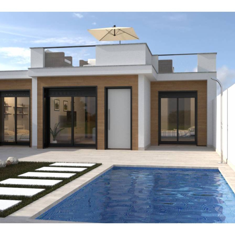 Semi-detached villas in Roda Golf, Murcia, Costa Calida A residential complex of 5 semi-detached houses on one level with a private pool and parking space on the plot. The houses have a terrace area on the ground floor and a large solarium on the first floor that allows you to enjoy all hours of sunshine, every day of the year. The complex is located in Roda (Murcia), near Los Alcazares. Located within Roda Golf, and surrounded by all services and sports facilities. These villas are equipped with the following: * 3 bedrooms, 2 bathrooms* Private pool with shower* Kitchen furnished with oven, hob, extractor hood and refrigerator.* Bathrooms with toilet, vanity, mirror and screens* Wardrobes lined with drawers* Pre-installation for air conditioning Property ID: GH-24216 Price: €399,900 Bedrooms: 3 Bathrooms: 2 Property Type: Villa Property Status: For Sale