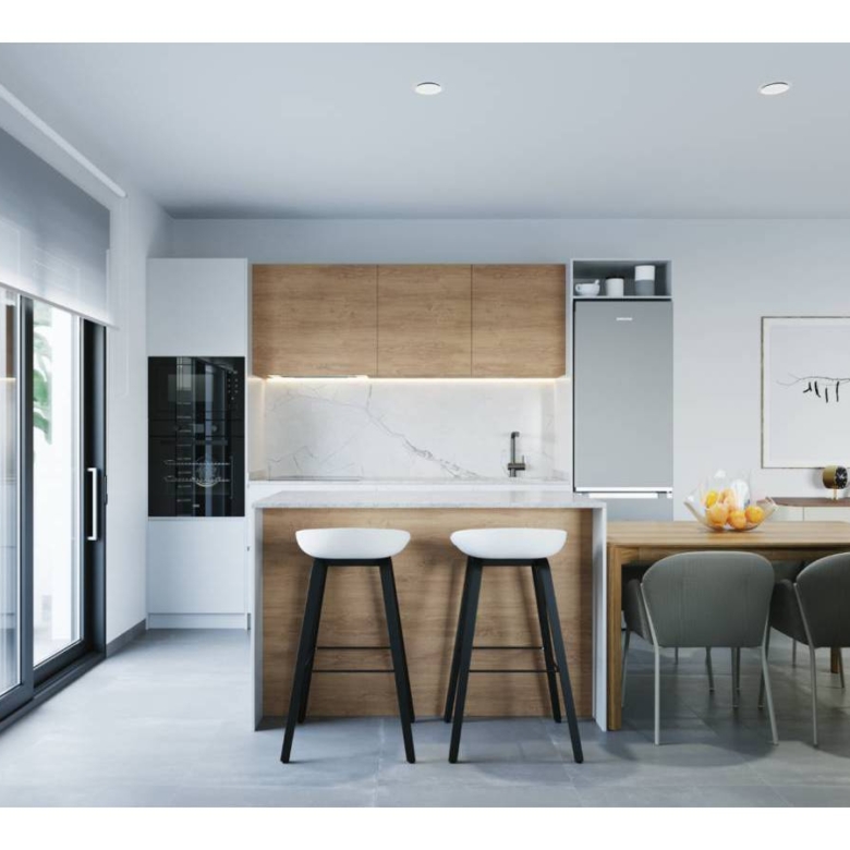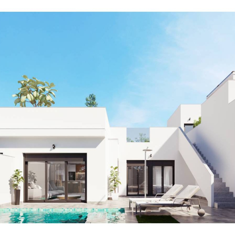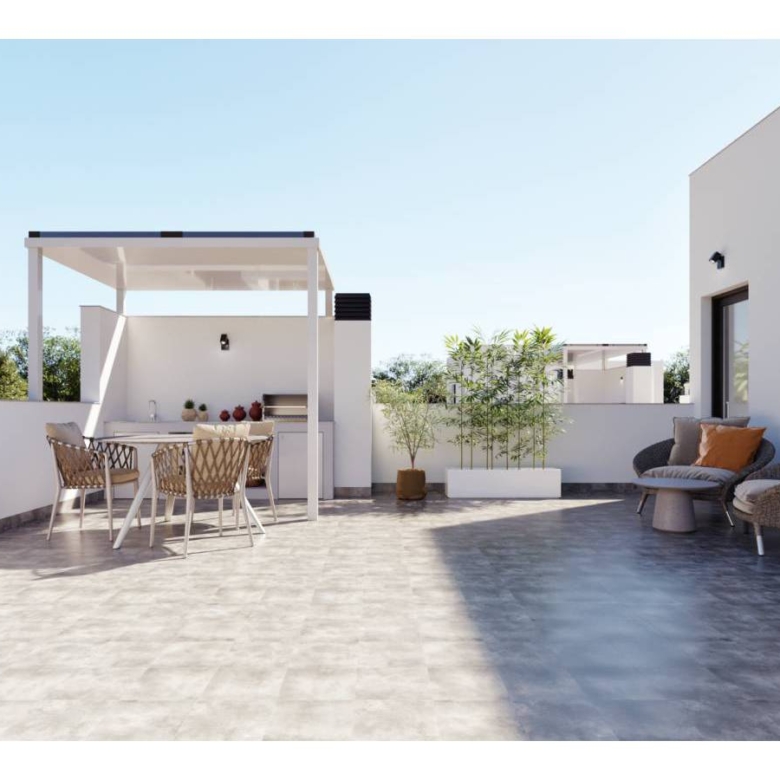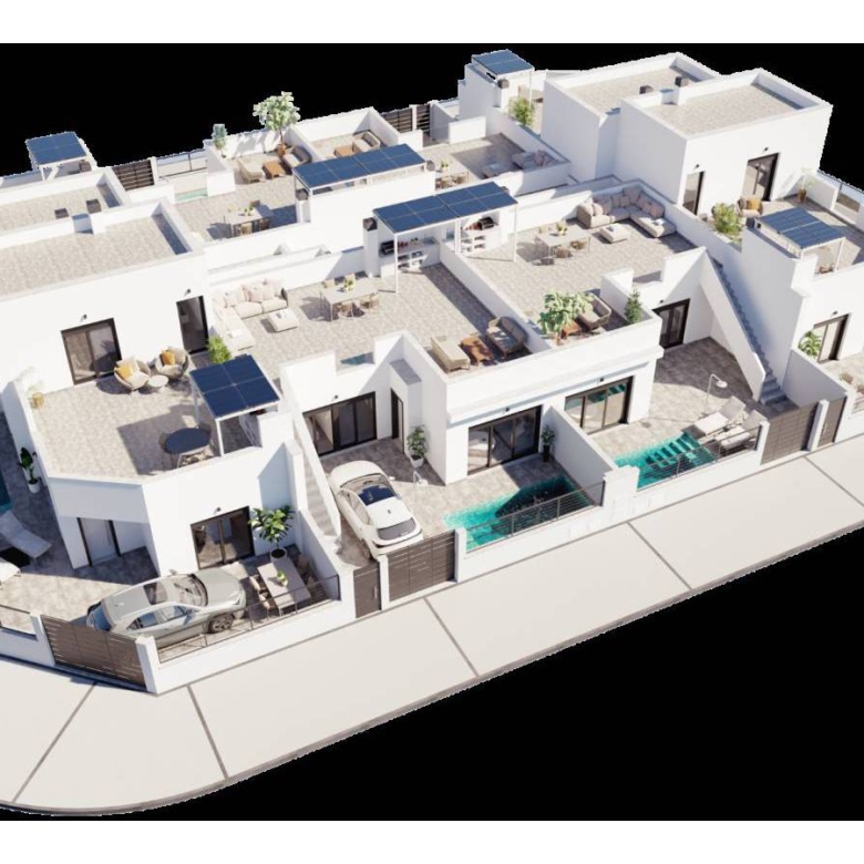 Townhouses in Roldan, Torre Pacheco, Murcia This is a development of 8 townhouses with 2 bedrooms and 2/3 bathrooms. The homes are designed with elegant and functional interiors, fully equipped kitchens, electrical appliances included. The bathrooms have a vanity unit with washbasin and light. The bedrooms include lined wardrobes with drawer units and each property has pre-installation for ducted air conditioning. The exteriors are no less impressive, including a private swimming pool and a large solarium with summer kitchen so you can enjoy the sun all year round. In addition, the homes have pre-installation for electric vehicle chargers. Property ID: GH-307740 Price: €234,900 Property Size: 76 m2 Land Area: 80 m2 Bedrooms: 2 Bathrooms: 2 Property Type: Villa Property Status: For Sale