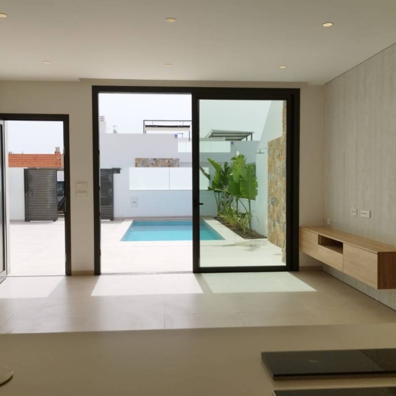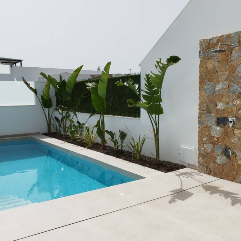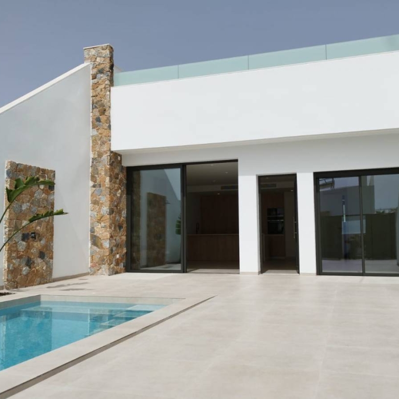 Villas for sale in San Javier, Costa Calida, Spain 3 bedroom villas with 2 or 3 bathrooms and different plot sizes. Completely customisable according to the tastes of each client. Types of homes: - Square Plus: All the advantages of larger villas come together in a unique 3-bedroom, 2-bathroom home. – Villa L3: The most successful design and standard bearer of quality. Villa L3 is fully customisable like all our developments. It has 3 bedrooms and 2 complete bathrooms. San Javier is a Spanish municipality in the autonomous community of the Region of Murcia, located in the northern part of the Mar Menor region. The coastal towns of Santiago de la Ribera and the central and northern part of La Manga del Mar Menor belong to it. The beaches are located in the district of Santiago de la Ribera (which forms an urban continuum with the town of San Javier) and La Manga del Mar Menor from kilometre 4 to the end of the same, in the area known as Veneziola. Property ID: GH-307724 Price: €389,900 Property Size: 100 m2 Land Area: 212 m2 Bedrooms: 3 Bathrooms: 2 Property Type: Villa Property Status: For Sale