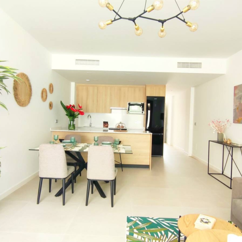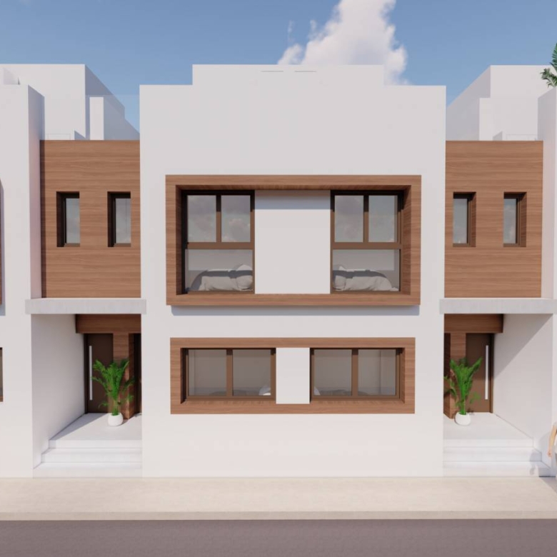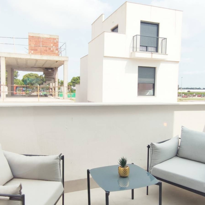 Semi-detached villas in San Javier, Costa Calida, Murcia A complex made up of 8 semi-detached houses, with a private pool, terrace area and large solarium on each property. Each home has 3 bedrooms and 2 full bathrooms and has been designed with a contemporary style and an open living concept, consisting of a fitted kitchen and a living-dining room. The houses have the highest quality standards and are equipped with: * Private pool with external shower.* Fully furnished and equipped kitchen with oven, microwave, integrated dishwasher, refrigerator, ceramic hob and extractor hood.* Peninsula area in the kitchen.* LED lighting: inside the home (living room, kitchen, corridors and bathrooms), as well as in outdoor areas.* Wardrobes lined with drawers.* Fully equipped bathrooms with furniture, sink, mirror with light, toilet, shower and glass partitions.* Pre-installed air conditioning ducts.* Artificial grass in the garden.* Summer kitchen with 3 modules in the solarium, with pre-installation for a washing machine and plug. The promotion is located in San Javier, Murcia, surrounded by all services, sports areas, several golf courses and 5 minutes from the beaches of the Mar Menor and 10 minutes from the Mediterranean Sea. Property ID: GH-24197 Price: €247,000 Property Size: 125 m2 Land Area: 180 m2 Bedrooms: 3 Bathrooms: 2 Property Type: Villa Property Status: For Sale