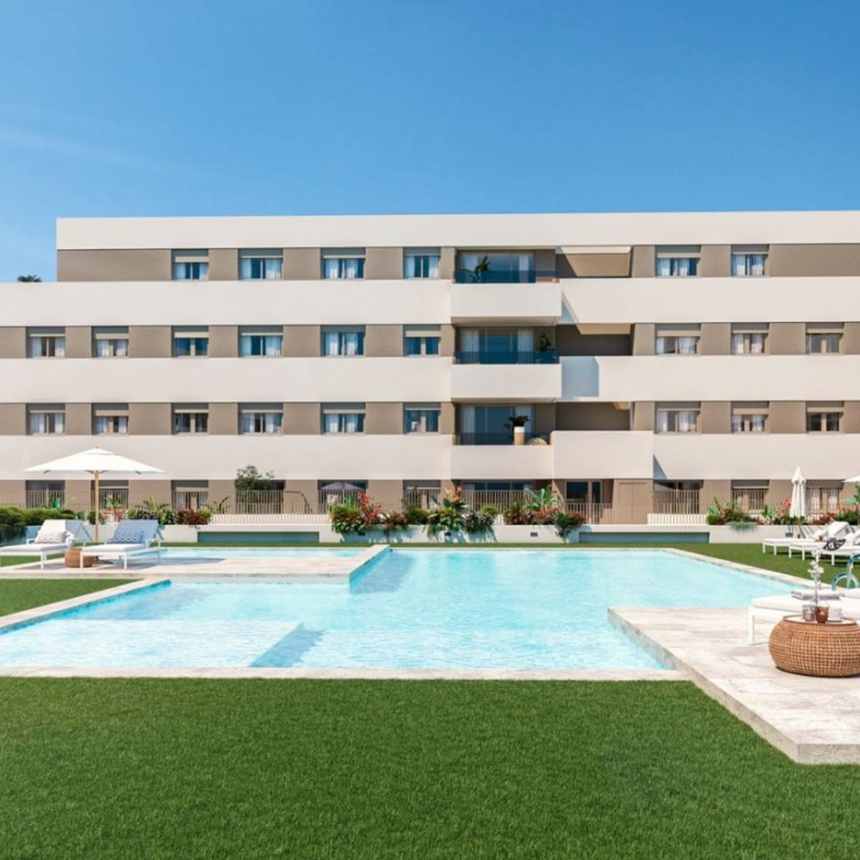 Apartments in San Juan Playa, Costa Blanca It is a residential complex with 84 homes with 1, 2, 3 and 4 bedrooms with a common garden area with a swimming pool. The houses have a garage and parking. All the houses have large terraces. Swimming poolGarden common areasCommunity parkingSocial ClubSecurity door The plot is framed within the Sector Nou Nazareth, which belongs to the municipality of Sant Joan d’Alacant. It is a residential area, quiet, but with services in the nearby environment: hospital, university, shopping center, sports areas: Very close to San Juan Playa, which can be reached in less than 3 minutes by car. There is about a 20-25 minute walk to the beach. There is public transport nearby, which takes you to Alicante in about 15 minutes. Property ID: GH-307332-D Price: €305,500 Property Size: 74 m2 Land Area: 87 m2 Bedrooms: 3 Bathrooms: 2 Property Type: Apartment Property Status: For Sale