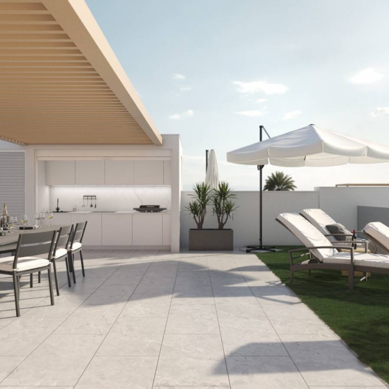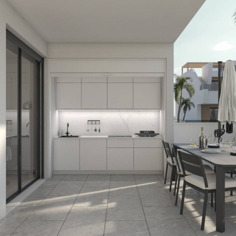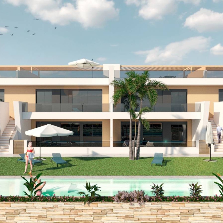Bungalows for sale in San Pedro del Pinatar, Murcia, Costa Calida These incredible homes are located just 1,3km from the beach, close to all services and the city center, consisting of 3 bedrooms and 2 bathrooms, living room, kitchen, garden and private parking within the plot. They have excellent qualities. INCLUDED IN ALL BUNGALOWS - Bosch or Siemens appliances- Covered area on the terrace- Air conditioning- Internal and external lights (led)- Fully equipped kitchen + island and table- External sound speakers- Aerothermic water heater- Fully equipped bathrooms- 3rd multifunctional room (except n12 Phase II)- Suspended toilets- Underfloor heating in 2 bathrooms- Sliding doors in all rooms- Built-in bidet tap- Showers with thermostatic taps- Indoor and outdoor 90×90 cm porcelain floor- Designer furniture in the bedrooms- Sliding windows on the wall- Automatic door for the car (GROUND FLOOR)- Separate walls approx. 1.80m for privacy around the garden (GROUND FLOOR)- Closed storage in the garden (GROUND FLOOR)- Alarm installation Property ID: GH-24152-D Price: €269,950 Property Size: 81 m2 Land Area: 90 m2 Bedrooms: 3 Bathrooms: 2 Property Type: Apartment Property Status: For Sale