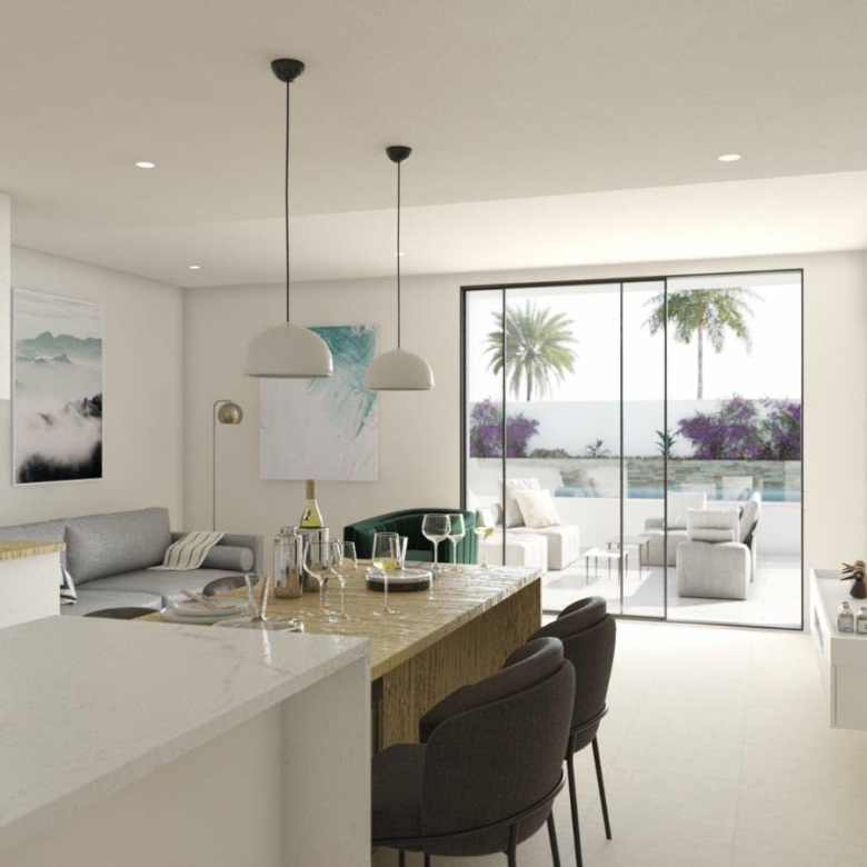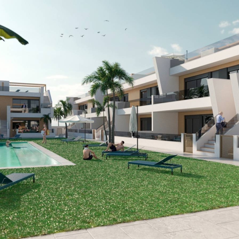 Bungalows for sale in San Pedro del Pinatar, Murcia, Costa Calida These incredible homes are located just 1,3km from the beach, close to all services and the city center, consisting of 3 bedrooms and 2 bathrooms, living room, kitchen, garden and private parking within the plot. They have excellent qualities. INCLUDED IN ALL BUNGALOWS - Bosch or Siemens appliances- Covered area on the terrace- Air conditioning- Internal and external lights (led)- Fully equipped kitchen + island and table- External sound speakers- Aerothermic water heater- Fully equipped bathrooms- 3rd multifunctional room (except n12 Phase II)- Suspended toilets- Underfloor heating in 2 bathrooms- Sliding doors in all rooms- Built-in bidet tap- Showers with thermostatic taps- Indoor and outdoor 90×90 cm porcelain floor- Designer furniture in the bedrooms- Sliding windows on the wall- Automatic door for the car (GROUND FLOOR)- Separate walls approx. 1.80m for privacy around the garden (GROUND FLOOR)- Closed storage in the garden (GROUND FLOOR)- Alarm installation Property ID: GH-24152 Price: €309,950 Property Size: 81 m2 Land Area: 194 m2 Bedrooms: 3 Bathrooms: 2 Property Type: Apartment Property Status: For Sale