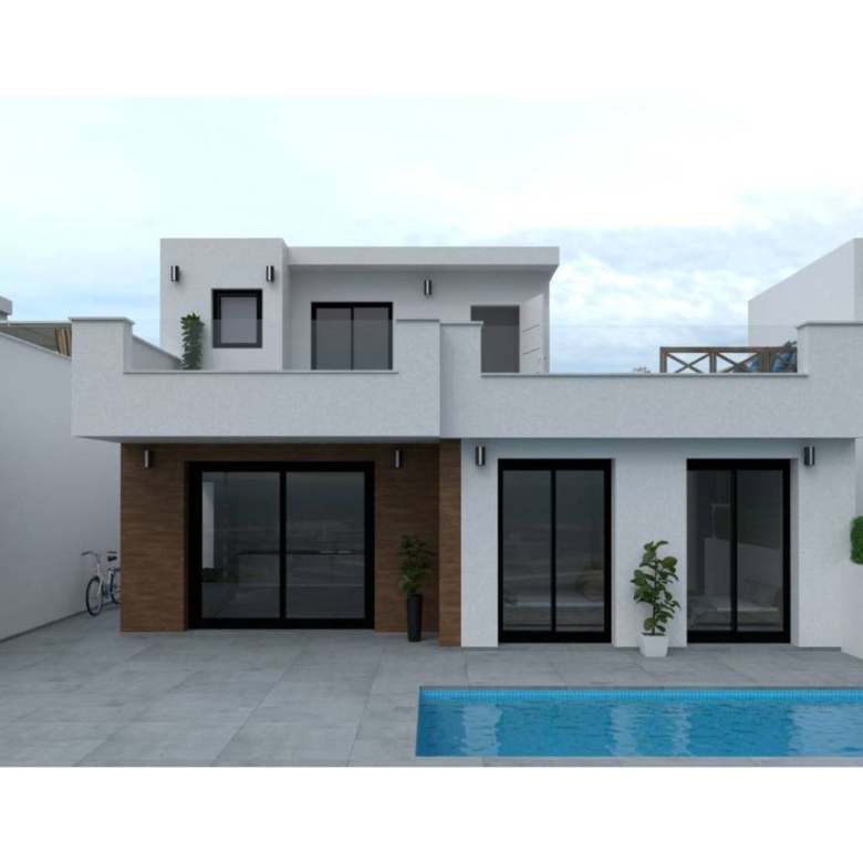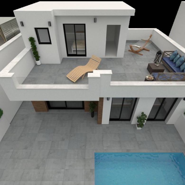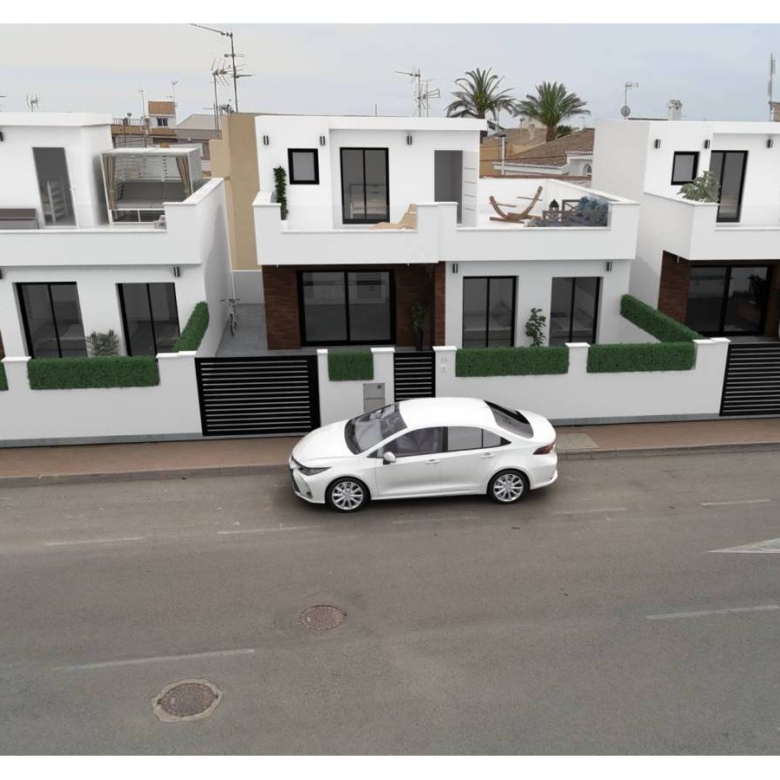 Villas in San Pedro del Pinatar, Murcia, Costa Calida This exclusive proposal is made up of a set of 4 independent properties with 3 bedrooms and 3 bathrooms, with 2 bedrooms on the ground floor, private swimming pool and large solarium – terrace so you can enjoy the sun every day of the year. The homes have fully equipped kitchens and bathrooms and pre-installation for ducted air conditioning. South facing. San Pedro del Pinatar is a municipality located in the autonomous community of the Region of Murcia, in the southeast of Spain. As it is located on the shores of the Mediterranean Sea and the Mar Menor, it has a great tourist and ecological attraction. To the north of the municipality is the natural park of the Salinas y Arenales de San Pedro del Pinatar. Its neighbouring municipalities are: San Javier (in the Region of Murcia) and Pilar de la Horadada (in the province of Alicante). Within a radius of less than 70 km there are five cities with more than 100,000 inhabitants: Torrevieja, Cartagena, Murcia, Elche and Alicante. Property ID: GH-307791 Price: €344,900 Property Size: 114 m2 Land Area: 154 m2 Bedrooms: 3 Bathrooms: 3 Property Type: Villa Property Status: For Sale