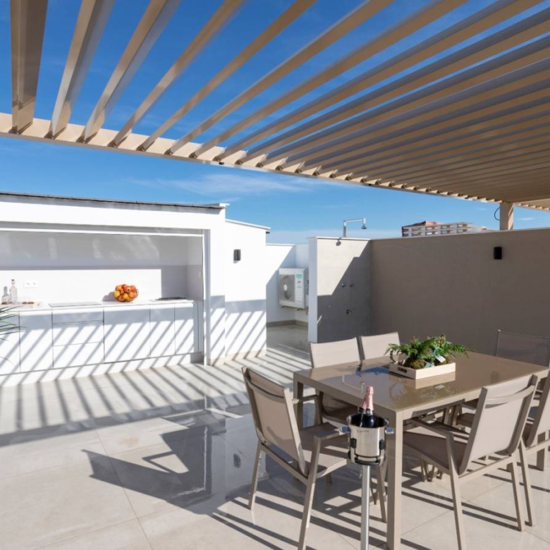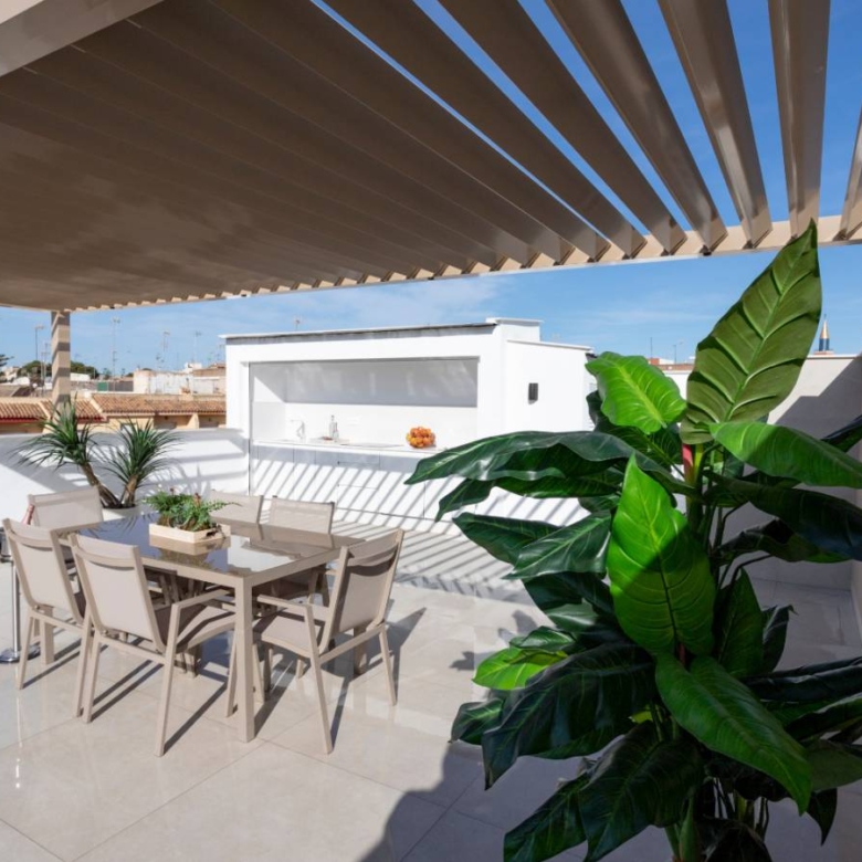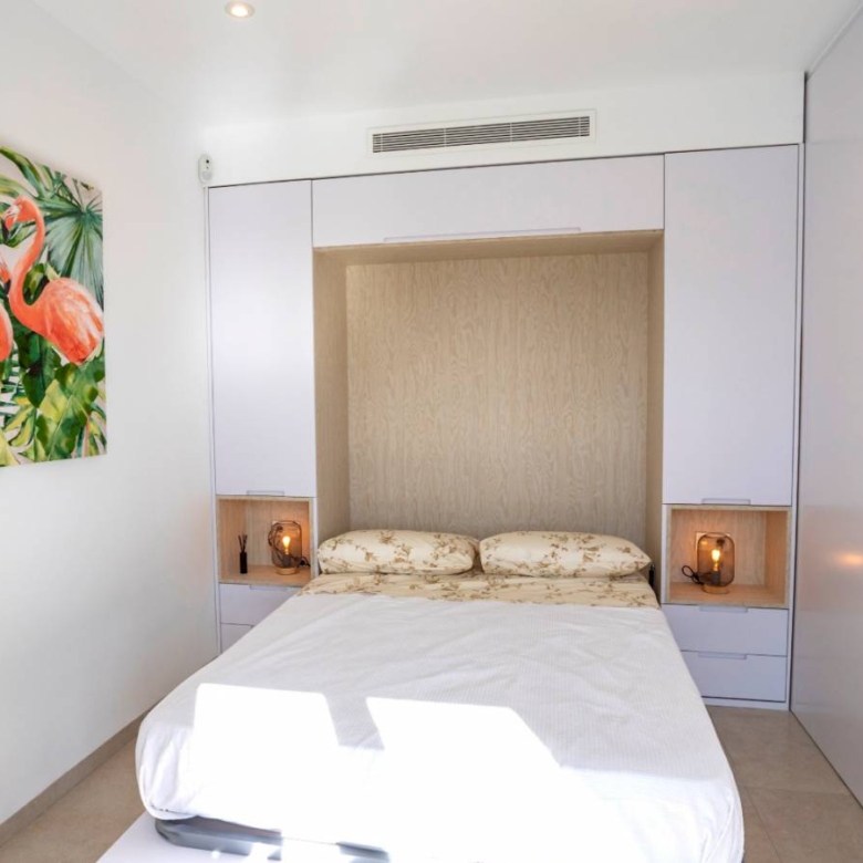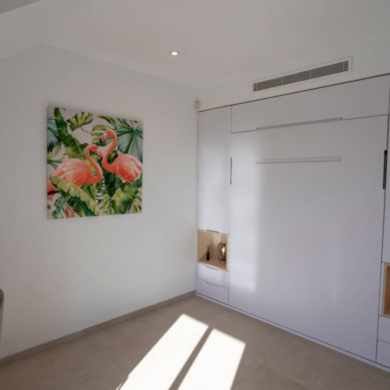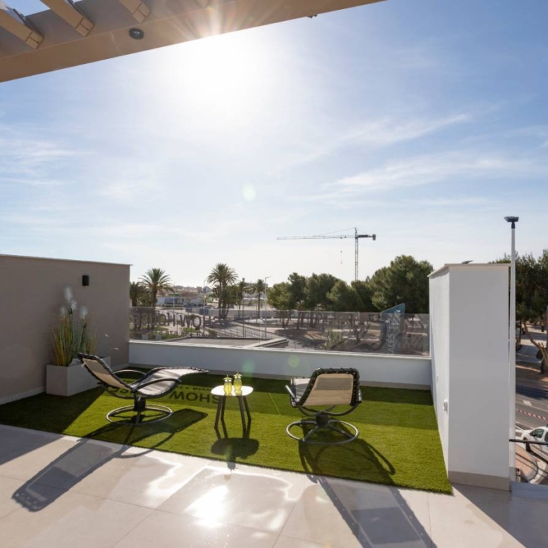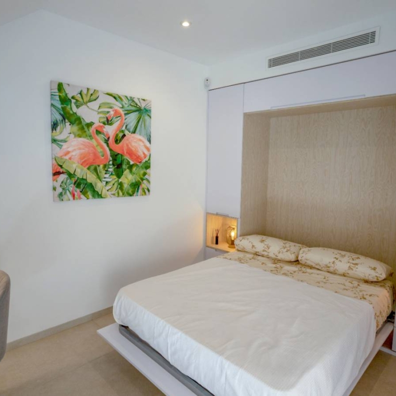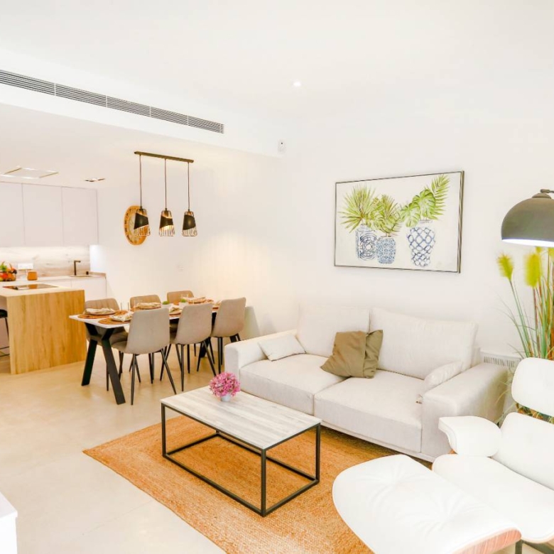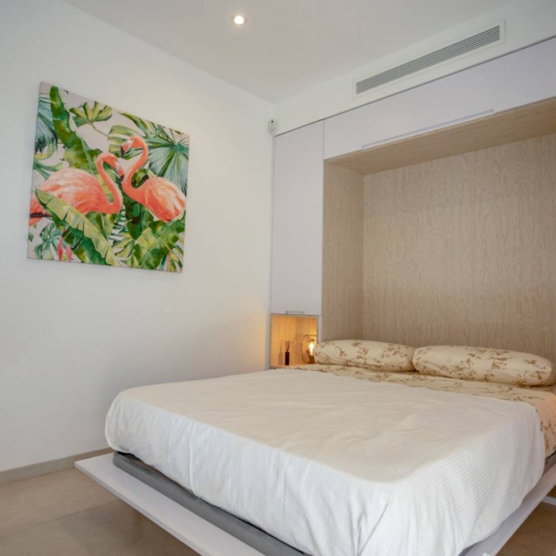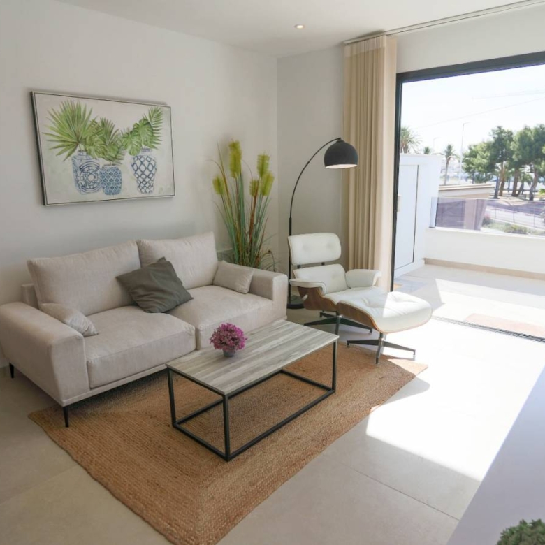 Bungalows for sale in San Pedro del Pinatar, Murcia, Costa Calida These incredible homes are located just 3km from the beach, close to all services and the city center, consisting of 3 bedrooms and 2 bathrooms, living room, kitchen, garden and private parking within the plot. They have excellent qualities. INCLUDED IN ALL BUNGALOWS - Bosch or Siemens appliances- Covered area on the terrace- Air conditioning- Internal and external lights (led)- Fully equipped kitchen + island and table- External sound speakers- Aerothermic water heater- Fully equipped bathrooms- 3rd multifunctional room (except n12 Phase II)- Suspended toilets- Underfloor heating in 2 bathrooms- Sliding doors in all rooms- Built-in bidet tap- Showers with thermostatic taps- Indoor and outdoor 90×90 cm porcelain floor- Designer furniture in the bedrooms- Sliding windows on the wall- Automatic door for the car (GROUND FLOOR)- Separate walls approx. 1.80m for privacy around the garden (GROUND FLOOR)- Closed storage in the garden (GROUND FLOOR)- Alarm installation Property ID: GH-24100 Price: €264,950 Property Size: 69 m2 Land Area: 109 m2 Bedrooms: 3 Bathrooms: 2 Property Type: Apartment Property Status: For Sale