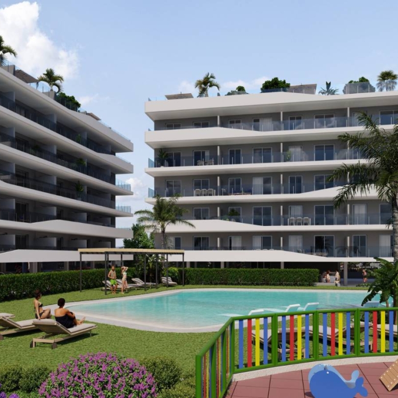 Penthouses for sale in Santa Pola, Costa Blanca Modern gated residential complex consisting of 2 and 3 bedroom flats with 2 complete bathrooms. The complex is made up of 3 blocks of flats with large landscaped communal areas that include a swimming pool with water beds, children’s playground, pergola and bicycle parking. Enjoy the spacious terraces, where you can relax, organise outdoor dinners and watch the most spectacular sunsets. The complex is located just 100 metres from the beach! - Bedrooms: 2 or 3- Bathrooms: 2- Swimming pool: Communal- Garage: In the urbanization- Parking spaces: 1- Kitchens: Open plan- Lift- Balcony- Communal swimming pool- Pre-installation for air conditioning- Reinforced door- Smoke outlet- Solarium- Aerothermal system- Built-in wardrobes- Parking space on the plot with electric sliding door- Blinds- Distance to the beach: 100 metres Santa Pola, on the shores of the Mediterranean, is the perfect place to begin to discover the wonders hidden in the province of Alicante. The beaches of Santa Pola are synonymous with relaxation, aquatic life and golden sand, such as Playa Lisa, Playa del Tamarit, Playa del Pinet, Playa de la Gola and Playa de Ermita. Very close to the latter you will find one of the most important points of interest in the municipality, the Cueva de la Arana (Spider Cave). In this cave, remains and utensils from the life of inhabitants between 2500 and 3000 B.C. were found, as well as an important cave painting, representing a red horse. The lighthouse, the jetty and the promenade of Santa Pola are perfect places for a stroll that is especially enjoyable with the play of light at dawn and dusk, and finally, we cannot leave out its incredible gastronomy, based on high quality fish and in which rice has its share of protagonism. Property ID: GH-24261 Price: €395,000 Property Size: 154 m2 Land Area: 154 m2 Bedrooms: 2 Bathrooms: 2 Property Type: Apartment Property Status: For Sale