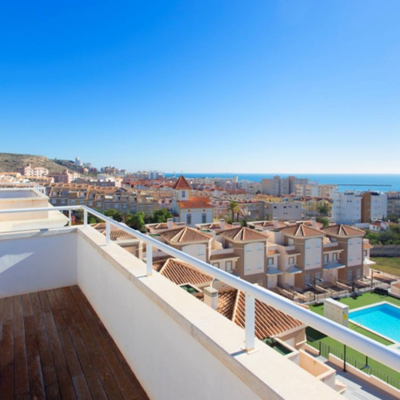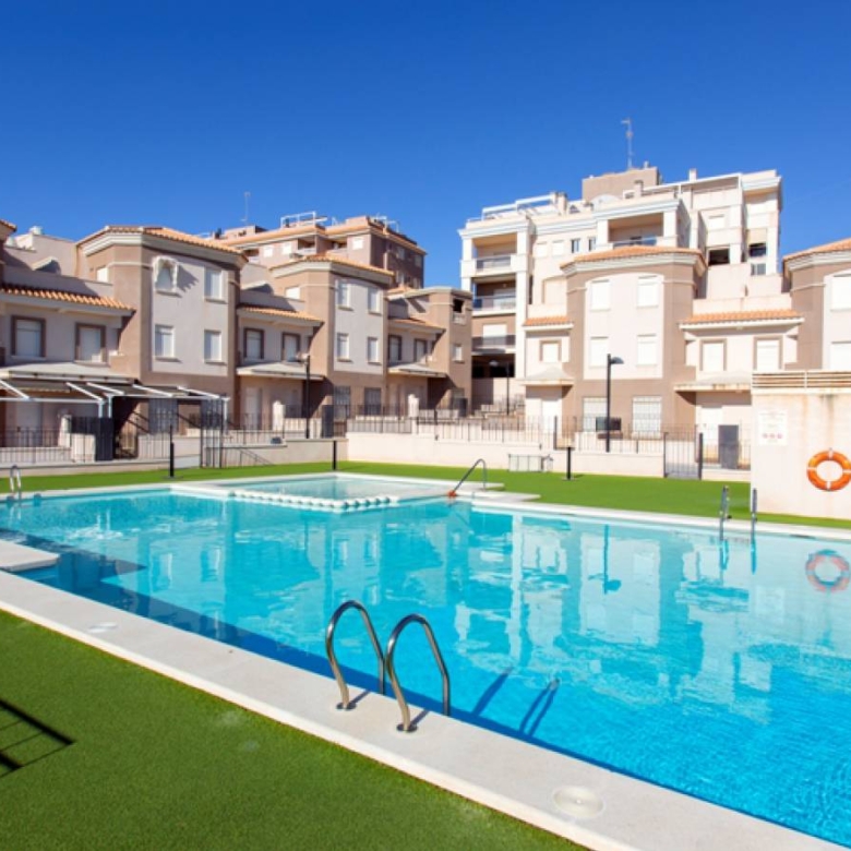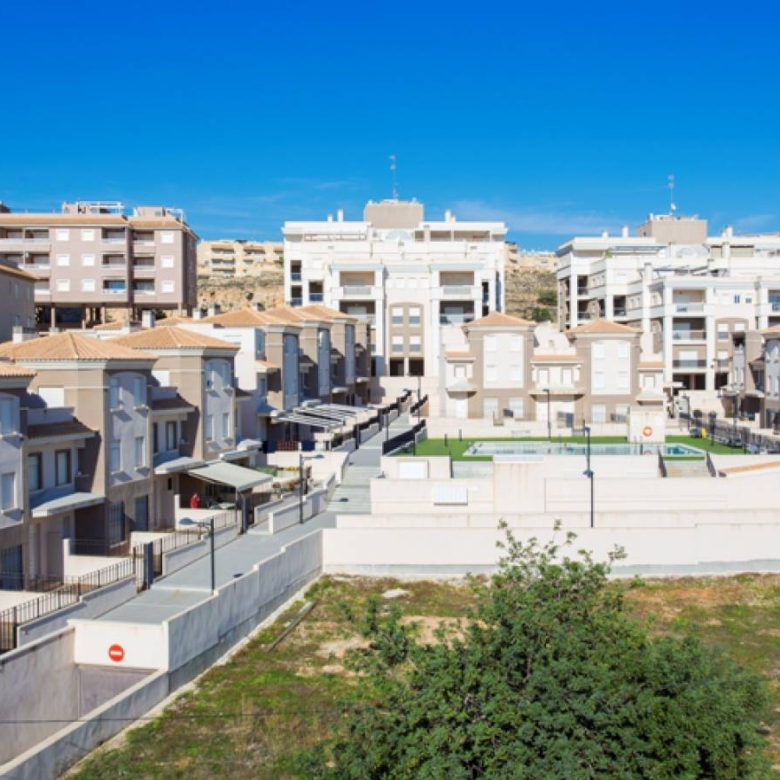 Bungalows in Santa Pola, Costa Blanca, Alicante Our complex is made up of several sets of bungalows with 2 bedrooms and 1 bathrooms, an option on the upper floor with a solarium or on the ground floor with a basement and small terrace, around a magnificent pool area and 2 apartment towers with penthouses and penthouses with 2 / 3 bedrooms and 1/2 baths. It is a residential located in the best area of Santa Pola, just 50 meters from the new shopping center, with cinemas, supermarkets, shops and cafes. A completely closed residential a few meters from the beach, where you can enjoy magnificent views of the entire bay of Santa Pola. Optional parking and storage room. Property ID: GH-24010-D1 Price: €255,000 Property Size: 144 m2 Land Area: 144 m2 Bedrooms: 3 Bathrooms: 2