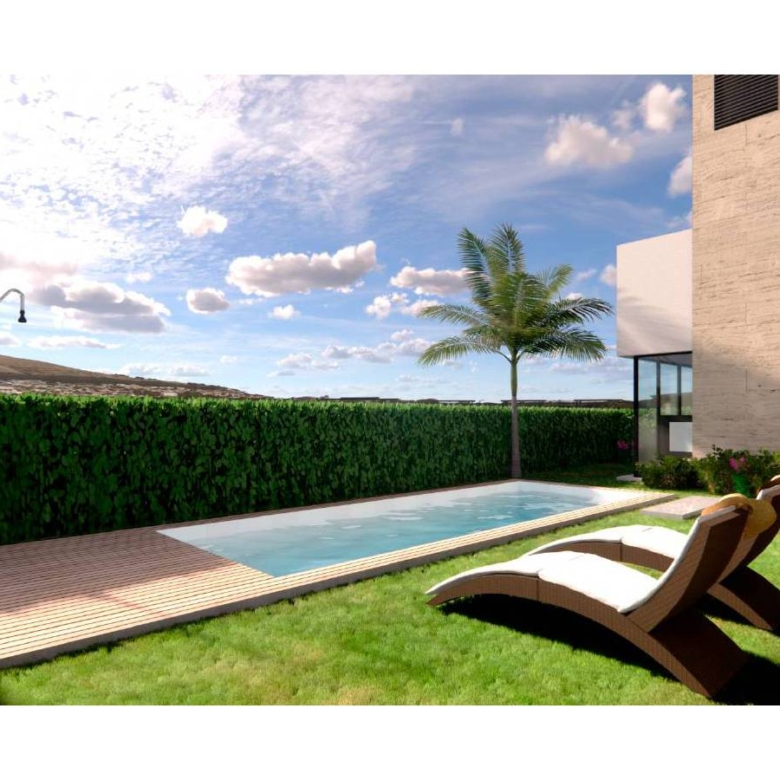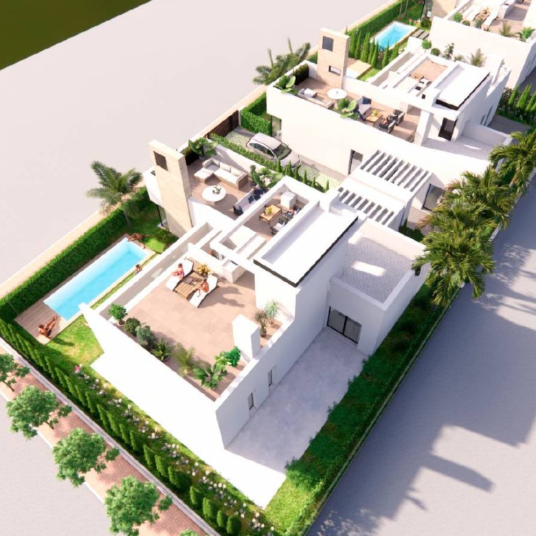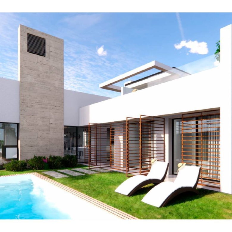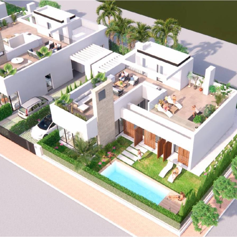 One-floor villas in Santa Rosalia, Torre Pacheco, Murcia This exclusive proposal is made up of a set of 4 properties with 3 bedrooms and 3 bathrooms on one floor, with private swimming pool of 3 x 7 metres, open plan basement with light and ventilation through an English patio and a large solarium on a plot of approximately 400 m2. The properties have fully equipped kitchens and bathrooms and pre-installation for ducted air conditioning. Santa Rosalia Resort is a unique environment, with a wide range of services designed to live in all year round or enjoy your property during your holidays; a new world just a stone’s throw away from everything. The entire perimeter of the resort is fenced and has security cameras along its length. A 24-hour security and access control service is at your disposal. In the heart of Santa Rosalia we find the reserve, the largest artificial lake of crystalline waters in Europe, with a 17,000m2 sheet of water and a wide range of services around it, for everyone’s enjoyment. Property ID: GH-307780 Price: €810,000 Property Size: 284 m2 Land Area: 384 m2 Bedrooms: 3 Bathrooms: 3 Property Type: Villa Property Status: For Sale