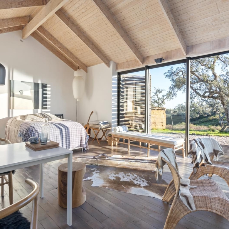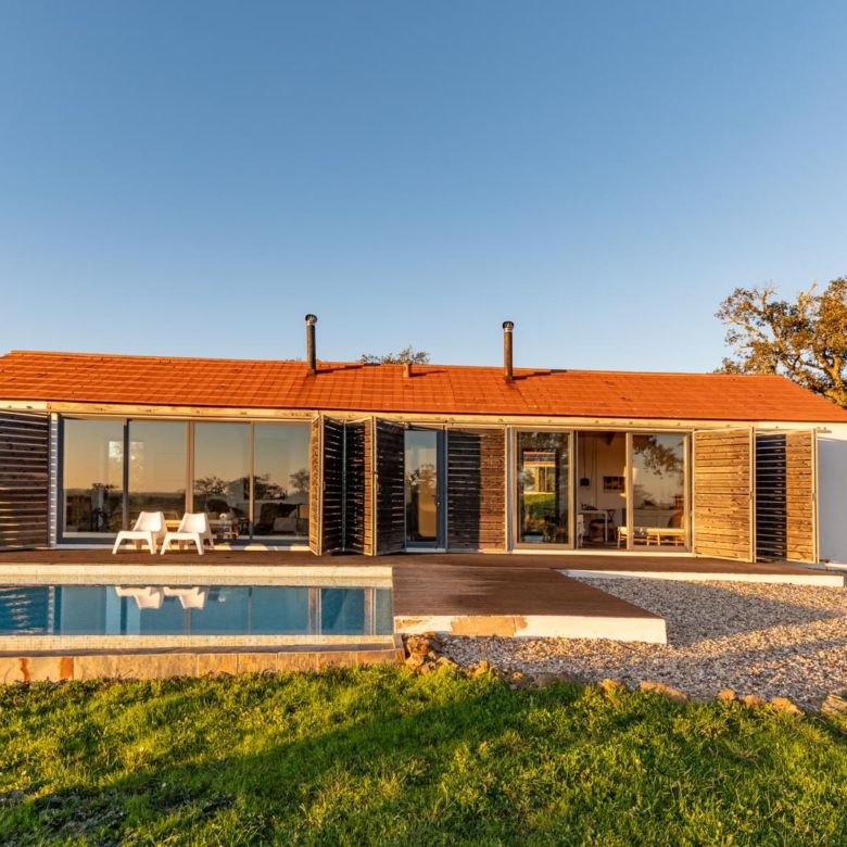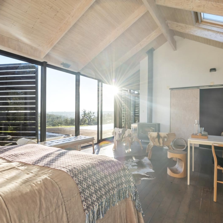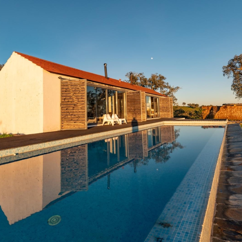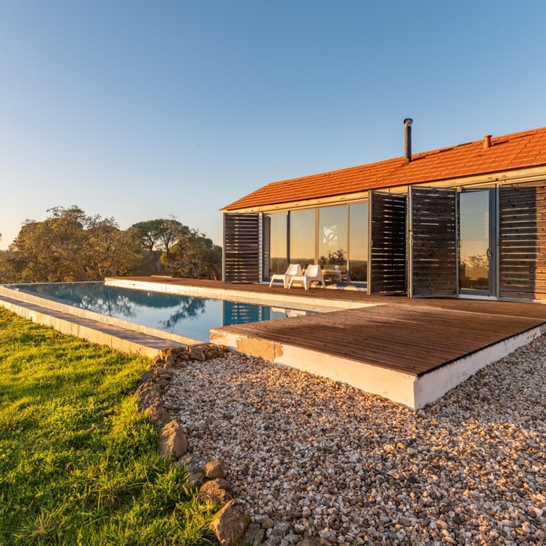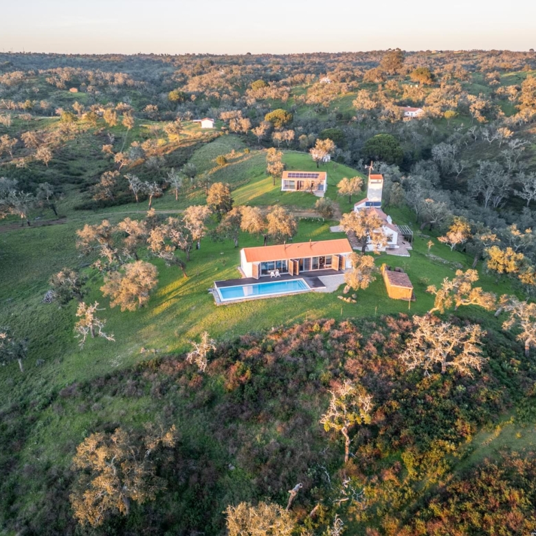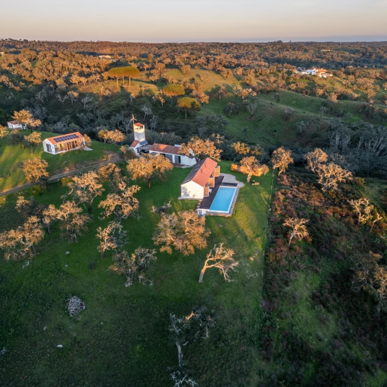 Located in Serra de Grandola, this property offers a panoramic view of the south mountains of Alentejo, offering a unique and peaceful environment. Built in 2012, the housing complex, stands out on a 6.9 hectares plot of land, composed by four distinct buildings- with real 229sqm gross building area- each one designed to provide comfort and intimacy. Each building has independent access, providing privacy and isolation between them. The main house, with 90 sqm, comprises a kitchenette and two suites equipped with salamander heaters for the cooler nights. The suites have direct access to the swimming pool, offering a harmonious connection between the interior and the exterior, allowing you to enjoy the stunning views while relaxing by the swimming pool. The main house also has a mezzanine, which currently works as a bedroom. The infinity swimming pool, -50 sqm- with salt electrolysis system, faces South exposing the magnificent West of this area. The south-facing main facade makes the most of natural light. Besides the main house, there are three other buildings that complement and enrich this property. The second building wiyh 83sqm, is the result of a recovery of the construction dated from 1929 and comprehends an ample living room with a kitchen in open space and also a bathroom. This space has a typical Alentejo floor fireplace, providing a place to socialise and relax. The third building, with 50sqm, is a support space, with an open and bright atelier with a mezzanine that is also being used as a bedroom. This space can also work as a multipurpose room and storage area, offering versatility for various activities. For lovers of relaxation and well-being, and a little away from the main buildings, a sauna was built taking advantage of an existing stone construction that was used as agricultural support. The construction is done in the best Nordic style, providing a haven of serenity and rejuvenation, with an outside shower and a splendid view. The construction of the four buildings of the property relies on the durability and sustainability of all materials used, being built in masonry or mud, with the roof with a wooden structure based on beams and reinforced concrete pillars. The walls in mud and masonry, clay tiles, ceramic and wood flooring refers to the typically Alentejo constructions, favouring the thermal behaviour and the use of local ecological and artisanal materials. The windows are of aluminium frames, double glazed windows and exterior wooden shutters with an iron structure that filter the light and heat of summer, providing thermal insulation and supporting passive heating in winter, besides as an aesthetically pleasing design. Next to the sauna a water tower was built, with storage and central infrastructure. The property is equipped with two solar panels, for sanitary water heating, originating in a water source located on the plot of land, which provide water all year round. The property’s electricity is supplied by a hybrid photovoltaic and wind system, demonstrating a commitment to sustainable practices and energy efficiency and allowing complete independence from public networks. A few metres away from the houses, a stream runs all year round from the water source, which contours a vegetable garden and an orchard with fruit trees and land for growing vegetables. About 5 km away from the access to the IP8/IC33 and 6 km away from Sao Francisco da Serra, 20 km away from the beaches of Costa de Santo Andre and 1h30m away from Lisbon, this property represents an opportunity for those who seek a sophisticated lifestyle in harmony with nature, involved in the serenity of the Alentejo mountains. Porta da Frente Christie’s is a real estate agency that has been operating in the market for more than two decades. Its focus lays on the highest quality houses and developments, not only in the selling market, but also in the renting market. The company was elected by the prestigious brand Christie’s International Real Estate to represent Portugal in the areas of Lisbon, Cascais, Oeiras and Alentejo. The main purpose of Porta da Frente Christie’s is to offer a top-notch service to our customers. Property ID: PDF-PF31698 Price: €1,390,000 Property Size: 163.0 m2 Land Area: 69000.0 m2 Bedrooms: 2 Bathrooms: 3