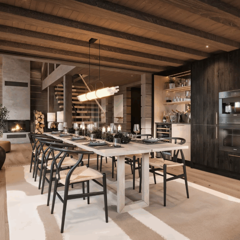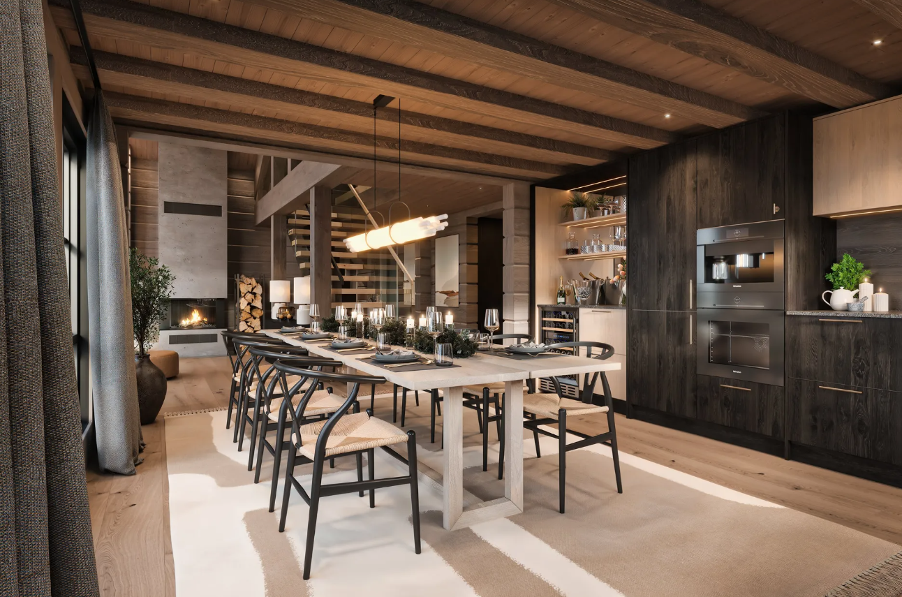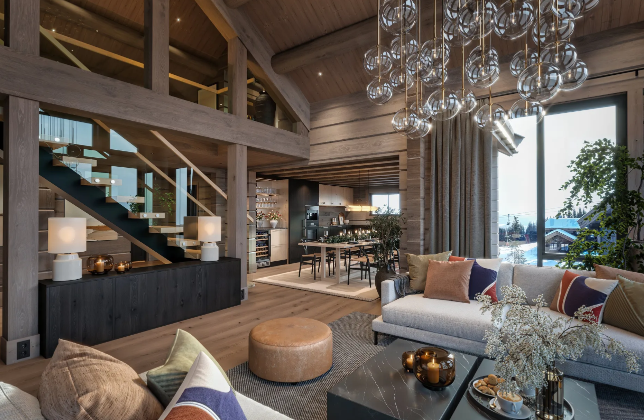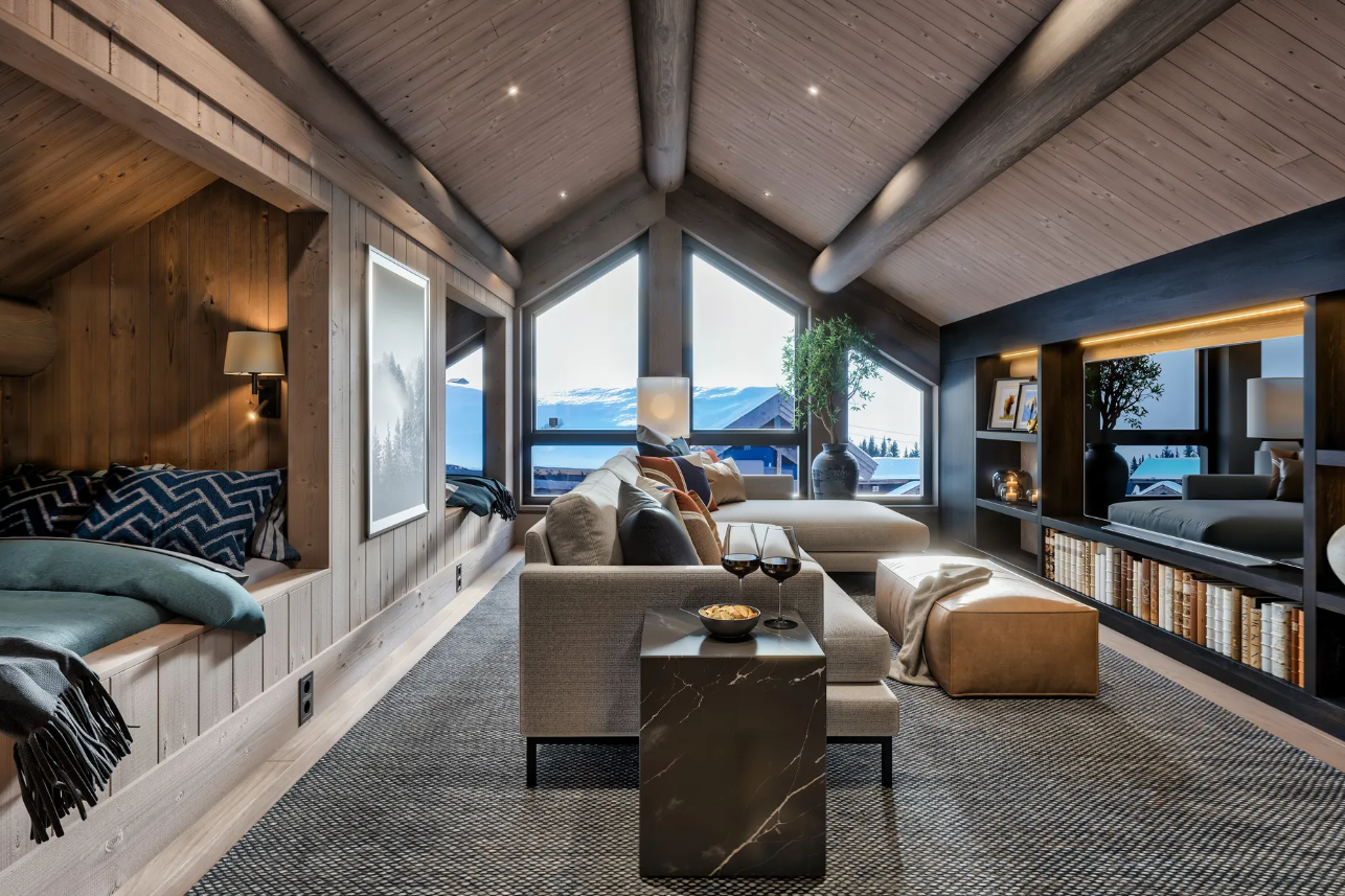 This beautifully designed Scandinavian cabin (136.6 m²) represents the perfect blend of modern living and traditional alpine style. Featuring three spacious bedrooms, two stylish bathrooms, a cosy loft lounge, and cleverly designed sleeping alcoves, the layout offers plenty of space for family and guests.