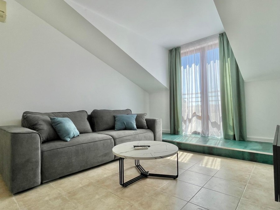 SEA VIEW 1 BED apartment, 70 sq.m., in Sea Lighthouse, Sveti Vlas, 200 m to the sea We are pleased to offer this elegant apartment, situated on the 4th floor in complex Sea Lighthouse in Sveti Vlas, just 200 m to the beach. The apartment has a total area of 70 sq.m. and comprises of: – hallway; – kitchen with lounge with a terrace; – 1 bedroom; – bathroom/WC The apartment offers new, stylish furniture and is in excellent condition. The complex has excellent rental potential. Just a 5-minute stroll from the beach, the Sea Lighthouse Complex is ideally situated for beach lovers. Whether its for a morning jog by the sea, an afternoon of sunbathing, or an evening walk along the shore, the beach is conveniently accessible. Emphasizing tranquility and peace, the Sea Lighthouse Complex is particularly suitable for families with children. It provides a safe and calm environment for relaxation and family time. Despite its peaceful setting, the complex is not isolated. A 7-8 minute walk will take you to a variety of shops for all your daily needs. Furthermore, the famous Dinevi Marina is just an 8-minute walk away, offering a selection of fine dining, shopping, and entertainment options. The highlight of the complex is the lighthouse, which offers residents and guests breathtaking views of the sea and the landscape. Its a perfect spot for photography, contemplation, or simply enjoying the beauty of the Bulgarian coast. The Sea Lighthouse Complex in Sveti Vlas is an excellent choice for those who appreciate the beauty of the Bulgarian coast and seek a balance between peaceful living and convenient access to local amenities. Whether as a holiday home, a permanent residence, or a rental investment, this complex offers a unique lifestyle by the sea. Infrastructure and amenities in the complex: · swimming pool with childrens sections; · Reception; · Playground; · 24-hour security; · Parking. The annual service fee is 10 euros/sq.m.