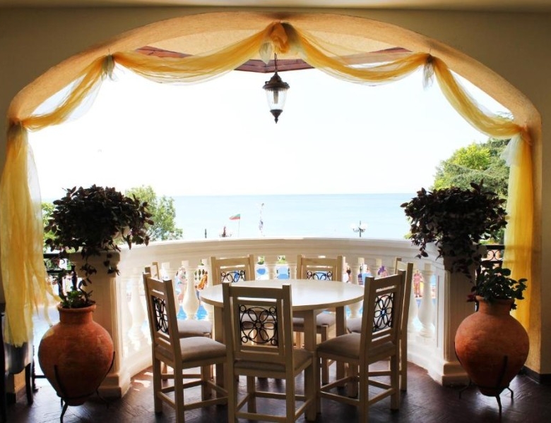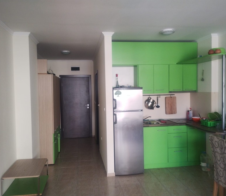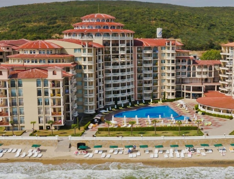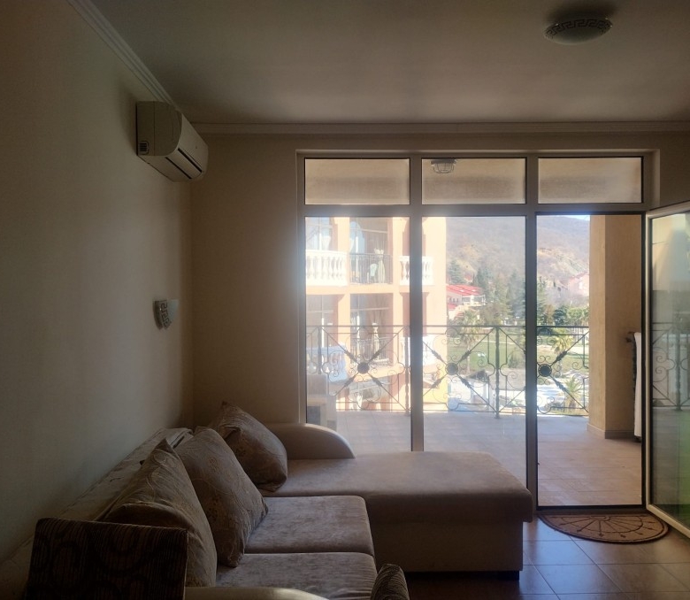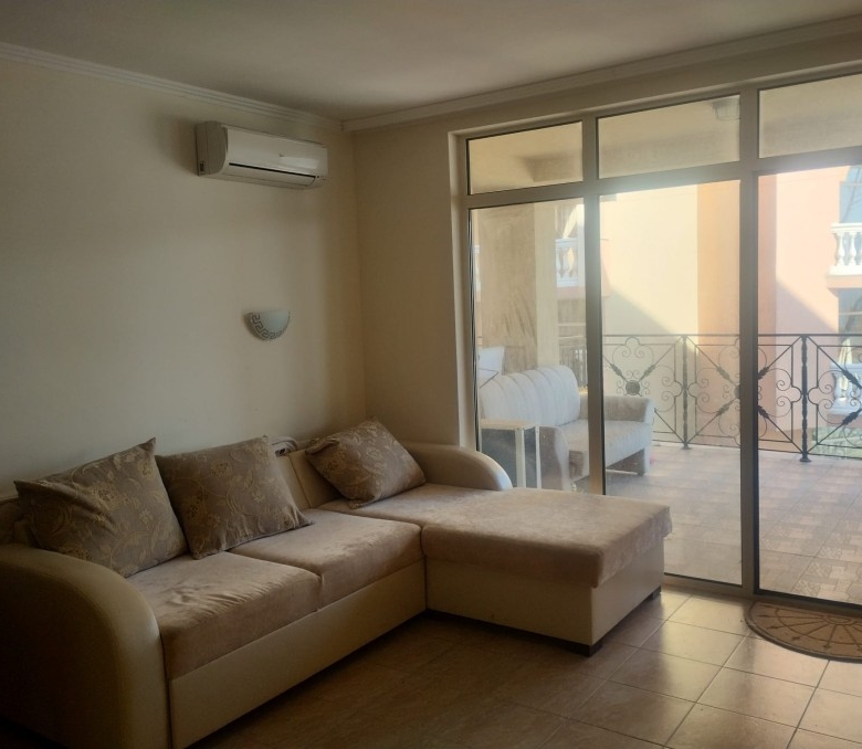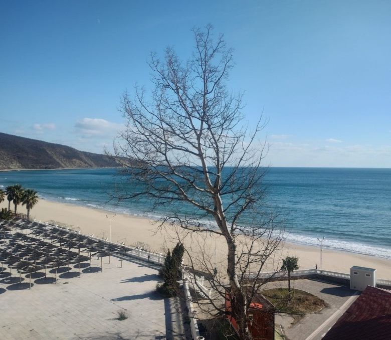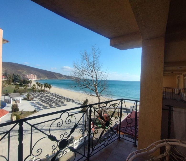 SEA VIEW spacious studio, 58 sq.., on the fist line in Andalucia, Elenite Resort We are pleased to present you this excellent panoramic studio, located in one of the most popular and beautiful complexes “Andalucia”. Located directly on the beach, in the quiet holiday resort Elenite, near Sunny Beach and St. Vlas. The property is located on the fifth floor and has an area of 58 sq.m. In the main room there is a kitchenette. Additionally bathroom is presented. There is a lovely big terrace with views of the sea and the sandy beach. This exotic atmosphere is combined with stylish furniture. The apartment comes with everything you need and is ready to move in. Can be let out to tourist, and that makes it an excellent investment. Heating is done with air conditioning, and for additional security the apartment is equipped with alarm system. The construction of the complex was completed in 2007. The spacious and well-maintained area of the complex offers its customers a variety of amenities such as restaurants, cafes, playground, amphitheater, fountains, walkways, pools. Several shops and a supermarket are located in close proximity to the fenced and secured area of the complex. Around the complex there is a large Aqua Park. Distance to the bus stop is 300 m. Annual maintenance fee – 580 EUR
