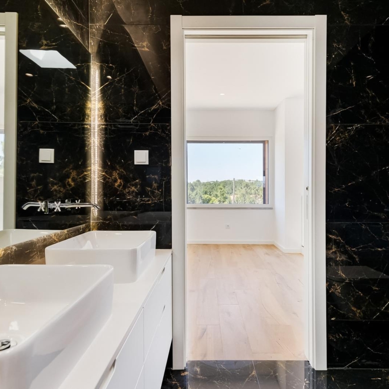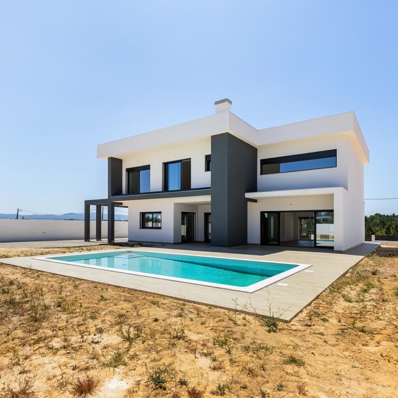 New 5 Bedroom Detached Villa with 4 Suites, Basement and Swimming Pool on a 1309 sqm plot in Vila Alegre. With modern finishes and differentiated by its high quality and durability, with distinguishing features, such as a living room with a 7 meters high ceiling, marbles and ceramic tiles of the highest quality, ventilated facade with thermal insulation, triple glazed PCV window frames with top acoustic thermal insulation, fully equipped kitchen with Teka household appliances, outdoor areas with parallel coating and gardens carefully designed to harmonize with the aesthetics of the area and the architecture of the property. It is still possible to choose some finishes within the current cost plan. This beautiful villa also offers all the current technologies and equipment, such as a complete central vacuum unit, radiant floor heating in all the rooms, automatic electrical blinds, video intercom, central vacuum unit, photovoltaic solar panels for water heating through a heat pump, automatic gates and pre-installation of centralized air conditioning with monoblock in all its rooms. It is possible to control the equipments, remotely and electronically automated, through a central domotics system. As for the outdoor area, we could not ask for more: in its 1309 sqm of the lot there is a garden area that completely surrounds the property, a swimming pool area near the main porch where the barbecue is located and which in turn accesses the main living room and kitchen of the property through ample French windows that facilitate the coexistence of all spaces in a sophisticated and comfortable way, an outdoor bathroom supporting the swimming pool, a closed garage and several parking spaces. Located in Vila Alegre, a well frequented urbanization of high-end villas in the parish of Fernao Ferro, with quick accesses to the A2, A33 and A12 motorways. With a good public transportation service and a few minutes’ walk from green spaces to stroll, restaurants, hospital, hypermarkets and primary and secondary schools. - 3.8 km away from Quinta do Conde - Intermache of Fernao Ferro: 1 km away - Lidl of Fernao Ferro: 2.7 km - Primary School and kindergarten of Pinhal do General: 1.8 km Designed to provide a harmonious distribution of the 507 sqm private gross area, it is distributed as follows: Basement (138,70 sqm) Ground floor: - Hall (6,85 sqm) - Equipped kitchen (22.55 sqm) - Pantry (3,90 sqm) - Laundry area (4,75sqm) - Social bathroom (4,85 sqm) - Living room in open space (63.15 sqm) - Bedrooms (10,55sqm) - Suite 1 (14,50 sqm) - Bathroom of the Suite (4,85 sqm) First Floor - Hall that distributes the bedrooms overlooking the living room (12,40 sqm) - Three Suites, two of them with closet (17,10 sqm / 16,50 sqm / 14,40 sqm) - Closet of the Bedrooms (5,05 sqm/ 4,95 sqm) - Bathroom of the Suite (4,50 sqm / 4,85 sqm / 7,05 sqm) - Balconies (12,40 sqm) Outside - Engine Room (2,55 sqm) - Bathroom (2,50 sqm) - Garage (28,35 sqm) - Porch with Barbecue (41,75 sqm) Porta da Frente Christie’s is a real estate agency that has been operating in the market for more than two decades. Its focus lays on the highest quality houses and developments, not only in the selling market, but also in the renting market. The company was elected by the prestigious brand Christie’s International Real Estate to represent Portugal in the areas of Lisbon, Cascais, Oeiras and Alentejo. The main purpose of Porta da Frente Christie’s is to offer a top-notch service to our customers. Property ID: PDF-PF33827 Price: €1,150,000 Property Size: 507.4 m2 Land Area: 1309.9 m2 Bedrooms: 5 Bathrooms: 6 Year Built: 2024 Property Type: House Property Status: For Sale