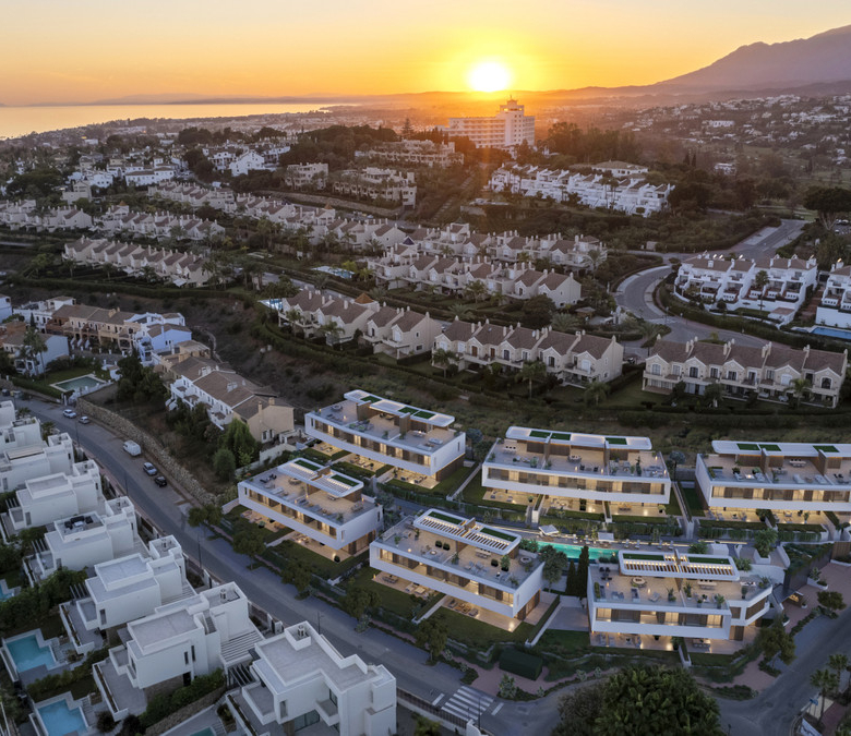 An exclusive boutique development of 14 semi-detached homes ideally located on Estepona’s prestigious New Golden Mile, between the renowned El Paraíso and El Campanario golf courses. Designed for modern Mediterranean living, each home features four spacious bedrooms, four bathrooms, a private garden, a generous basement, and a spectacular rooftop solarium with panoramic sea and mountain views.