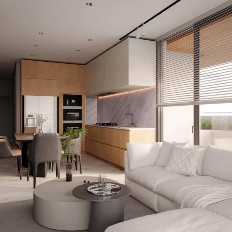 This contemporary development embraces the quiet elegance of Nordic design, where clean lines and thoughtful simplicity define each space. Natural light floods the interiors through expansive windows and open layouts, creating a serene and uplifting atmosphere. A carefully chosen palette of materials wood, stone, and glass adds warmth and texture while reflecting a commitment to sustainability. The design philosophy balances aesthetics with functionality, resulting in uncluttered, harmonious living environments that feel both modern and timeless. With energy efficient systems, smart home features, and environmentally conscious choices woven throughout, this is a place designed not just for today, but for a mindful, future ready way of living.
