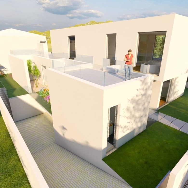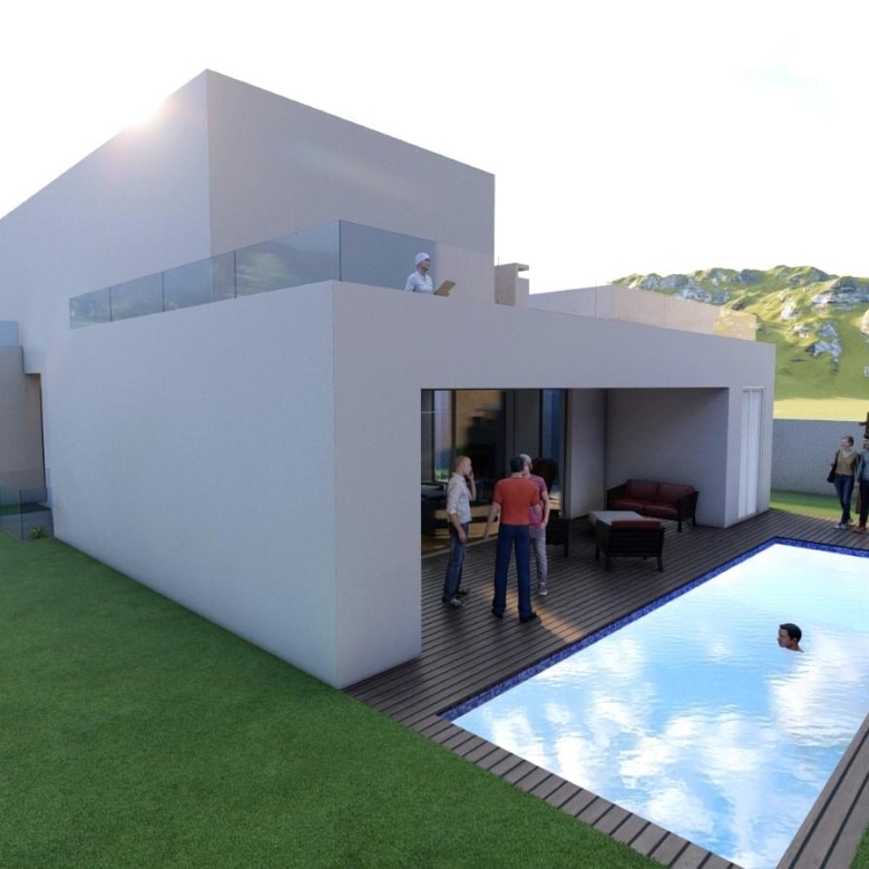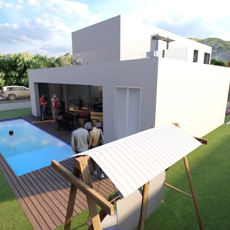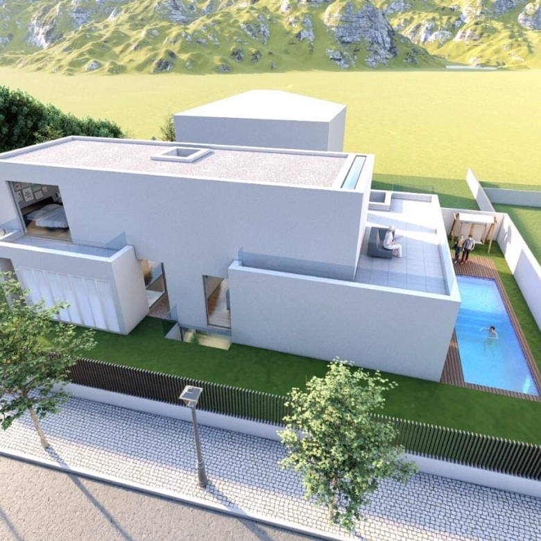 Porta da Frente Christie’s is pleased to present this stunning 5 bedroom villa inserted in the area of ”Casas de Azeitao”. A villa with modern lines, and characterized by contemporary and minimalist elements, offering simplicity, functionality and an elegant aesthetic. This 5 bedroom villa, with a 290 sqm gross construction area and inserted in a plot of almost 500 sqm, is distributed by 3 floors with the following layout: On the floor -1, there is a large dimensioned garage with capacity for three cars, a laundry area and two spacious bedrooms supported by two bathrooms. The ground floor level comprises a living room with a fully equipped kitchen in open space with Bosch household appliances. Through the living room we access the garden and the swimming pool’s area. On the ground floor we also have two suites and a social bathroom. On the first floor we find the master suite with bathroom and a walk-in closet, complemented by a balcony. Still on the first floor there is an area that can work as a multipurpose space, with access to a terrace with approximately 30 sqm. In terms of location, it is placed in an area of villas, 5 minutes away from the centre of the village of Azeitao and its gastronomy of excellence, as well as the wineries and renowned wine houses. It is 20 minutes away from Portinho da Arrabida, for those who want to enjoy nature and beaches. With easy accesses to urban life, Lisbon is 45 minutes away and Setubal is 20 minutes away. The villa is under construction, with the completion predicted to the second half of 2024. Porta da Frente Christie’s is a real estate agency that has been operating in the market for more than two decades. Its focus lays on the highest quality houses and developments, not only in the selling market, but also in the renting market. The company was elected by the prestigious brand Christie’s – one of the most reputable auctioneers, Art institutions and Real Estate of the world – to be represented in Portugal, in the areas of Lisbon, Cascais, Oeiras, Sintra and Alentejo. The main purpose of Porta da Frente Christie’s is to offer a top-notch service to our customers. Property ID: PDF-PF32108 Price: €1,100,000 Property Size: 199.96 m2 Land Area: 497.0 m2 Bedrooms: 5 Bathrooms: 5 Year Built: 2024 Property Type: House Property Status: For Sale