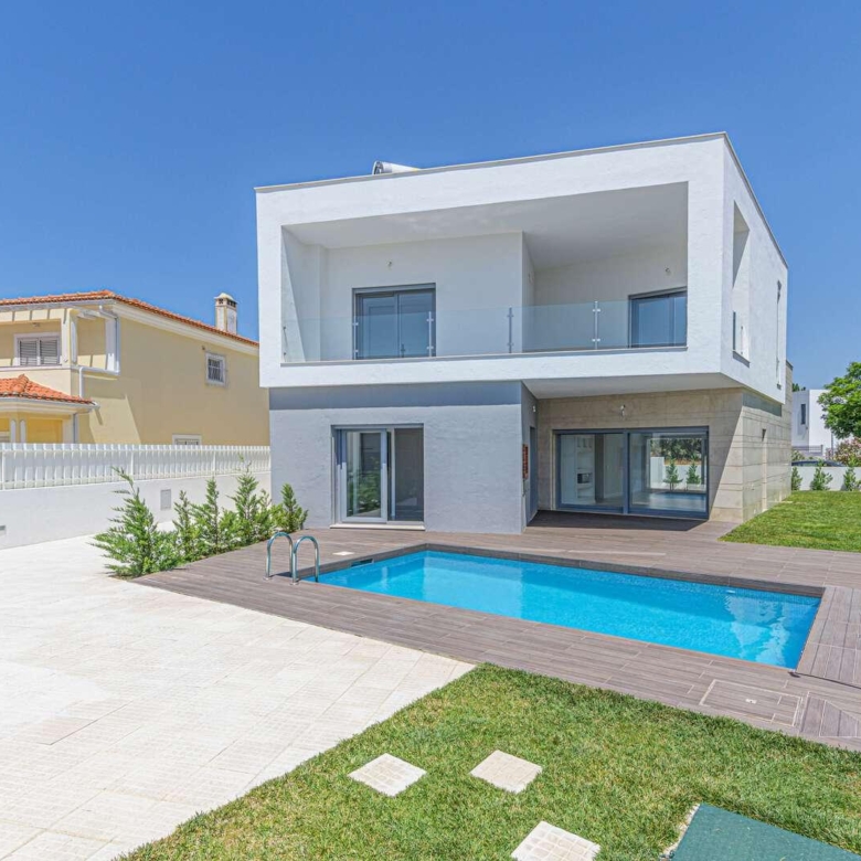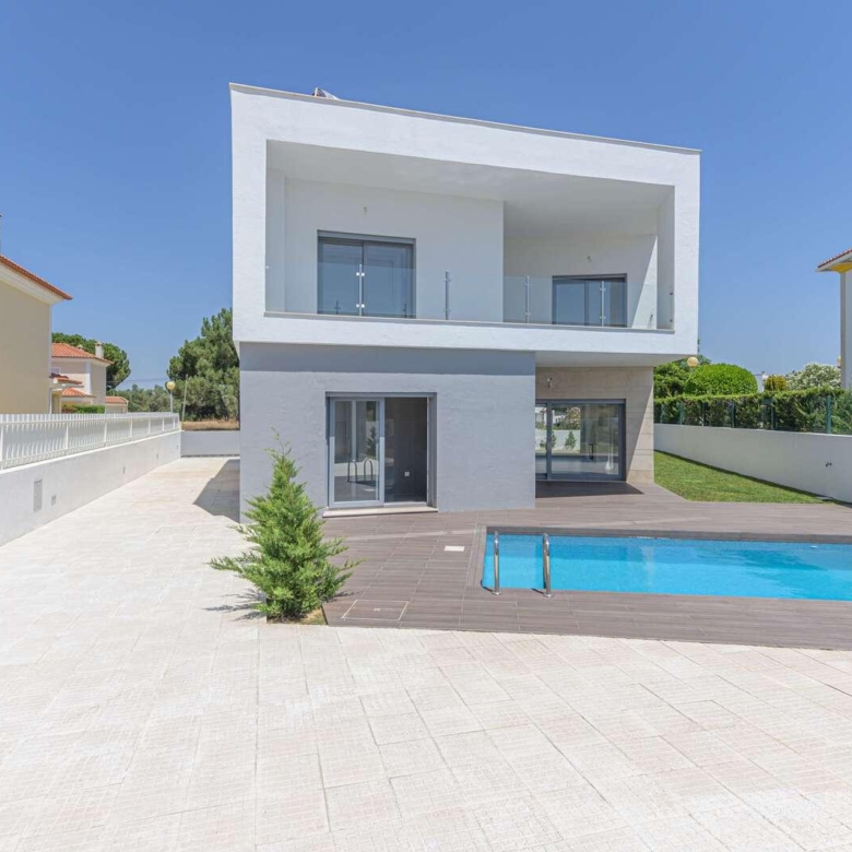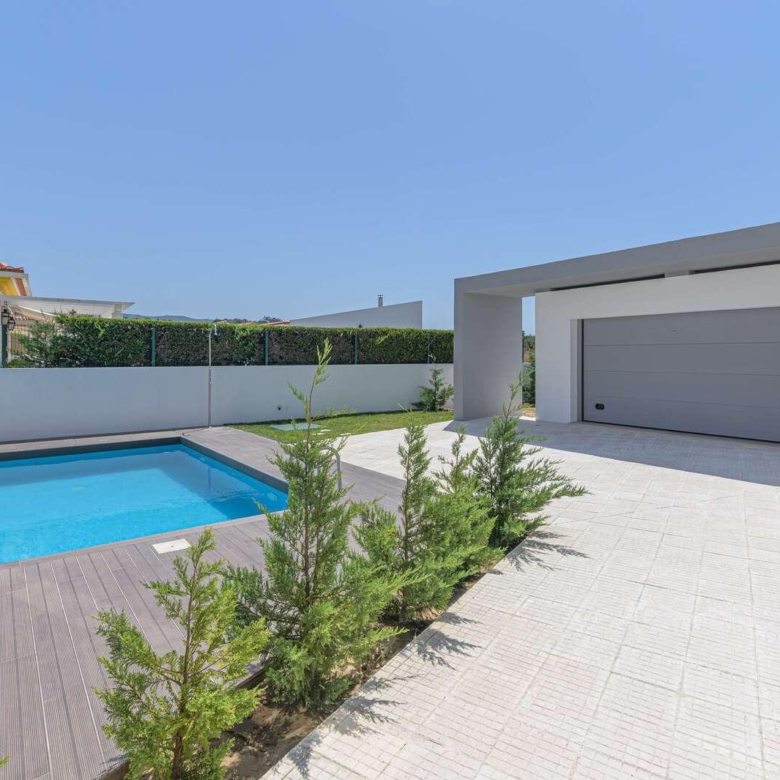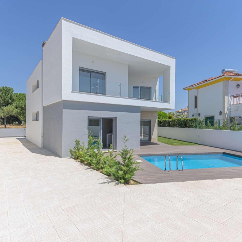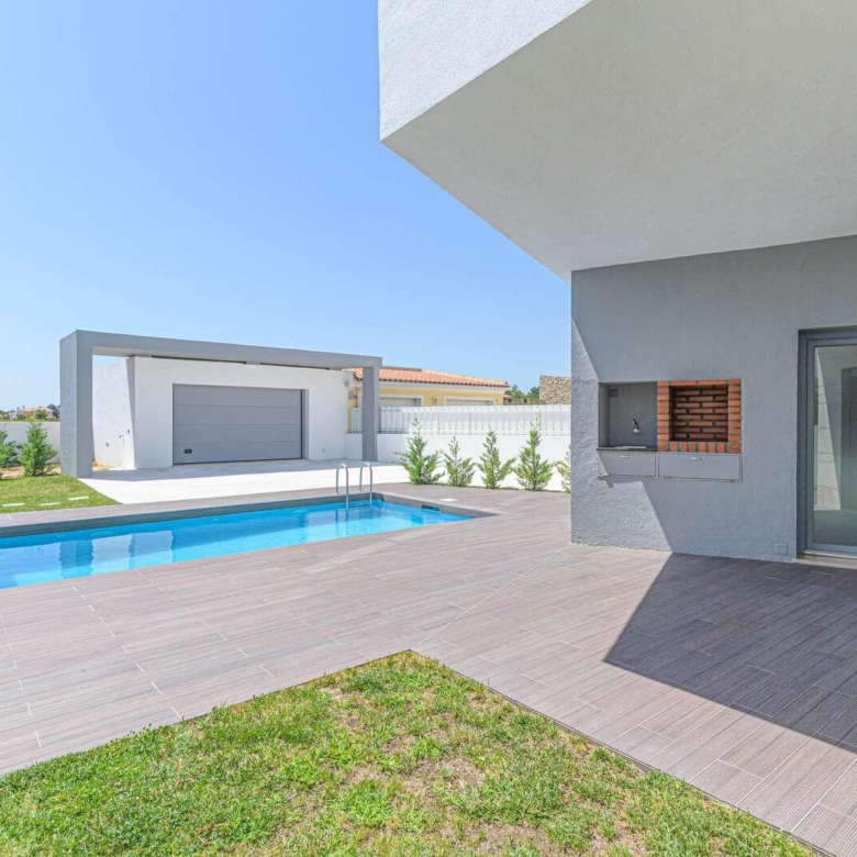 4 bedroom villa, with swimming pool, located in Quinta dos Foios, one of the most prestigious areas of Azeitao. The villa presents a contemporary design and it is brand new, ready to debut. With a modern architecture, this villa was projected to provide comfort, well being and a magnificent sun exposure, which is assured by large windows, providing a lot of brightness. The villa has accessibility for people with reduced mobility. The facade is coated with softened moleanos stone, the lighting is embedded and it has a ceramic deck. The villa is equipped with a central vacuum unit, a pre-installation of central heating, electrical blinds and a heat recovery unit. The wardrobes are embedded and the door is made of thermolaminated glass. The villa includes a swimming pool and a barbecue area, perfect for leisure moments with your family and friends. Construction gross floor area: 244 sqm Construction area: 293 sqm Land area: 541 sqm The villa is distributed as follows: The ground floor comprises a 33,5 sqm living room, a 6,3 sqm entry hall, a 13,8 sqm bedroom, a 2,3 sqm storage area, a 5,9 sqm bathroom and an 18,8 sqm kitchen with a laundry area. The first floor comprehends two bedrooms (13,8 sqm + 15,4 sqm) and a 19,9 sqm suite, supported by a 5,3 sqm bathroom. This floor also integrates a 6,7 sqm bathroom and a 19,1 sqm covered balcony. Accesses: - 35 minutes away from the Lisbon’s Airport - 15 minutes away from the St. Peter’s School - 15 minutes away from the beaches that integrate the Serra da Arrabida’s Nature Park - 3 minutes away from the Bacalhoa wines of Portugal - 1 minute away from the centre of Vila Fresca de Azeitao A few minutes away from the Arrabida’s Nature Park Property ID: PDF-PF22458 Price: €850,000 Property Size: 205.44 m2 Land Area: 541.0 m2 Bedrooms: 4 Bathrooms: 3 Year Built: 2019
