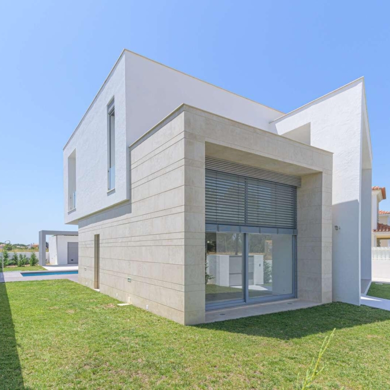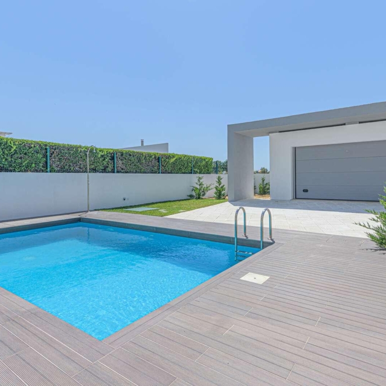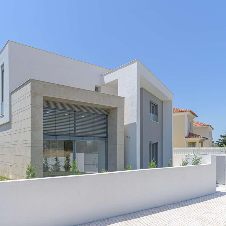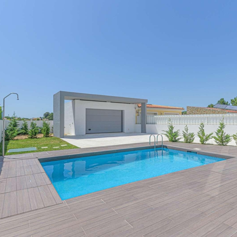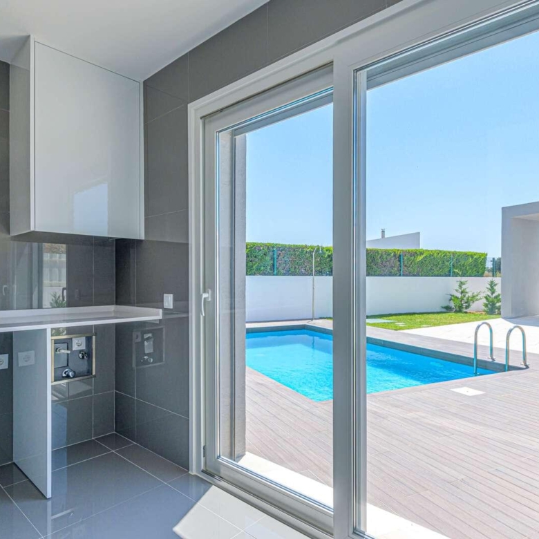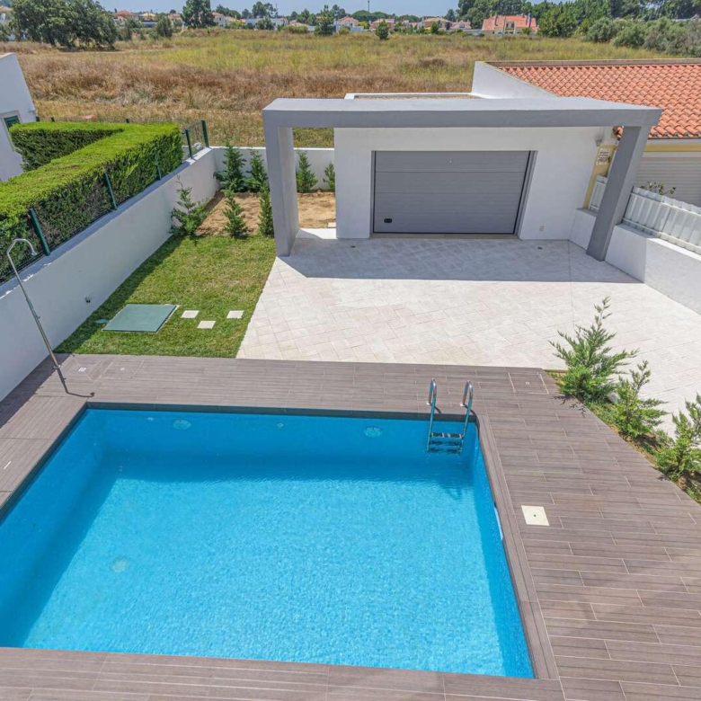 4 bedroom villa, with swimming pool, located in Quinta dos Foios, one of the most prestigious areas of Azeitao. The villa presents a contemporary design and it is brand new, ready to debut. With a modern architecture, this villa was projected to provide comfort, well being and a magnificent sun exposure, which is assured by large windows, providing a lot of brightness. The villa has accessibility for people with reduced mobility. The facade is coated with softened moleanos stone, the lighting is embedded and it has a ceramic deck. The villa is equipped with a central vacuum unit, a pre-installation of central heating, electrical blinds and a heat recovery unit. The wardrobes are embedded and the door is made of thermolaminated glass. The villa includes a swimming pool and a barbecue area, perfect for leisure moments with your family and friends. Construction gross floor area: 244 sqm Construction area: 293 sqm Land area: 541 sqm The villa is distributed as follows: The ground floor comprises a 33,5 sqm living room, a 6,3 sqm entry hall, a 13,8 sqm bedroom, a 2,3 sqm storage area, a 5,9 sqm bathroom and an 18,8 sqm kitchen with a laundry area. The first floor comprehends two bedrooms (13,8 sqm + 15,4 sqm) and a 19,9 sqm suite, supported by a 5,3 sqm bathroom. This floor also integrates a 6,7 sqm bathroom and a 19,1 sqm covered balcony. Accesses: - 35 minutes away from the Lisbon’s Airport - 15 minutes away from the St. Peter’s School - 15 minutes away from the beaches that integrate the Serra da Arrabida’s Nature Park - 3 minutes away from the Bacalhoa wines of Portugal - 1 minute away from the centre of Vila Fresca de Azeitao A few minutes away from the Arrabida’s Nature Park Property ID: PDF-PF22458 Price: €850,000 Property Size: 205.44 m2 Land Area: 541.0 m2 Bedrooms: 4 Bathrooms: 3 Year Built: 2019