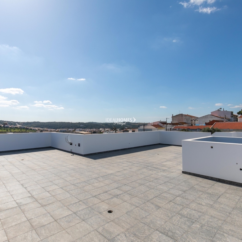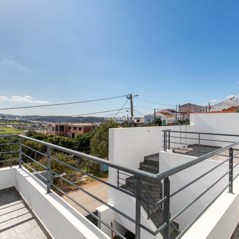 This six bedroom villa for sale is located in Silves, just a 10 minute walking distance from the city’s centre. Currently being completely renovated, this villa comprises three independent properties that could be shared with family or rented out for an additional income. The first property is a two storey townhouse and consists of an open plan living / dining room, a kitchen area, four bedrooms, three being with en-suite bathrooms, plus an extra bathroom. Sharing the same entry point, the second property is on the ground floor and consists of two bedrooms, one bathroom and an open plan kitchen and living / dining room. There’s also two patios on this floor, which can be shared, since it’s accessible from both properties. On the first floor, the third property is a studio apartment, with a kitchenette and a bathroom. There’s also a spacious terrace facing the front of the property with countryside views. Upstairs, the large rooftop terrace offers incredible 360º views of the mountains, the city and the castle in Silves, plus it also has the structure for building a swimming pool and a BBQ. As the villa is undergoing the final stages of the renovations, there is the opportunity for you to choose every finishing and details to design your dream home. Additional features include: double glazed windows, fitted wardrobes and pre-installation for air-conditioning and solar panels on the terrace. Within a two minute drive from the historic city’s centre, this property has the benefit of being located in a calm neighbourhood, surrounded by nature whilst still being to all sorts of amenities. Silves is one of the oldest towns in central Algarve, with its rich history, built on the banks of the River Arade. Property ID: IDH33044 Price: €630,000 Property Size: 199.39 m2 Land Area: 212.56 m2 Bedrooms: 6 Bathrooms: 6 Property Type: Villa Property Status: For Sale
