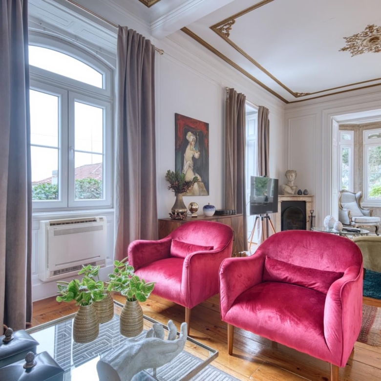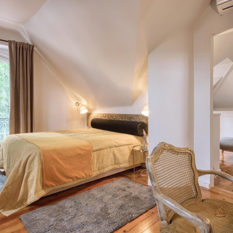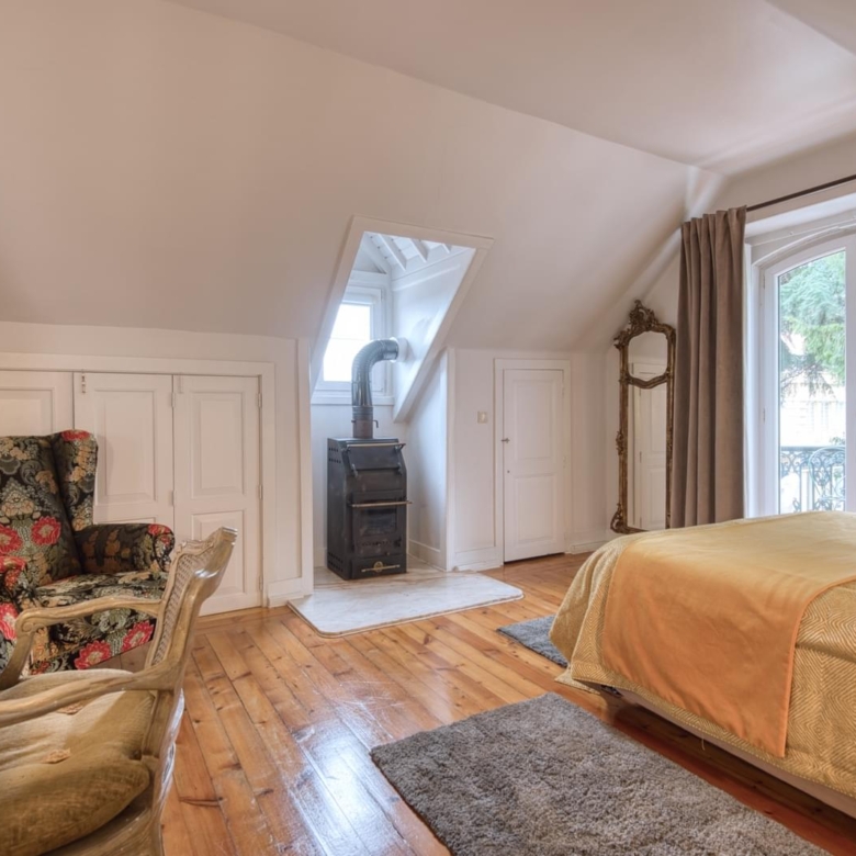Chalet in the Centre of Sintra The Chalet Sintra 1892 is part of a type of construction very fashionable in the village of Sintra in the late nineteenth century. It is inserted in the historical part of the city with a privileged location about 250 meters away from the train station to Lisbon and with unobstructed views over the city. It is located in a shopping area starting on the pedestrian street just below, with grocery stores, restaurants, cafes, bakery, banks, pharmacy and all the necessary services. It is a 15 minutes’ walking distance from the centre of Sintra. The Chalet has 4 suites in the main building, living room, dining room, kitchen and pantry. It also has an atelier with a studio typology in front of the house and an independent suite. In total there are 6 suites (four in the main house and another two in its exterior). It also comprises a laundry area, a large dimensioned storage area, a small and romantic garden with centenary trees and an area available for parking up to 4 vehicles. It was completely renovated in 2017 respecting the original design and preserving all the structural elements and architectural details of the time. All the rooms have air conditioning. The decoration is extremely tasteful contributing to recreate an elegant and unique environment. Here you will find the magic of Sintra, surrounded by green spaces, Chalets, and a lot of history. Located in the historic centre, 5 minutes away from the National Palace of Sintra and 10 minutes away from the Pena National Palace. Sintra is a charming Portuguese village located within the hills of the Sintra’s mountain. Hidden among these pine-covered hills, there are extravagant palaces, luxurious mansions and the ruins of an ancient castle. The variety of fascinating historical buildings and enchanting attractions make this location a magical place where you can enjoy nature at its fullest. Porta da Frente Christie’s is a real estate agency that has been operating in the market for more than two decades. Its focus lays on the highest quality houses and developments, not only in the selling market, but also in the renting market. The company was elected by the prestigious brand Christie’s – one of the most reputable auctioneers, Art institutions and Real Estate of the world – to be represented in Portugal, in the areas of Lisbon, Cascais, Oeiras, Sintra and Alentejo. The main purpose of Porta da Frente Christie’s is to offer a top-notch service to our customers. Property ID: PDF-PF32419 Price: €1,850,000 Property Size: 199.4 m2 Land Area: 213.0 m2 Bedrooms: 6 Bathrooms: 6