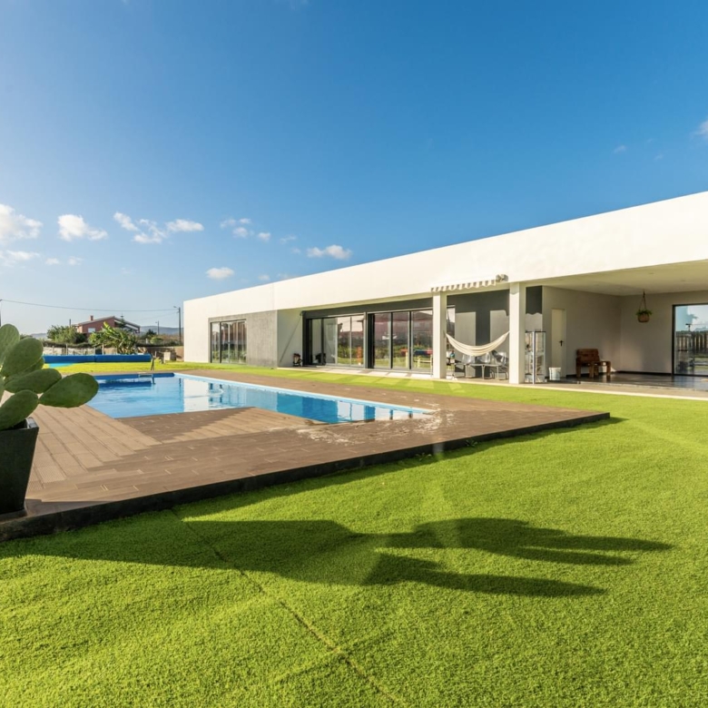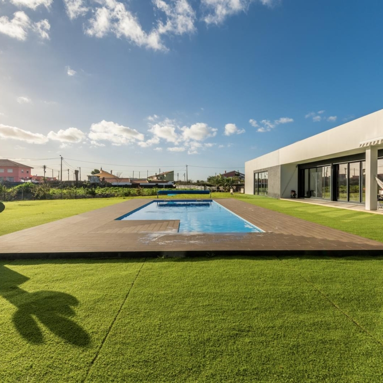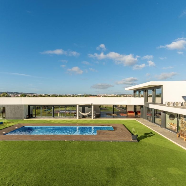 3 bedroom villa, of contemporary architecture, with unobstructed views to the mountain, implanted in a 3450 sqm lot, with heated swimming pool, a lounge area, a lawned garden and vast garden area. Main areas: Ground Floor: . Living room . Kitchen . Master suite with a walking closet . Bedroom . bedroom . bathroom . bathroom . Pantry . Laundry area First Floor: . Living room/office in mezzanine . terrace . bathroom In the garden area there is also an annex with kitchenette, living room and bathroom that supports the swimming pool’s area. The villa is equipped with air conditioning in all the rooms, water heater, charger for electric cars, video surveillance, electrical gates, solar panels and electrical blinds. The property includes a garage for 4 cars. It is located in a very quiet area, only a few minutes away from the best golf courses and international schools, 20 minutes away from the centre of Cascais and 15 minutes away from the centre of Lisbon, close to restaurants, supermarkets, services and accesses to the IC19 and A5 motorways. Porta da Frente Christie’s is a real estate agency that has been operating in the market for more than two decades. Its focus lays on the highest quality houses and developments, not only in the selling market, but also in the renting market. The company was elected by the prestigious brand Christie’s International Real Estate to represent Portugal in the areas of Lisbon, Cascais, Oeiras and Alentejo. Property ID: PDF-PF29197 Price: €2,250,000 Property Size: 304.5 m2 Land Area: 3450.0 m2 Bedrooms: 3 Bathrooms: 2