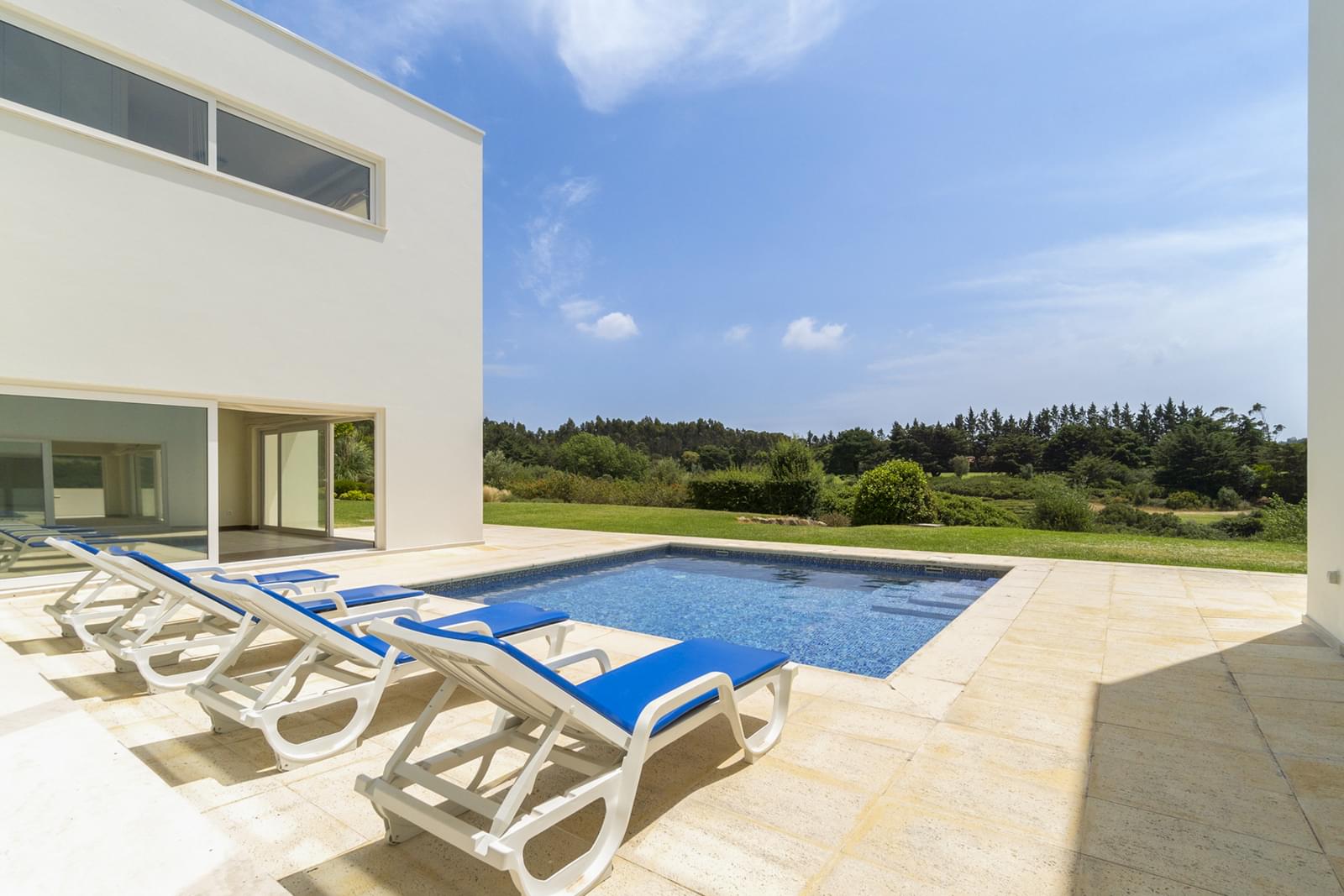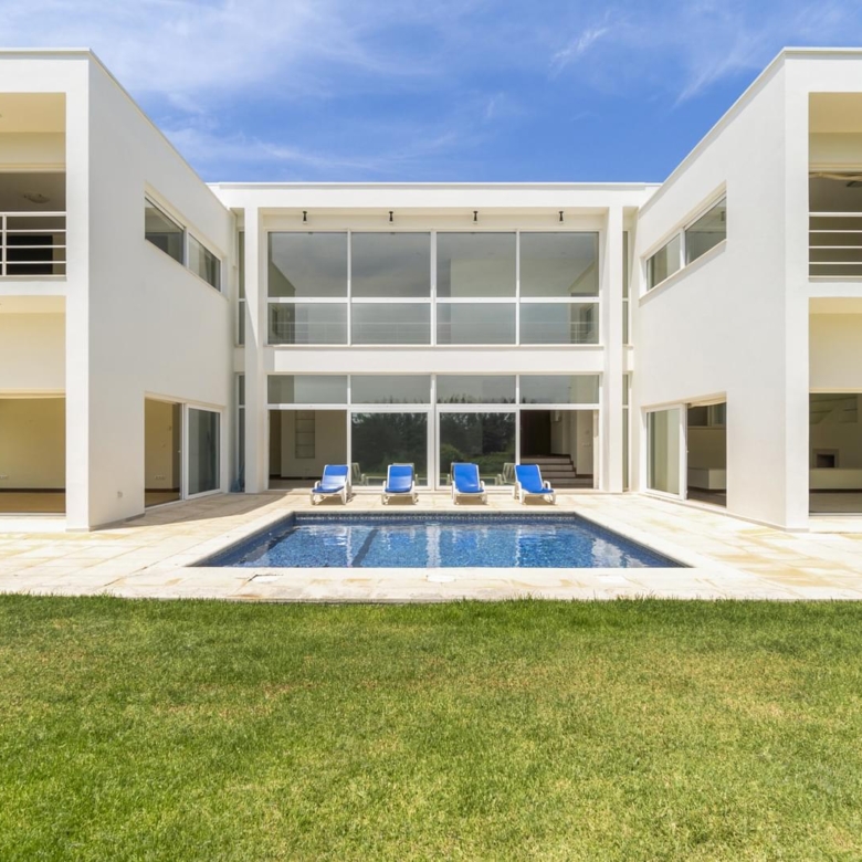 Porta da Frente Christie’s presents an exceptional detached 4+1 bedroom villa, with an excellent location, placed in the first line of golf in the prestigious condominium Belas Clube de Campo. The Villa has 3 floors and is situated on a 1607 sqm plot of land, with a 577 sqm construction area, a 351 sqm private gross area and a 298.35 sqm floor area, comprising 4 bedrooms, two of them en suite and two bedrooms supported by a bathroom, living room with 3 distinct areas (fireplace, sofas and television), dining room, equipped kitchen, living room, office, laundry area, storage area and an ample garage for 4 cars. Outside, there is a swimming pool area facing south, with direct views of the golf course and the Mountain of Sintra, ensuring total privacy, as well as an elegant exterior space for outdoor dining. It was designed by the famous Brazilian architect Ângelo de Castro. Built in 2007, in 2023 it underwent extensive maintenance in the second half of 2023, in order to provide maximum comfort and serenity to your family, with great attention to the quality of finishes and modernity. From an architectural point of view, the building consists of 2 main blocks, with 3 floors interconnected by corridors, stairs, patios and terraces. The social area extends throughout the ground floor, with several leisure spaces, where glazed walls predominate, some finishes on the floor in exotic wood, both inside and outside. The internal fireplace, in a double high ceiling area/mezzanine, is the striking feature of this large dimensioned, bright and ethereal space, which integrates with the adjacent outdoor spaces of the swimming pool, garden and outdoor living room. Main features of the Villa: - 3 floors - 2 Suites - 2 Bedrooms - 5 Bathrooms - 2 living rooms - Swimming pool, terraces and garden - Total Privacy Ground Floor - Living rooms - Dining room - Kitchen - Bathroom - Office with terrace First floor - 2 Bedrooms en Suite with balcony - 2 Bedrooms - 3 Bathrooms - 2 Closets Basement - Garage - Laundry area - Engine room - Bathroom - Wine cellar Exterior Area - Swimming pool - Garden - Terraces - Grill/Barbecue Area - Porch This villa is located in a private square, in one of the best locations of this condominium and also benefits from the proximity of restaurants, pharmacy, minimarket, gym, playgrounds, tennis, paddle and basketball, all these amenities within this closed condominium, with 24-hour security, during the 7 days of the week, awarded and environmentally friendly. The condominium Belas Clube de Campo, with easy access to Lisbon (15 minutes), is between Oeiras, Cascais and Sintra via motorways and expressways that make the access agile to those who want to live and work next to Lisbon. Property ID: PDF-PF33928 Price: €2,250,000 Property Size: 351.96 m2 Land Area: 1607.2 m2 Bedrooms: 4 Bathrooms: 4 Year Built: 2009 Property Type: House Property Status: For Sale