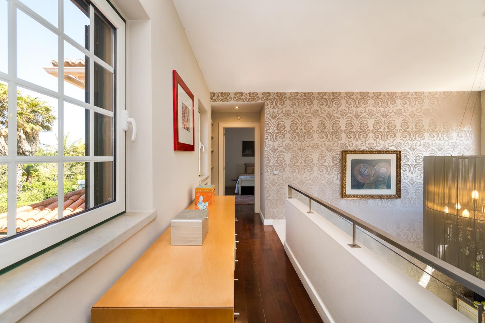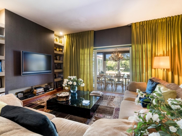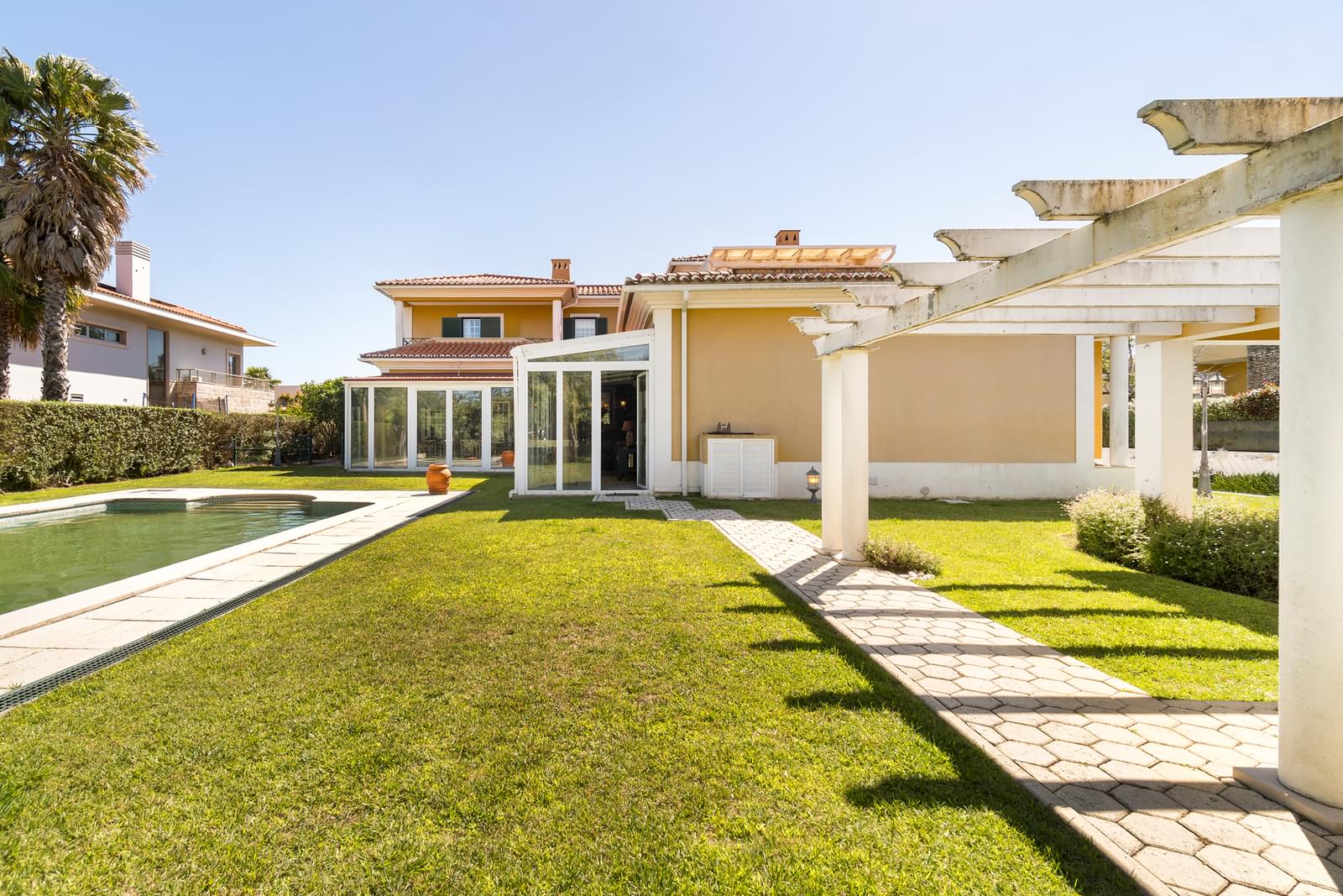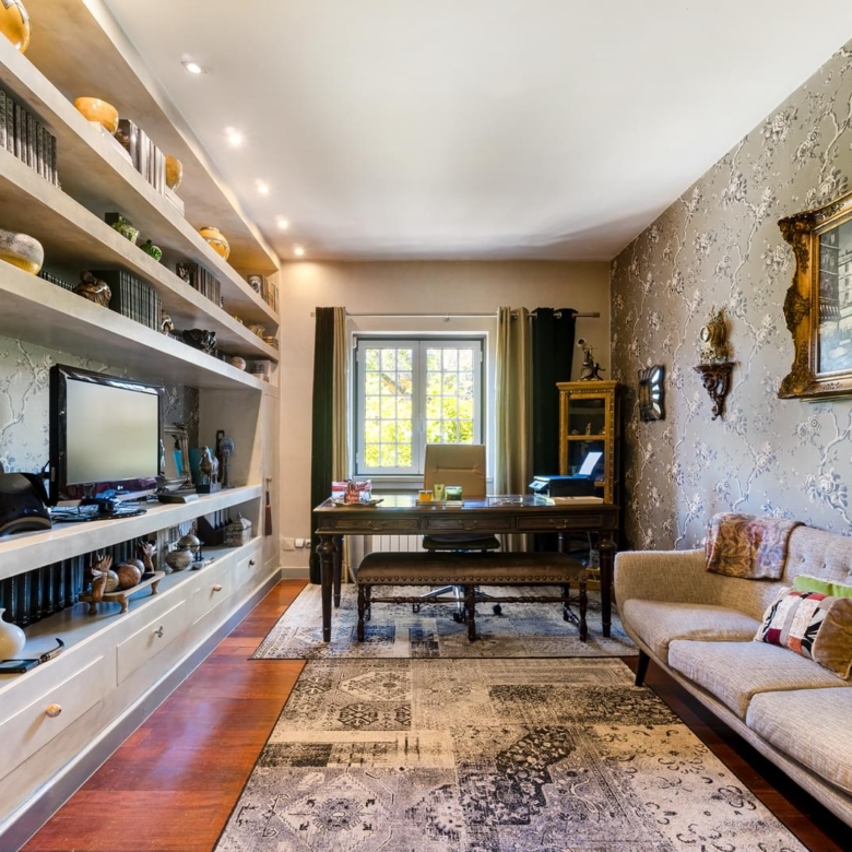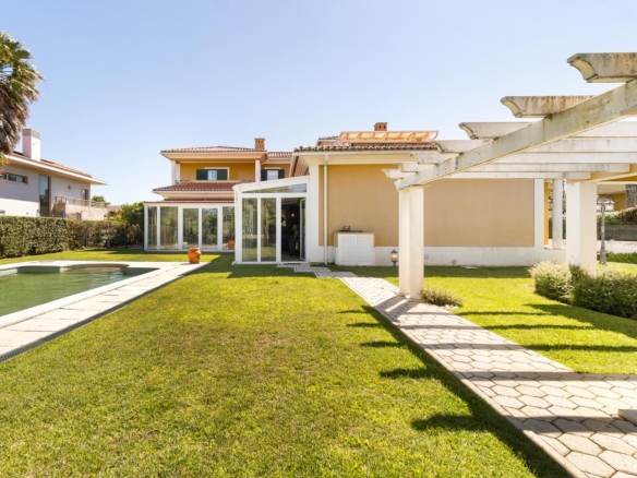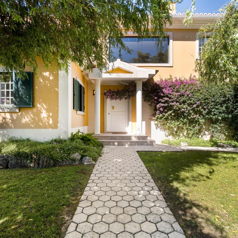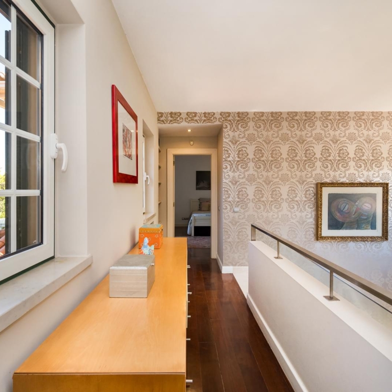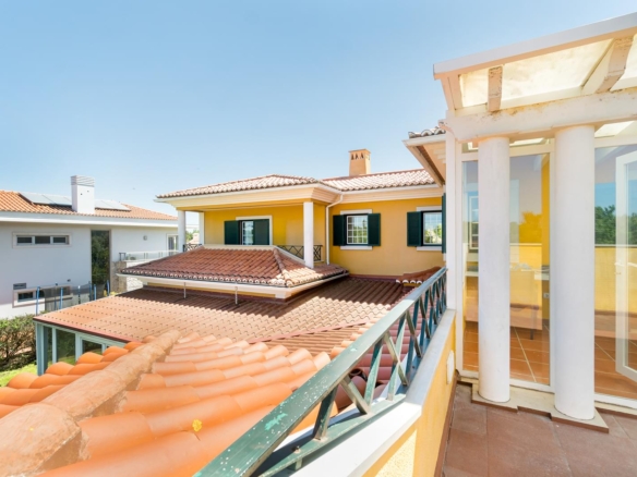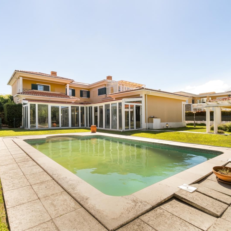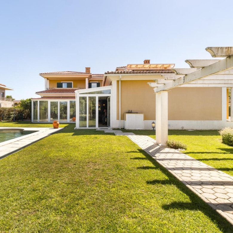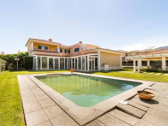 If you are looking for a villa located in Quinta da Beloura, a 5 bedroom villa with 450 sqm, inserted in an excellent 1.260 sqm land with golf views, this is the ideal property. Quinta da Beloura is known for its privileged location that combines the serenity of nature with the convenience of the city, enjoys a lot of serenity and security, being full of areas that provide leisure activities such as golf, tennis and paddle. It also provides supermarkets and hypermarket, as well as international schools, such as Tasis and Carlucci American School, and also a tennis school and a riding school. Nearby, there are also luxury hotels, such as Hotel Penha Longa Resort and Hotel Pestana Sintra Golf Resort. It is located 10 minutes away from the village of Cascais and Sintra, being very close to its beaches, 10 minutes away from three shopping centres and also with an excellent access to the motorway to Lisbon and the North of the country. The villa comprises three floors and it is distributed as follows: - In the basement there is a garage with 59 sqm, with parking space for two to three cars, a wine cellar and a storage area. - On the first floor, you enter a hall with a double high ceiling that accesses the second floor. From the hall you have access to the living room, kitchen, dining room, office and two suites. The living room accesses a closed porch of 50 sqm, which was converted into a dining room and living room, a leisure space to socialize with family and friends. The open space kitchen connected to a dining room facilitates the circulation between the two spaces. On the second floor there is another suite with access to a terrace overlooking the golf, two bedrooms and a large dimensioned bathroom that supports the two bedrooms. One of these bedrooms has access to a terrace overlooking the golf course. Outside, the leisure area overlooks the golf course, with an ample garden area, with swimming pool and a covered barbecue area where you can dine outdoors. Outdoor parking space and an enclosed area to accommodate your pets. The whole house is equipped with central heating, solar panels for heating sanitary water, water heater and reversible air conditioning on the enclosed porch. Come and visit! Porta da Frente Christie’s is a real estate agency that has been operating in the market for more than two decades. Its focus lays on the highest quality houses and developments, not only in the selling market, but also in the renting market. The company was elected by the prestigious brand Christie’s International Real Estate to represent Portugal in the areas of Lisbon, Cascais, Oeiras and Alentejo. The main purpose of Porta da Frente Christie’s is to offer a top-notch service to our customers. Property ID: PDF-PF33840 Price: €2,100,000 Property Size: 308.0 m2 Land Area: 1260.0 m2 Bedrooms: 5 Bathrooms: 5 Property Type: House Property Status: For Sale