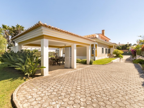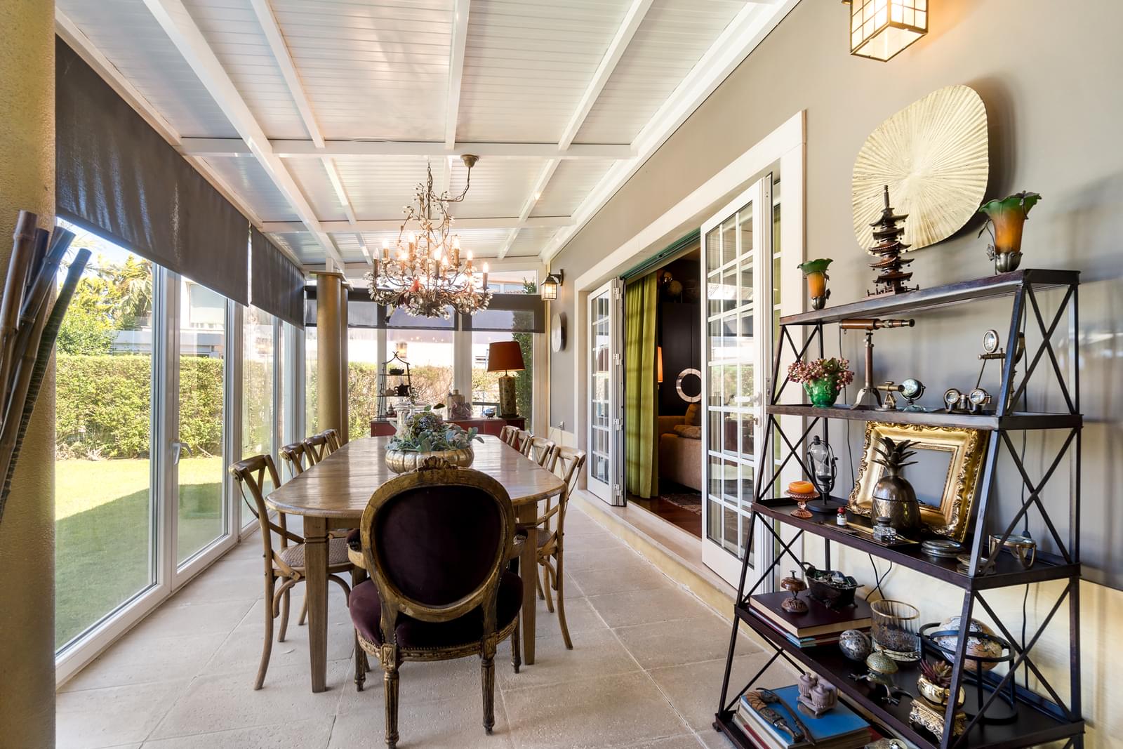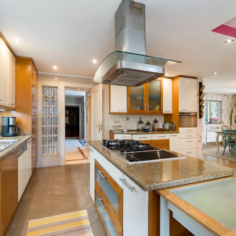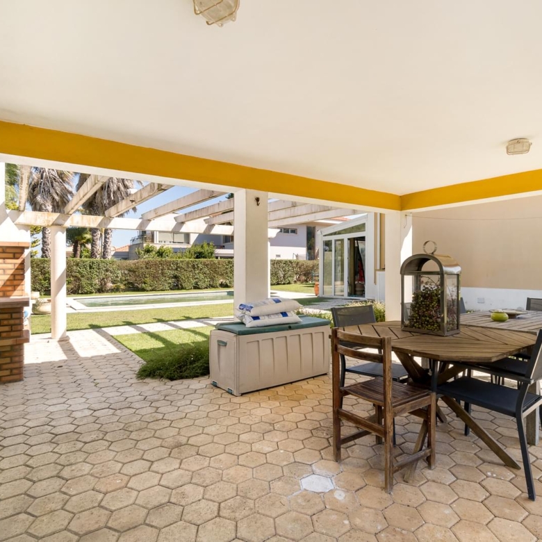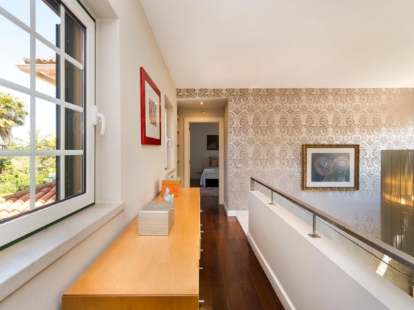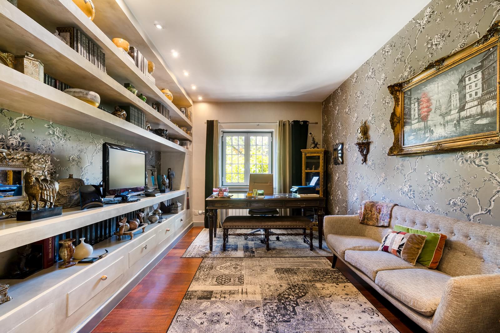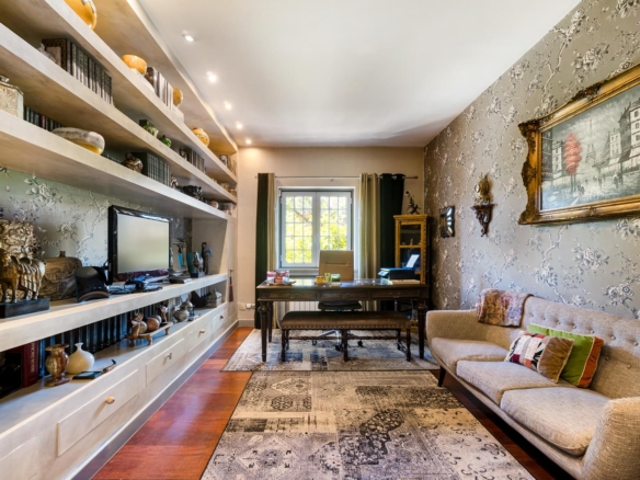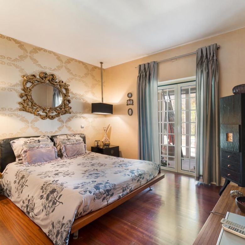 If you are looking for a villa located in Quinta da Beloura, a 5 bedroom villa with 450 sqm, inserted in an excellent 1.260 sqm land with golf views, this is the ideal property. Quinta da Beloura is known for its privileged location that combines the serenity of nature with the convenience of the city, enjoys a lot of serenity and security, being full of areas that provide leisure activities such as golf, tennis and paddle. It also provides supermarkets and hypermarket, as well as international schools, such as Tasis and Carlucci American School, and also a tennis school and a riding school. Nearby, there are also luxury hotels, such as Hotel Penha Longa Resort and Hotel Pestana Sintra Golf Resort. It is located 10 minutes away from the village of Cascais and Sintra, being very close to its beaches, 10 minutes away from three shopping centres and also with an excellent access to the motorway to Lisbon and the North of the country. The villa comprises three floors and it is distributed as follows: - In the basement there is a garage with 59 sqm, with parking space for two to three cars, a wine cellar and a storage area. - On the first floor, you enter a hall with a double high ceiling that accesses the second floor. From the hall you have access to the living room, kitchen, dining room, office and two suites. The living room accesses a closed porch of 50 sqm, which was converted into a dining room and living room, a leisure space to socialize with family and friends. The open space kitchen connected to a dining room facilitates the circulation between the two spaces. On the second floor there is another suite with access to a terrace overlooking the golf, two bedrooms and a large dimensioned bathroom that supports the two bedrooms. One of these bedrooms has access to a terrace overlooking the golf course. Outside, the leisure area overlooks the golf course, with an ample garden area, with swimming pool and a covered barbecue area where you can dine outdoors. Outdoor parking space and an enclosed area to accommodate your pets. The whole house is equipped with central heating, solar panels for heating sanitary water, water heater and reversible air conditioning on the enclosed porch. Come and visit! Porta da Frente Christie’s is a real estate agency that has been operating in the market for more than two decades. Its focus lays on the highest quality houses and developments, not only in the selling market, but also in the renting market. The company was elected by the prestigious brand Christie’s International Real Estate to represent Portugal in the areas of Lisbon, Cascais, Oeiras and Alentejo. The main purpose of Porta da Frente Christie’s is to offer a top-notch service to our customers. Property ID: PDF-PF33840 Price: €2,100,000 Property Size: 308.0 m2 Land Area: 1260.0 m2 Bedrooms: 5 Bathrooms: 5 Property Type: House Property Status: For Sale