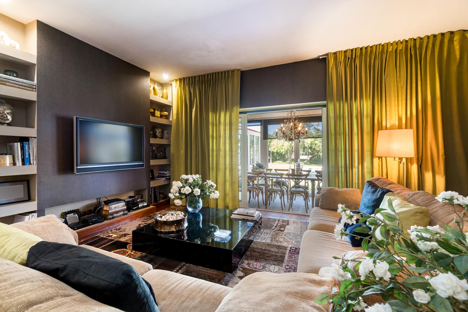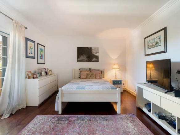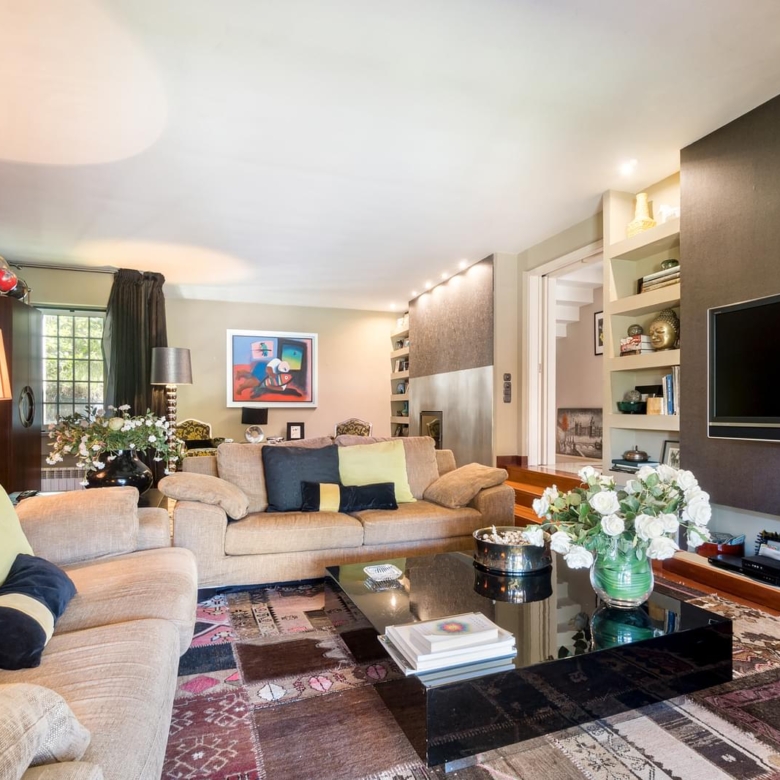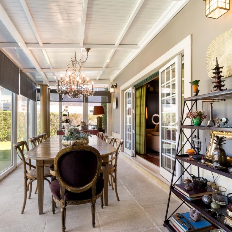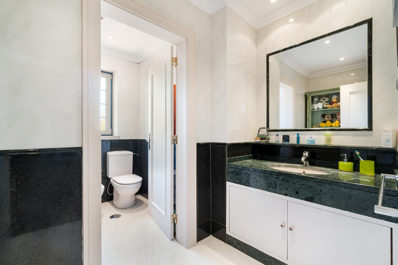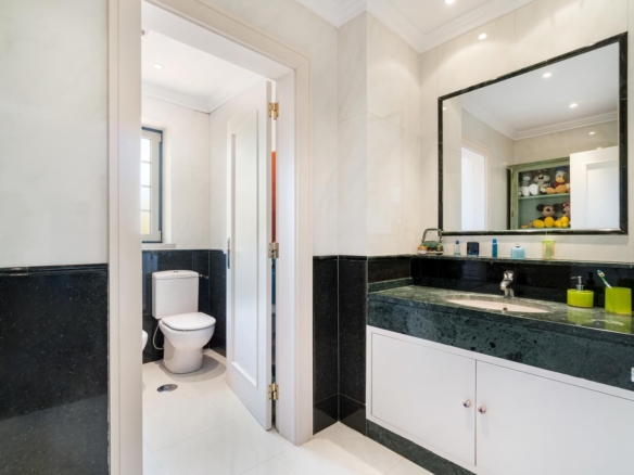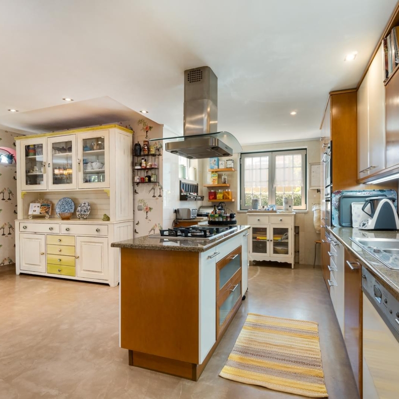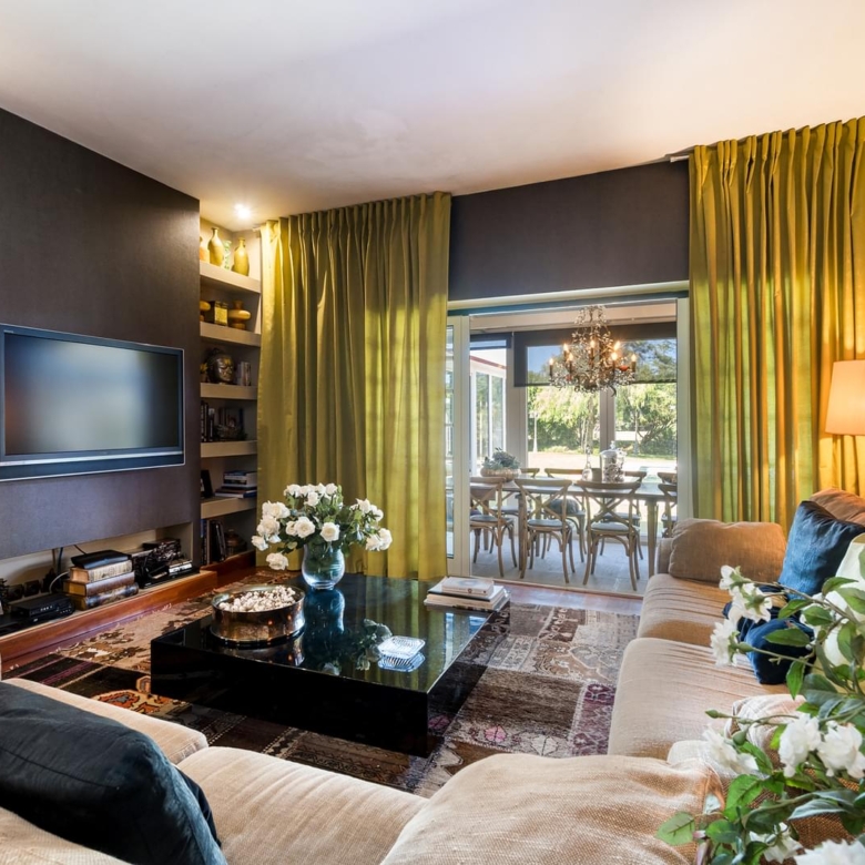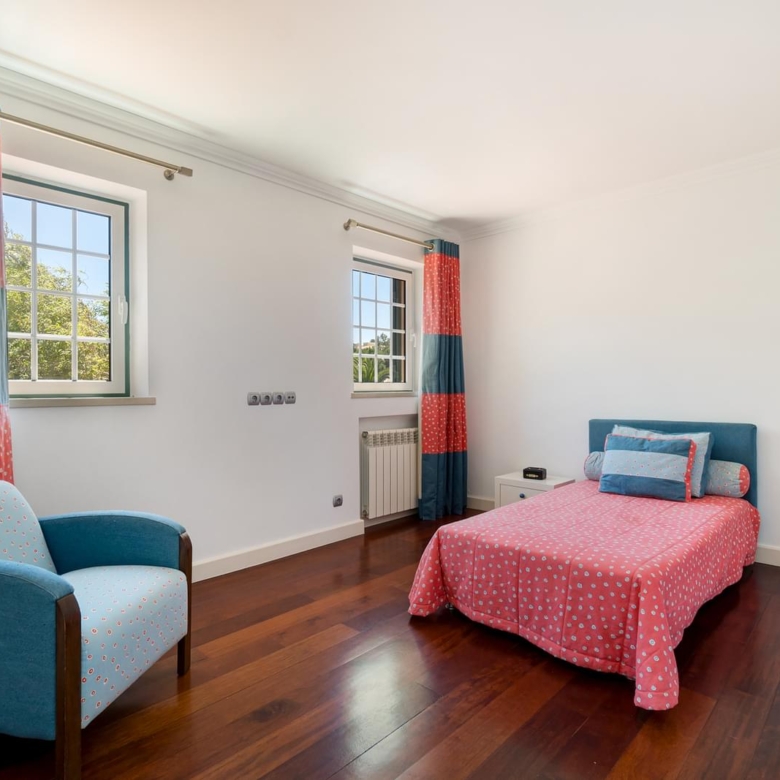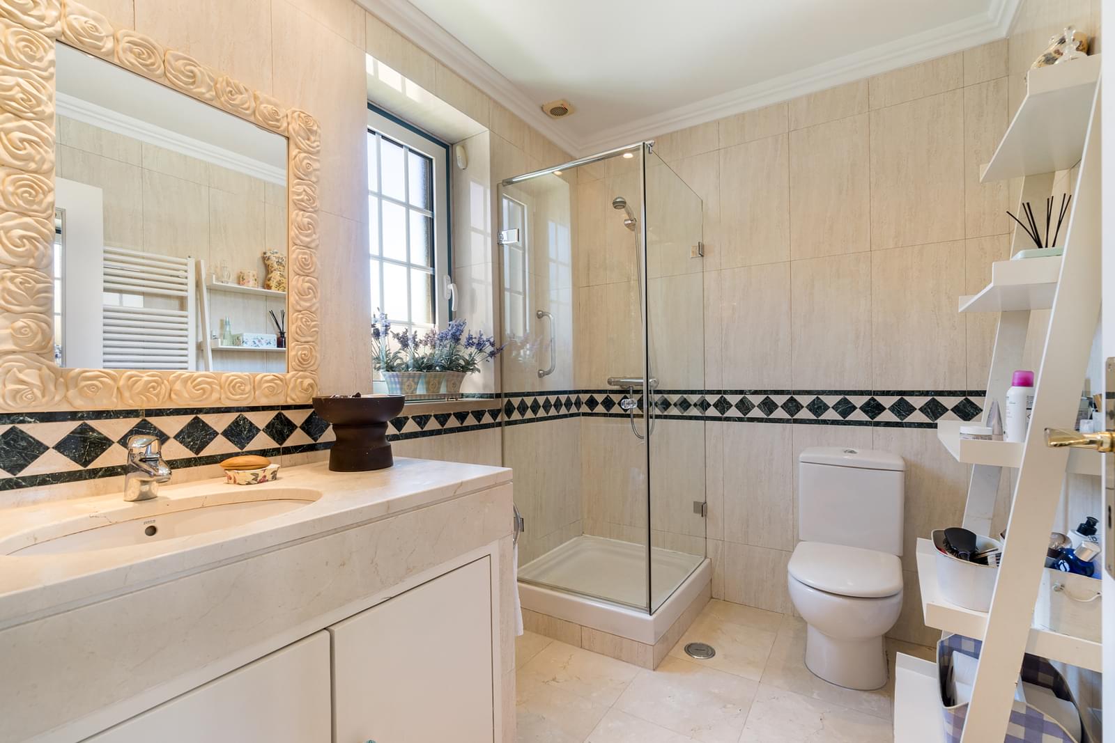 If you are looking for a villa located in Quinta da Beloura, a 5 bedroom villa with 450 sqm, inserted in an excellent 1.260 sqm land with golf views, this is the ideal property. Quinta da Beloura is known for its privileged location that combines the serenity of nature with the convenience of the city, enjoys a lot of serenity and security, being full of areas that provide leisure activities such as golf, tennis and paddle. It also provides supermarkets and hypermarket, as well as international schools, such as Tasis and Carlucci American School, and also a tennis school and a riding school. Nearby, there are also luxury hotels, such as Hotel Penha Longa Resort and Hotel Pestana Sintra Golf Resort. It is located 10 minutes away from the village of Cascais and Sintra, being very close to its beaches, 10 minutes away from three shopping centres and also with an excellent access to the motorway to Lisbon and the North of the country. The villa comprises three floors and it is distributed as follows: - In the basement there is a garage with 59 sqm, with parking space for two to three cars, a wine cellar and a storage area. - On the first floor, you enter a hall with a double high ceiling that accesses the second floor. From the hall you have access to the living room, kitchen, dining room, office and two suites. The living room accesses a closed porch of 50 sqm, which was converted into a dining room and living room, a leisure space to socialize with family and friends. The open space kitchen connected to a dining room facilitates the circulation between the two spaces. On the second floor there is another suite with access to a terrace overlooking the golf, two bedrooms and a large dimensioned bathroom that supports the two bedrooms. One of these bedrooms has access to a terrace overlooking the golf course. Outside, the leisure area overlooks the golf course, with an ample garden area, with swimming pool and a covered barbecue area where you can dine outdoors. Outdoor parking space and an enclosed area to accommodate your pets. The whole house is equipped with central heating, solar panels for heating sanitary water, water heater and reversible air conditioning on the enclosed porch. Come and visit! Porta da Frente Christie’s is a real estate agency that has been operating in the market for more than two decades. Its focus lays on the highest quality houses and developments, not only in the selling market, but also in the renting market. The company was elected by the prestigious brand Christie’s International Real Estate to represent Portugal in the areas of Lisbon, Cascais, Oeiras and Alentejo. The main purpose of Porta da Frente Christie’s is to offer a top-notch service to our customers. Property ID: PDF-PF33840 Price: €2,100,000 Property Size: 308.0 m2 Land Area: 1260.0 m2 Bedrooms: 5 Bathrooms: 5 Property Type: House Property Status: For Sale