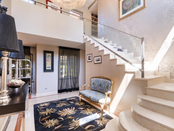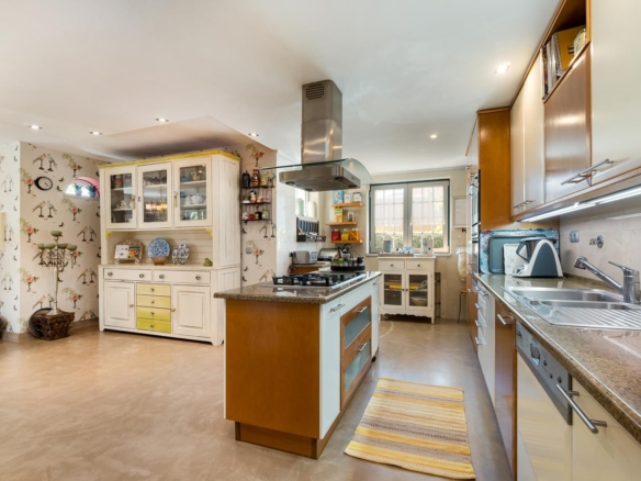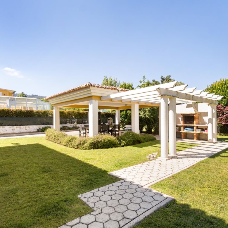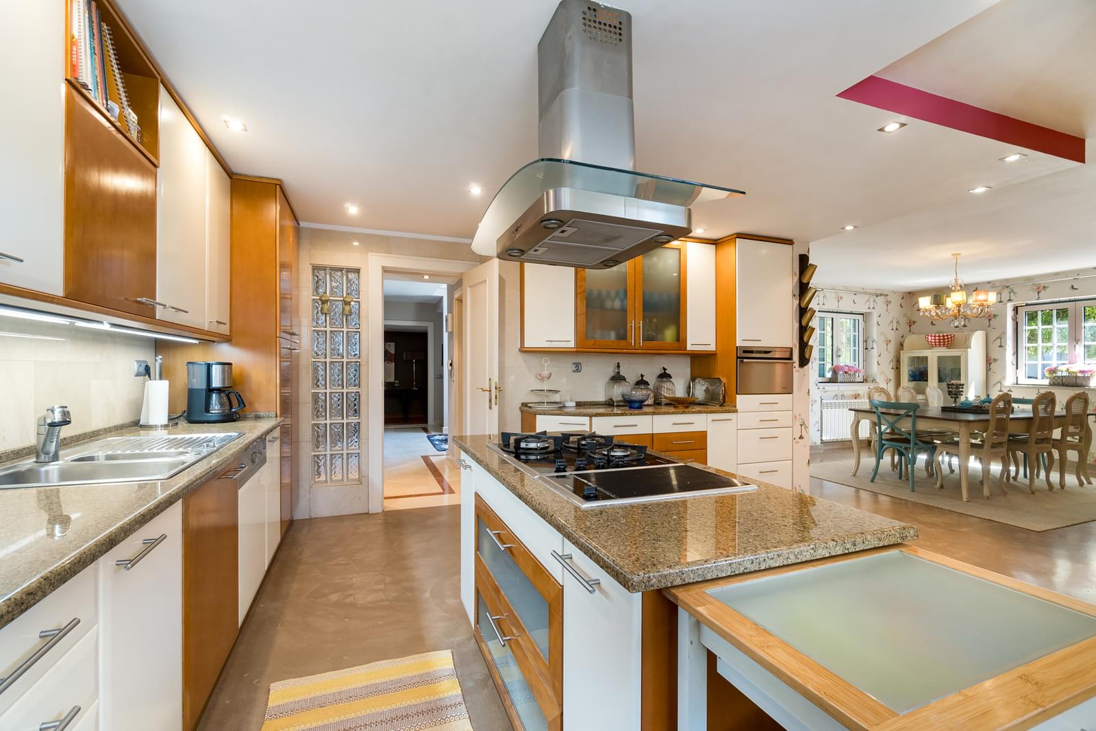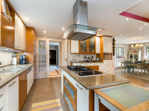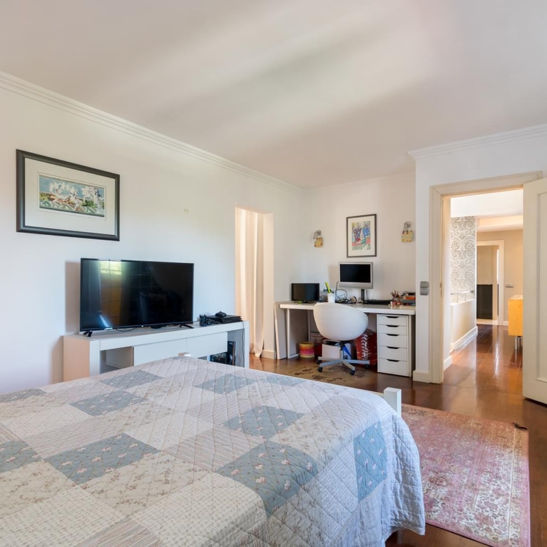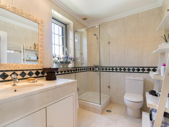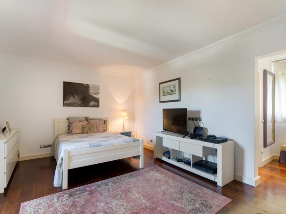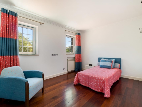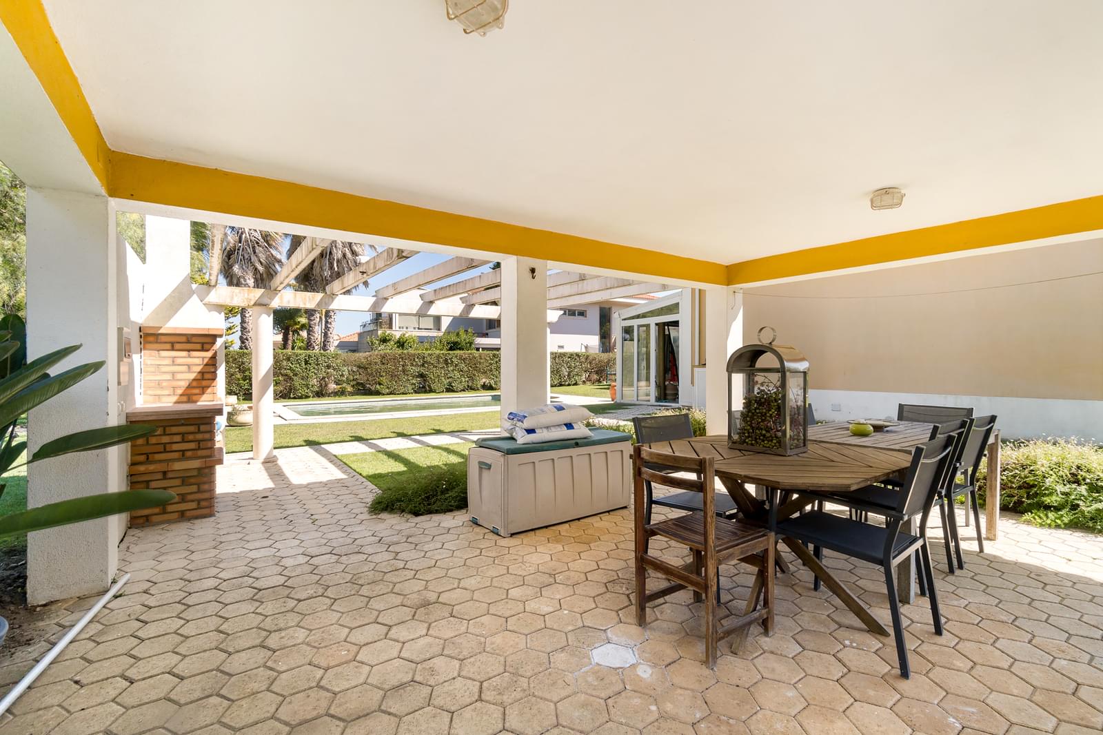 If you are looking for a villa located in Quinta da Beloura, a 5 bedroom villa with 450 sqm, inserted in an excellent 1.260 sqm land with golf views, this is the ideal property. Quinta da Beloura is known for its privileged location that combines the serenity of nature with the convenience of the city, enjoys a lot of serenity and security, being full of areas that provide leisure activities such as golf, tennis and paddle. It also provides supermarkets and hypermarket, as well as international schools, such as Tasis and Carlucci American School, and also a tennis school and a riding school. Nearby, there are also luxury hotels, such as Hotel Penha Longa Resort and Hotel Pestana Sintra Golf Resort. It is located 10 minutes away from the village of Cascais and Sintra, being very close to its beaches, 10 minutes away from three shopping centres and also with an excellent access to the motorway to Lisbon and the North of the country. The villa comprises three floors and it is distributed as follows: - In the basement there is a garage with 59 sqm, with parking space for two to three cars, a wine cellar and a storage area. - On the first floor, you enter a hall with a double high ceiling that accesses the second floor. From the hall you have access to the living room, kitchen, dining room, office and two suites. The living room accesses a closed porch of 50 sqm, which was converted into a dining room and living room, a leisure space to socialize with family and friends. The open space kitchen connected to a dining room facilitates the circulation between the two spaces. On the second floor there is another suite with access to a terrace overlooking the golf, two bedrooms and a large dimensioned bathroom that supports the two bedrooms. One of these bedrooms has access to a terrace overlooking the golf course. Outside, the leisure area overlooks the golf course, with an ample garden area, with swimming pool and a covered barbecue area where you can dine outdoors. Outdoor parking space and an enclosed area to accommodate your pets. The whole house is equipped with central heating, solar panels for heating sanitary water, water heater and reversible air conditioning on the enclosed porch. Come and visit! Porta da Frente Christie’s is a real estate agency that has been operating in the market for more than two decades. Its focus lays on the highest quality houses and developments, not only in the selling market, but also in the renting market. The company was elected by the prestigious brand Christie’s International Real Estate to represent Portugal in the areas of Lisbon, Cascais, Oeiras and Alentejo. The main purpose of Porta da Frente Christie’s is to offer a top-notch service to our customers. Property ID: PDF-PF33840 Price: €2,100,000 Property Size: 308.0 m2 Land Area: 1260.0 m2 Bedrooms: 5 Bathrooms: 5 Property Type: House Property Status: For Sale