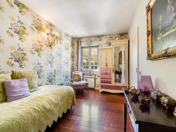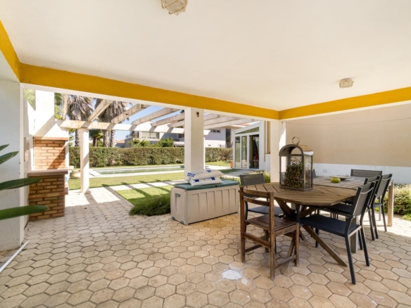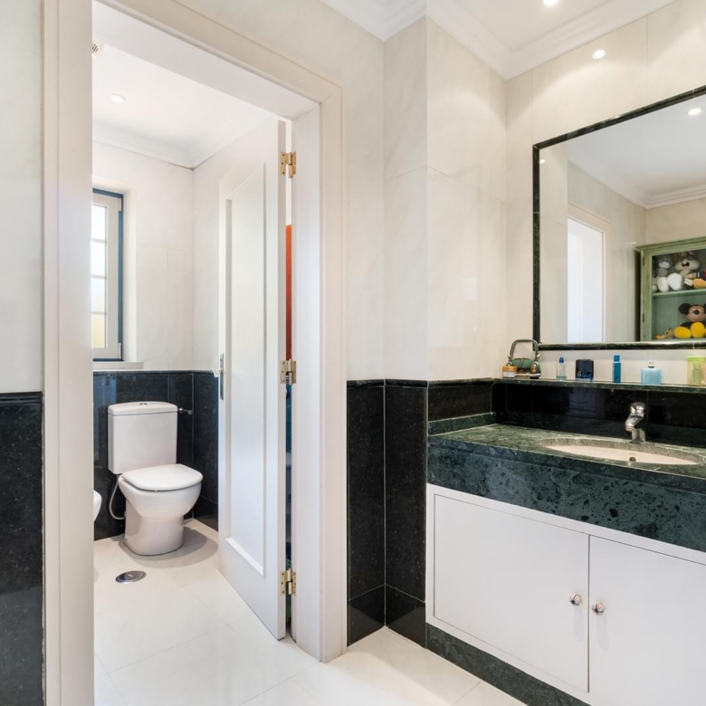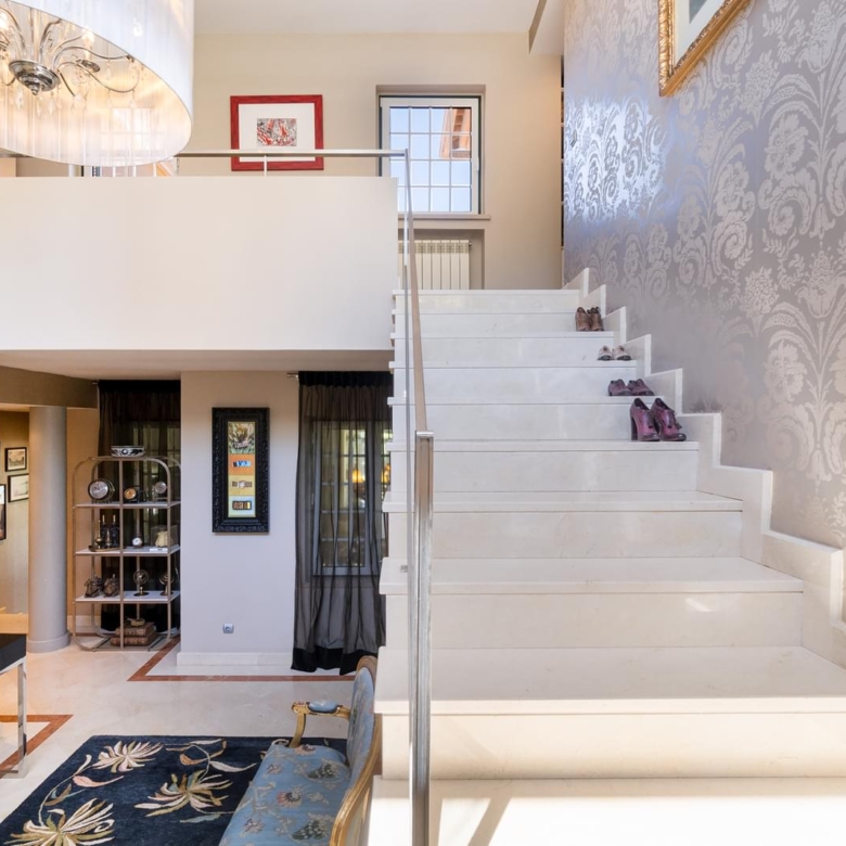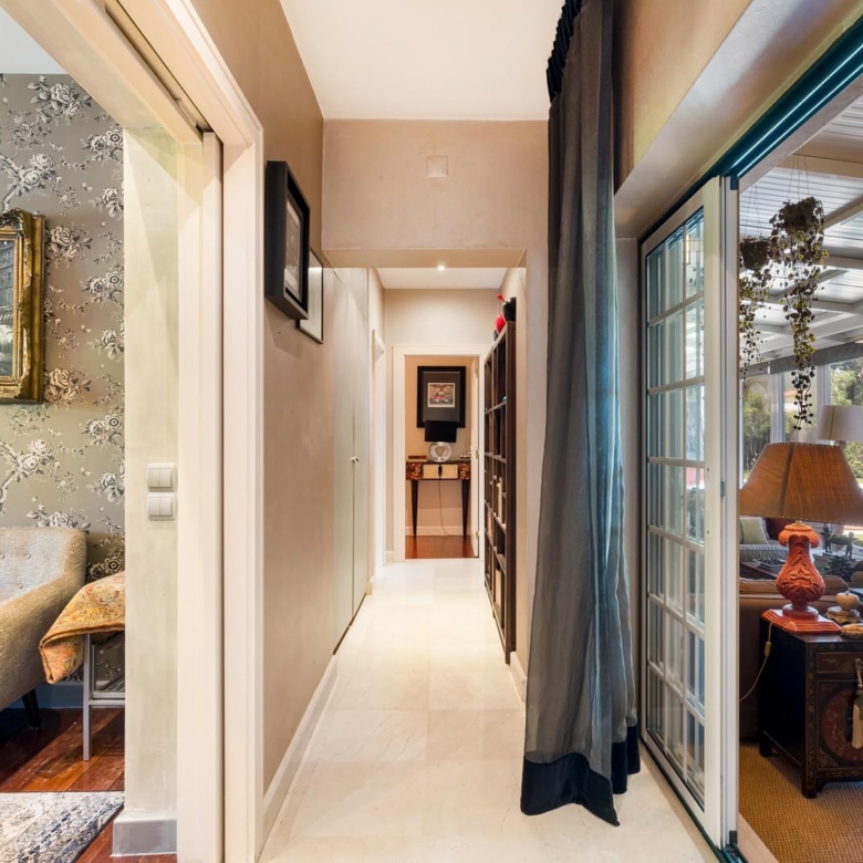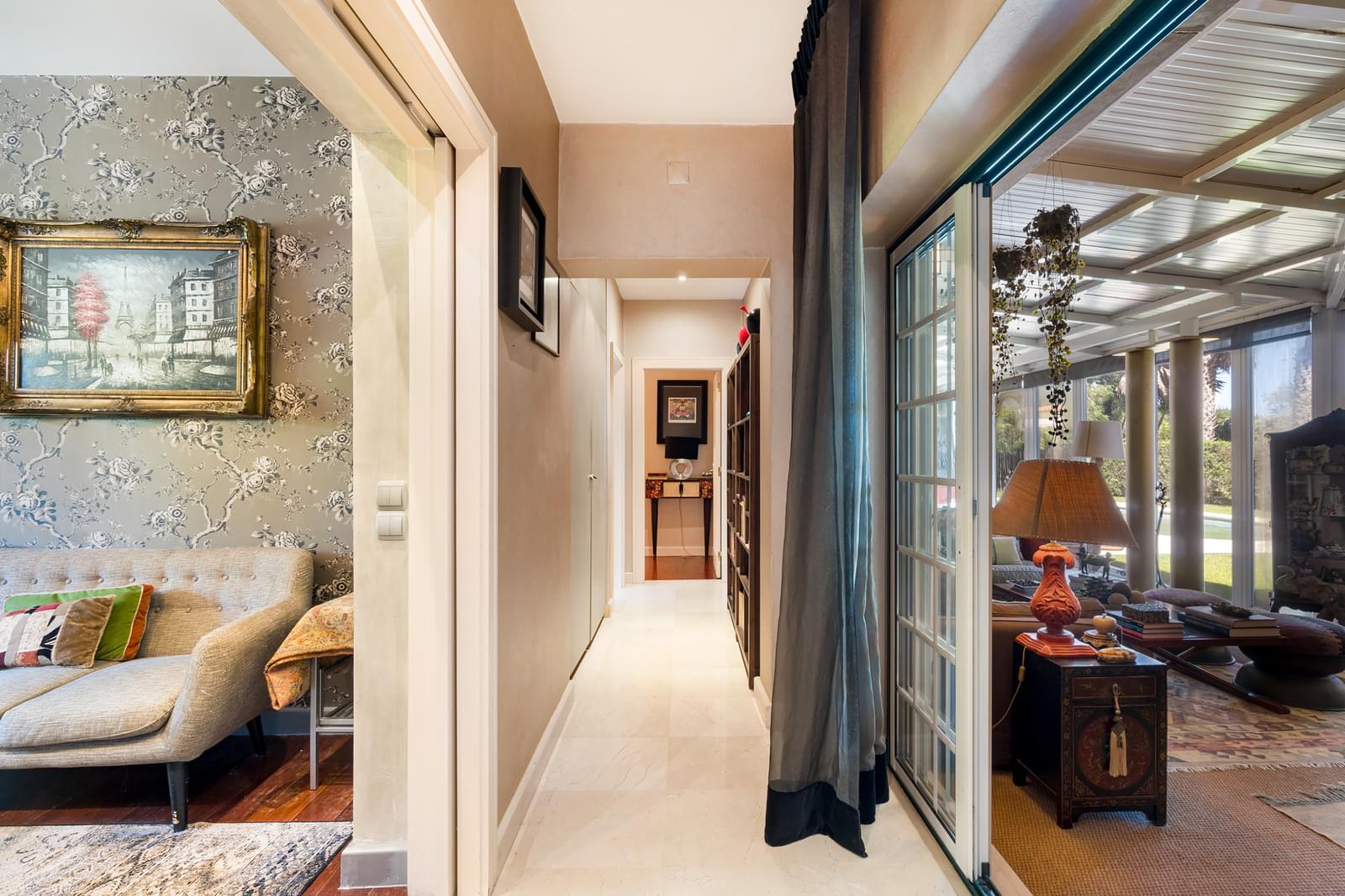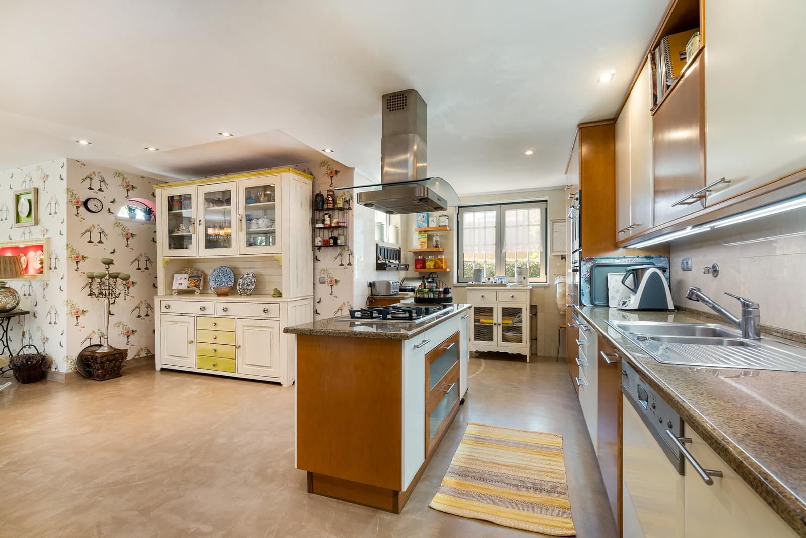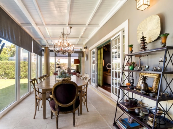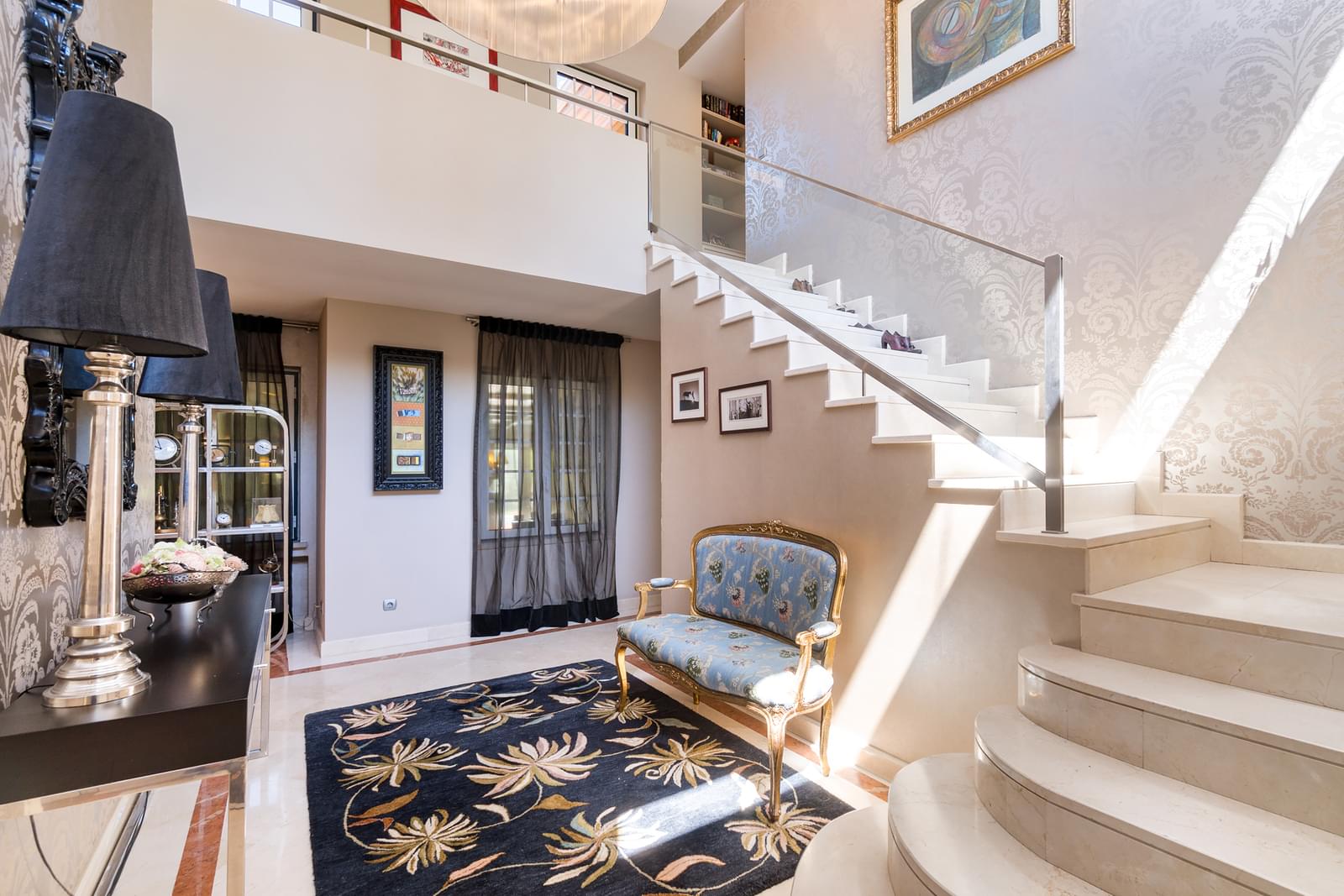 If you are looking for a villa located in Quinta da Beloura, a 5 bedroom villa with 450 sqm, inserted in an excellent 1.260 sqm land with golf views, this is the ideal property. Quinta da Beloura is known for its privileged location that combines the serenity of nature with the convenience of the city, enjoys a lot of serenity and security, being full of areas that provide leisure activities such as golf, tennis and paddle. It also provides supermarkets and hypermarket, as well as international schools, such as Tasis and Carlucci American School, and also a tennis school and a riding school. Nearby, there are also luxury hotels, such as Hotel Penha Longa Resort and Hotel Pestana Sintra Golf Resort. It is located 10 minutes away from the village of Cascais and Sintra, being very close to its beaches, 10 minutes away from three shopping centres and also with an excellent access to the motorway to Lisbon and the North of the country. The villa comprises three floors and it is distributed as follows: - In the basement there is a garage with 59 sqm, with parking space for two to three cars, a wine cellar and a storage area. - On the first floor, you enter a hall with a double high ceiling that accesses the second floor. From the hall you have access to the living room, kitchen, dining room, office and two suites. The living room accesses a closed porch of 50 sqm, which was converted into a dining room and living room, a leisure space to socialize with family and friends. The open space kitchen connected to a dining room facilitates the circulation between the two spaces. On the second floor there is another suite with access to a terrace overlooking the golf, two bedrooms and a large dimensioned bathroom that supports the two bedrooms. One of these bedrooms has access to a terrace overlooking the golf course. Outside, the leisure area overlooks the golf course, with an ample garden area, with swimming pool and a covered barbecue area where you can dine outdoors. Outdoor parking space and an enclosed area to accommodate your pets. The whole house is equipped with central heating, solar panels for heating sanitary water, water heater and reversible air conditioning on the enclosed porch. Come and visit! Porta da Frente Christie’s is a real estate agency that has been operating in the market for more than two decades. Its focus lays on the highest quality houses and developments, not only in the selling market, but also in the renting market. The company was elected by the prestigious brand Christie’s International Real Estate to represent Portugal in the areas of Lisbon, Cascais, Oeiras and Alentejo. The main purpose of Porta da Frente Christie’s is to offer a top-notch service to our customers. Property ID: PDF-PF33840 Price: €2,100,000 Property Size: 308.0 m2 Land Area: 1260.0 m2 Bedrooms: 5 Bathrooms: 5 Property Type: House Property Status: For Sale