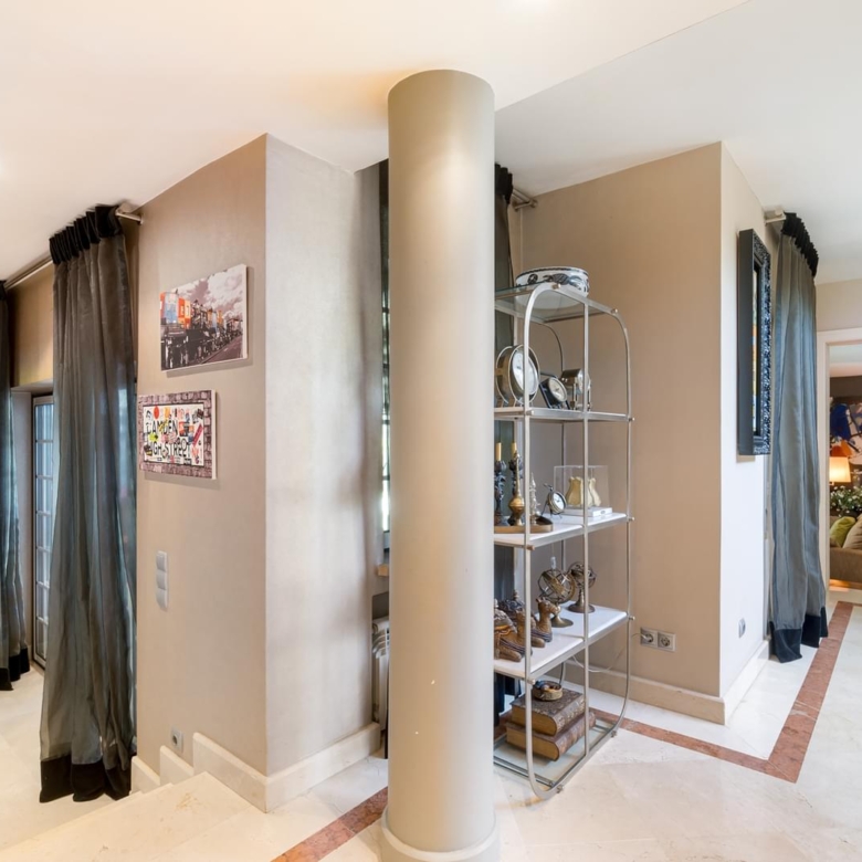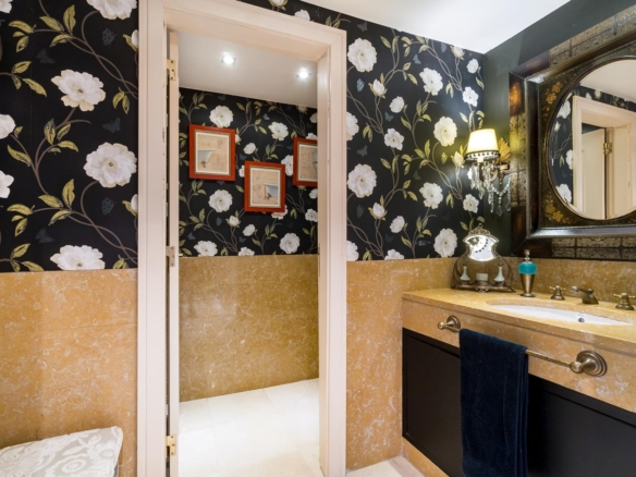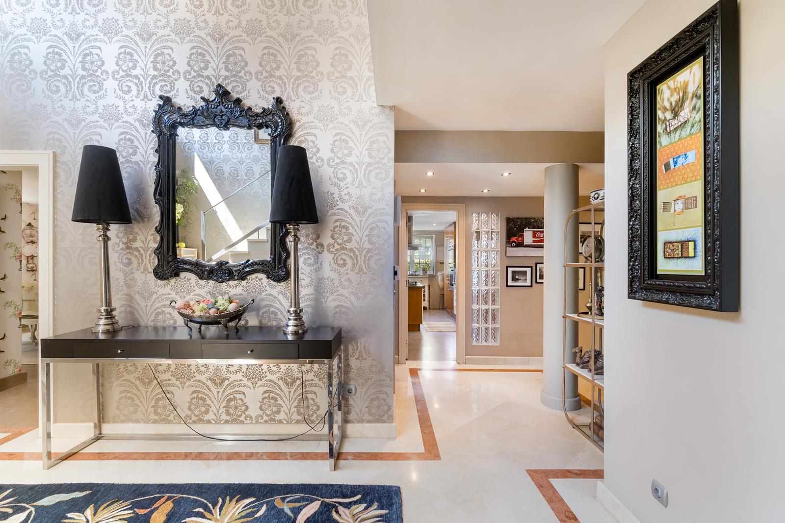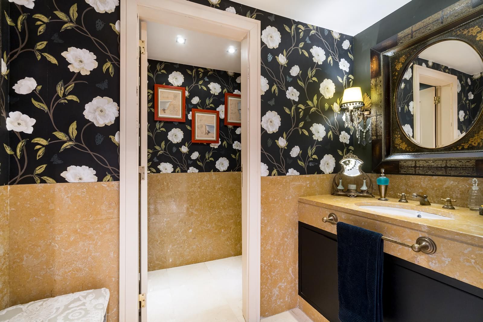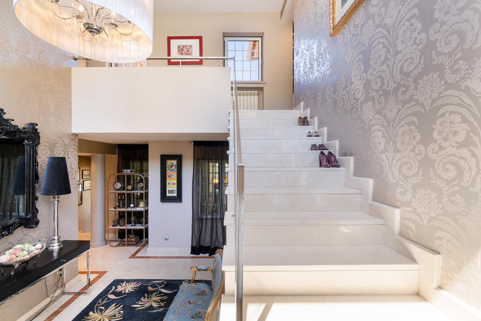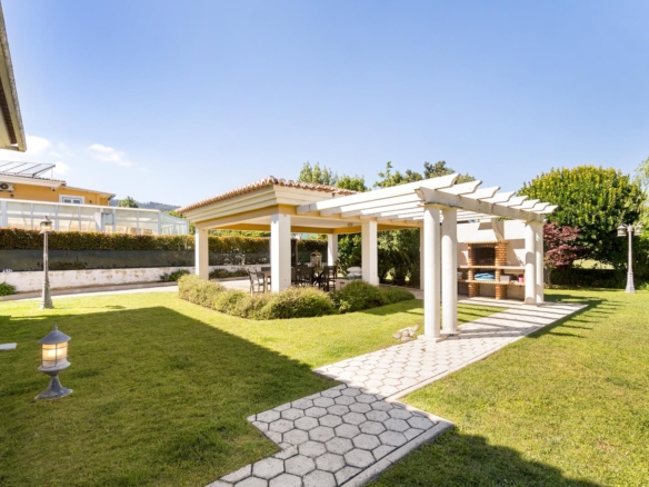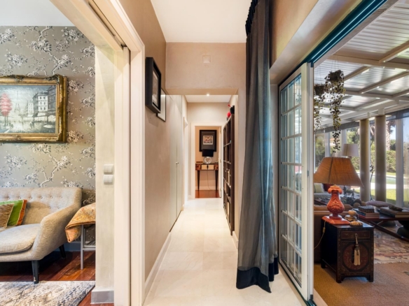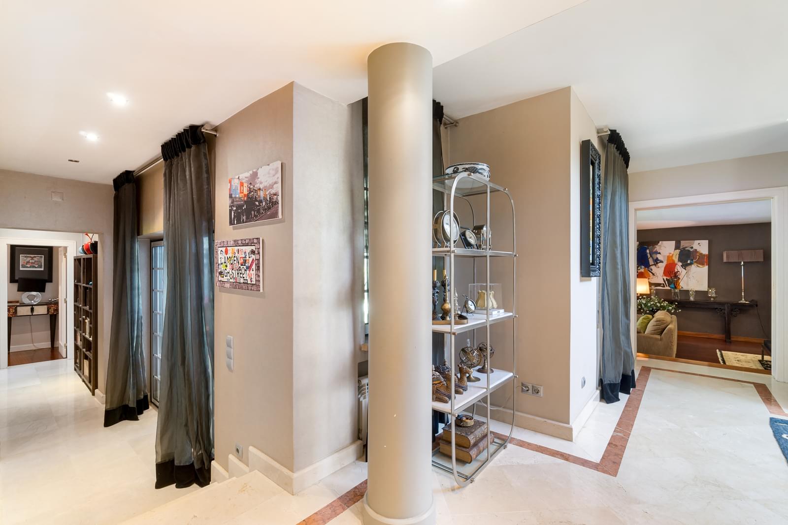 If you are looking for a villa located in Quinta da Beloura, a 5 bedroom villa with 450 sqm, inserted in an excellent 1.260 sqm land with golf views, this is the ideal property. Quinta da Beloura is known for its privileged location that combines the serenity of nature with the convenience of the city, enjoys a lot of serenity and security, being full of areas that provide leisure activities such as golf, tennis and paddle. It also provides supermarkets and hypermarket, as well as international schools, such as Tasis and Carlucci American School, and also a tennis school and a riding school. Nearby, there are also luxury hotels, such as Hotel Penha Longa Resort and Hotel Pestana Sintra Golf Resort. It is located 10 minutes away from the village of Cascais and Sintra, being very close to its beaches, 10 minutes away from three shopping centres and also with an excellent access to the motorway to Lisbon and the North of the country. The villa comprises three floors and it is distributed as follows: - In the basement there is a garage with 59 sqm, with parking space for two to three cars, a wine cellar and a storage area. - On the first floor, you enter a hall with a double high ceiling that accesses the second floor. From the hall you have access to the living room, kitchen, dining room, office and two suites. The living room accesses a closed porch of 50 sqm, which was converted into a dining room and living room, a leisure space to socialize with family and friends. The open space kitchen connected to a dining room facilitates the circulation between the two spaces. On the second floor there is another suite with access to a terrace overlooking the golf, two bedrooms and a large dimensioned bathroom that supports the two bedrooms. One of these bedrooms has access to a terrace overlooking the golf course. Outside, the leisure area overlooks the golf course, with an ample garden area, with swimming pool and a covered barbecue area where you can dine outdoors. Outdoor parking space and an enclosed area to accommodate your pets. The whole house is equipped with central heating, solar panels for heating sanitary water, water heater and reversible air conditioning on the enclosed porch. Come and visit! Porta da Frente Christie’s is a real estate agency that has been operating in the market for more than two decades. Its focus lays on the highest quality houses and developments, not only in the selling market, but also in the renting market. The company was elected by the prestigious brand Christie’s International Real Estate to represent Portugal in the areas of Lisbon, Cascais, Oeiras and Alentejo. The main purpose of Porta da Frente Christie’s is to offer a top-notch service to our customers. Property ID: PDF-PF33840 Price: €2,100,000 Property Size: 308.0 m2 Land Area: 1260.0 m2 Bedrooms: 5 Bathrooms: 5 Property Type: House Property Status: For Sale