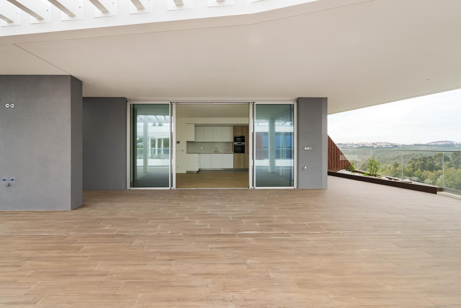 Apartment to debut at Belas Club Campo. Top floor, 1 bedroom apartment with a 75.84 sqm private gross area and a 176.71 sqm terrace, with connection points for barbecue installation. Terrace that surrounds the entire apartment, with a stunning view of the condominium reaching the sea. The apartment is distributed as follows: - Area of entry - Living room in open space with the kitchen - Fully equipped kitchen with household appliances - Clothesline/laundry area in semi-open space next to the kitchen - Full private bathroom This apartment also has 1 parking space and a storage area. Note: There is a 2 bedroom apartment right next door, also for sale, our Reference PF 32451, thus giving the possibility to the future buyer to join the two apartments, and turn into a magnificent 3 bedroom Penthouse, with two storage areas and three parking spaces in total. Just 15 minutes from Lisbon, Belas Club de Campo is the ideal place to live. Offer your family the possibility to live in the countryside, in a healthy and relaxing environment, but also with easy accesses to all the primary needs: School, Transportation, Grocery store, Pharmacy, Leisure areas (swimming pool, golf Course, Paddle Court, Football pitch and Club house with restaurant, among others.) With 24h Surveillance and concierge. Porta da Frente Christie’s is a real estate agency that has been operating in the market for more than two decades. Its focus lays on the highest quality houses and developments, not only in the selling market, but also in the renting market. The company was elected by the prestigious brand Christie’s International Real Estate to represent Portugal, in the areas of Lisbon, Cascais, Oeiras, Sintra and Alentejo. The main purpose of Porta da Frente Christie’s is to offer a top-notch service to our customers. ’ Property ID: PDF-PF32452 Price: €650,000 Property Size: 75.84 m2 Bedroom: 1 Bathroom: 1 Property Type: Apartment Property Status: For Sale