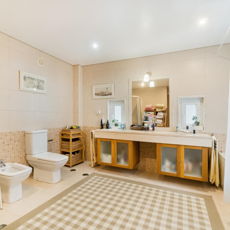 Enjoy the privilege of living in the prestigious condominium of Belas Clube de Campo with this charming 4 bedroom townhouse, now available for sale. Located in one of the most exclusive condominiums in the Lisbon region, standing out for its golf course and excellent greens, this property offers the best in quality of life and comfort. Renowned for its serene atmosphere and stunning views, this condominium offers a truly engaging lifestyle. With a meticulously maintained garden and an ample outdoor space to relax, its future residents will have the privilege of fully enjoying the lush nature and mild climate that this site provides. This magnificent villa, with a 481 sqm gross building area, has been meticulously designed to maximize space and incorporate a contemporary design, complemented by excellent finishes, such as granite in the bathrooms and kitchen, which provide a touch of unmatchable luxury. It is distributed by basement, ground floor and first floor. It has a generous basement with hall and storage area, as well as a garage for several cars. The ground floor comprises two living and dining rooms, equipped kitchen, bathroom, hall, pantry, laundry area, terrace and two patios. The first floor consists of 3 bedrooms and a master suite that includes an elegant closet, 3 bathrooms, 2 halls and an impressive balcony. In addition, this villa has a cosy porch and a barbecue for moments of conviviality. Comfort is ensured by central heating, a cosy fireplace, and solar panels for energy efficiency. With a 353 sqm private exterior area, ideal for outdoor moments, this property offers a magnificent space for the whole family. The southern sun exposure ensures an exceptional natural luminosity. The condominium offers a wide range of amenities, including school, mini-market, hairdresser, parapharmacy, restaurants, health club, swimming pools, tennis and paddle courts, football pitches and playgrounds, besides 24-hour surveillance. Located at Belas Clube de Campo, near Lisbon, Oeiras and Cascais, this is the perfect opportunity to offer your family a unique lifestyle, where nature and convenience meet harmoniously: Just 20 minutes away from the centre of Lisbon 20 minutes away from the beaches of the Cascais Line 15 minutes away from Parque das Nacões Do not miss this opportunity to acquire a luxury property in an exclusive environment. Book a visit today and discover your future home at Belas Clube de Campo. Porta da Frente Christie’s is a real estate agency that has been operating in the market for more than two decades. Its focus lays on the highest quality houses and developments, not only in the selling market, but also in the renting market. The company was elected by the prestigious brand Christie’s to represent in Portugal, in the areas of Lisbon, Cascais, Oeiras and Alentejo. The main purpose of Porta da Frente Christie’s is to offer a top-notch service to our customers. ’ Property ID: PDF-PF33012 Price: €1,150,000 Property Size: 281.22 m2 Land Area: 512.2 m2 Bedrooms: 4 Bathrooms: 4 Property Type: House Property Status: For Sale