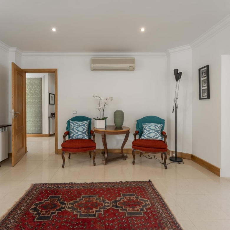 4 +1 bedroom villa, of traditional architecture, inserted in a 1290 sqm lot in Quinta da Beloura. This charming villa is composed by three floors: Ground Floor: - Entry hall - Social bathroom - Large dimensioned living and dining room with fireplace and heat recovery unit - Fully equipped kitchen with built-in household appliances, state-of-the-art, an American style fridge and a magnificent island to prepare meals. - TV room with direct access to the outside, the swimming pool area and with direct connection to the living room and kitchen - Corridor that accesses the bedroom’s area - Two bedrooms - Bathroom to support the bedrooms - Suite First Floor: - Very spacious master suite with a walk-in closet and balcony. Floor -1: - Suite - Ample area that can work as a multipurpose room - Storage area - Laundry area - Garage for 3 cars Very close to international schools, such as Carlucci American International School of Lisbon and TASIS Portugal, as well as all sorts of local business and services. The condominium of Quinta da Beloura has 24-hour surveillance. Good and quick accesses to motorways (A16, A5, IC19) to Sintra, Cascais, Estoril, 20 minutes away from Lisbon. At Quinta da Beloura, you can enjoy numerous leisure activities – Golf, gym Holmes Place, SPA, Tennis and Paddle Club, Equestrian Club, as well as commercial services, cinemas, restaurants, hairdressers, pharmacy, supermarkets, medical and aesthetic clinics. Porta da Frente Christie’s is a real estate agency that has been operating in the market for more than two decades. Its focus lays on the highest quality houses and developments, not only in the selling market, but also in the renting market. The company was elected by the prestigious brand Christie’s – one of the most reputable auctioneers, Art institutions and Real Estate of the world – to be represented in Portugal, in the areas of Lisbon, Cascais, Oeiras, Sintra and Alentejo. The main purpose of Porta da Frente Christie’s is to offer a top-notch service to our customers. Property ID: PDF-PF33402 Price: €2,200,000 Property Size: 332.4 m2 Land Area: 1290.0 m2 Bedrooms: 4 Bathrooms: 5 Property Type: House Property Status: For Sale