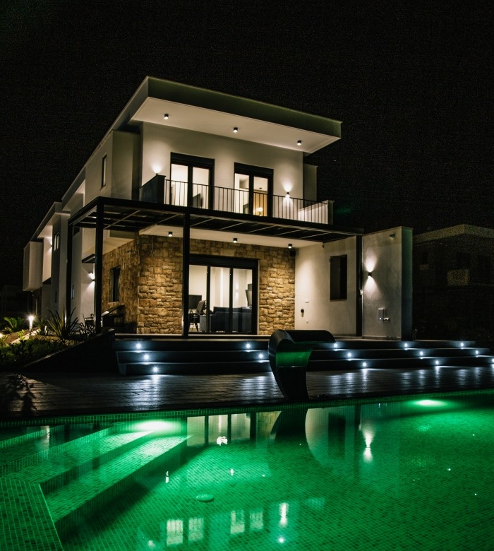 200m from the beach, 3 story building (basement floor, ground floor, and first floor) 5 bedrooms, 3 bathrooms, private swimming pool, large private garden area, private parking space, high-efficiency buildings complying all the high energy rate saving, solar powered hot water, CCTV and alarm system, triple glazing energy efficient windows, security door. Very high standard of construction complying with the country and EU regulations.