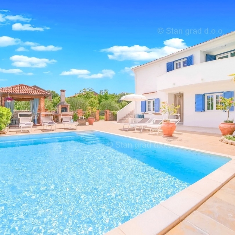 From the wide range of real estate offers in the northern Adriatic, the Stan Grad Immobilien agency offers a very luxurious coastal villa in the attractive tourist region of the island of Krk. This exceptional house is located in a prime location in the Soline Bay in the immediate vicinity of the sea. Structurally, this is a detached house with two floors. This luxury house covers a total of 2 floors. The house is intended for one family. The total area of this house is 230 m2. This area includes the entrance hall, bathroom, 2 bedrooms, kitchen with dining room, living room with access to a covered terrace on the ground floor. An internal staircase leads to the first floor where there are 2 bedrooms, each with its own bathroom. A rich set of new generation appliances has been installed in the exceptionally maintained and luxuriously furnished interior of the property in question. The ownership of this house also includes a carefully landscaped garden with a heated saltwater pool, a sunbathing area and a summer kitchen. Two cars can be comfortably parked on the garden of the property described. In addition to the previous characteristics, it is important to say that the house has a beautiful view of the sea and the coastline. The owner of this property is a natural person and when transferring its ownership, the buyer is charged a real estate transfer tax of 3%. The seller of this house guarantees complete and proper documentation and a simple transfer of the property to the buyer. Contact us with confidence at the address of our branch on the island of Krk and we will be your partner for a safe purchase of property in Kvarner. If you decide to choose us, the Stan Grad Immobilien agency will be happy to help you transfer ownership of the property, as well as bills for electricity, water and utilities to your name.