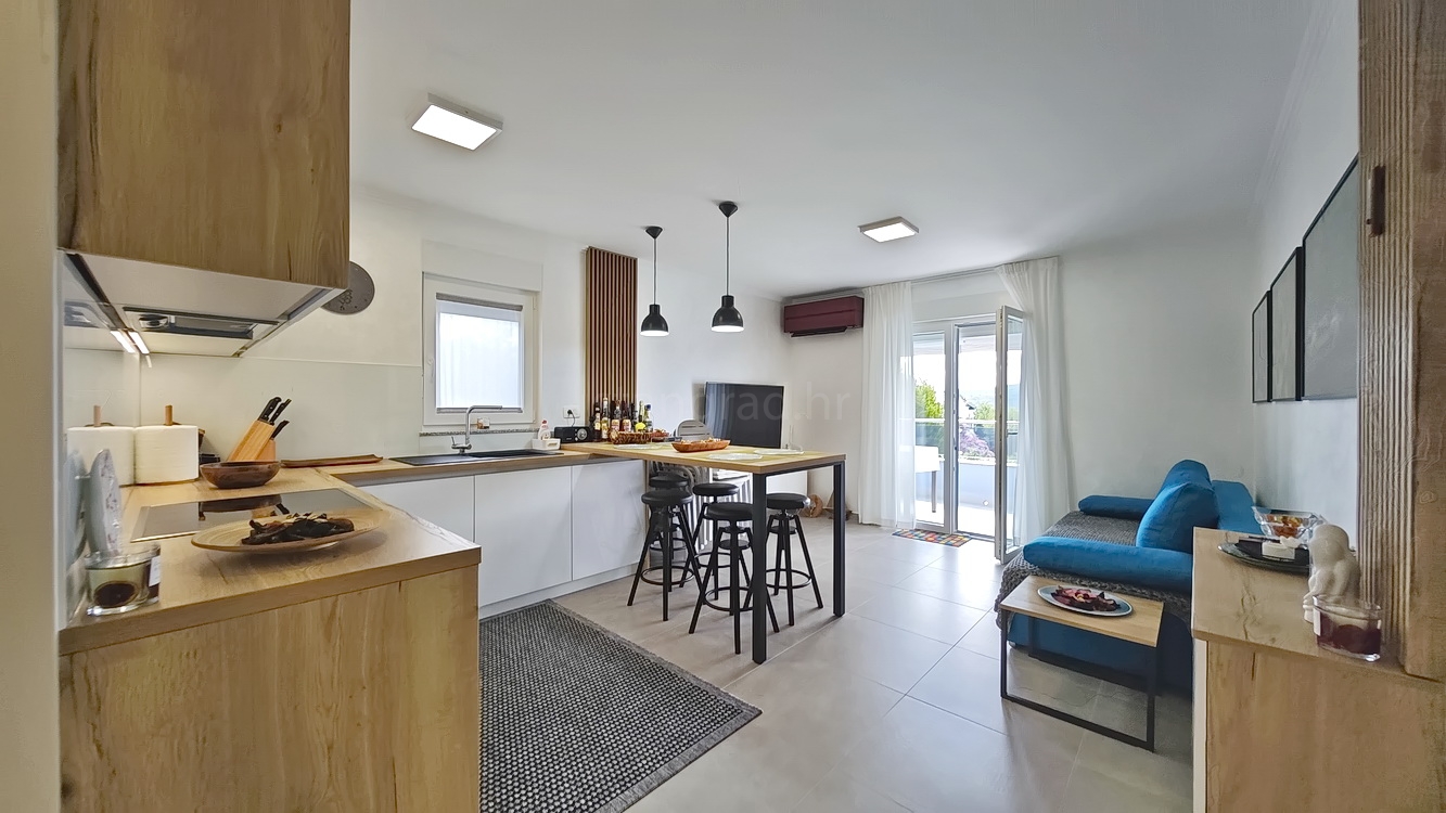 From the outstanding selection of properties offered by Stan Grad Immobilien, this exceptionally attractive and tastefully furnished apartment stands out. It is located in one of the most sought-after areas on the island of Krk, in the beautiful Soline Bay. This property represents the perfect combination of a peaceful Mediterranean setting, immediate proximity to the sea, and full functionality, making it an ideal choice not only for a summer getaway but also for year-round living.
