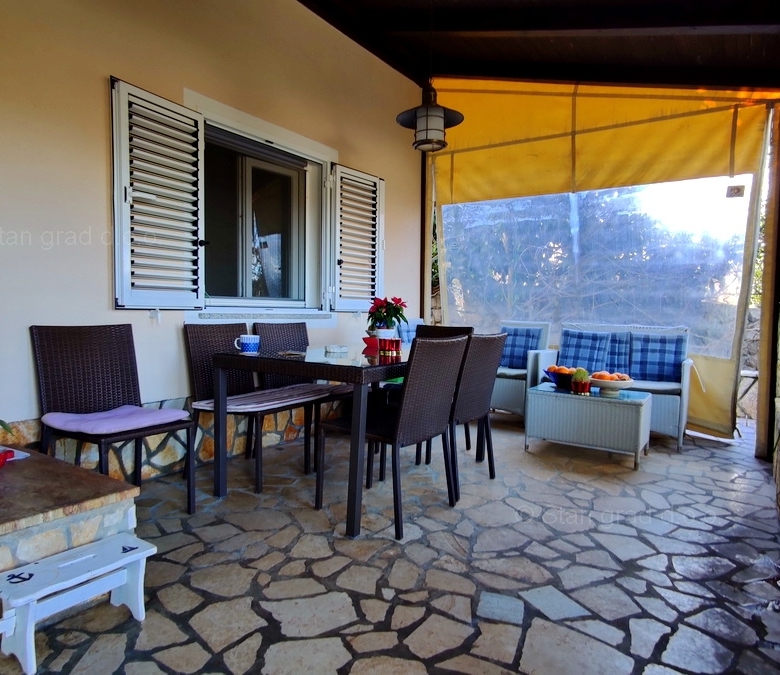 Within our offer of real estate on the charming Kvarner locality on the island of Krk, we highlight a good opportunity for the acquisition of a quality house for vacation or family housing. The property is located near Uvala Soline, in a location that offers enjoyment in the greenery of nature. From a structural point of view, this is a detached two-story house with an auxiliary building of approx. 29 m2. The beautifully decorated house consists of a total of 2 spatially useful floors. The house contains two separate apartments with separate entrances. The total area covered by this house is 179 m2. In the basement of the mentioned property, there is an apartment with a living room, a kitchen with a dining room, 1 bedroom, a bathroom and a covered terrace. On the ground floor of the house there is an apartment with a living room, a kitchen with a dining room, 2 bedrooms, a bathroom and a terrace. It is important to note that the property also has a storage room and a laundry room. The maintained interior of the property is equipped with a set of quality technical equipment and pieces of good furniture. There is a wooden house, a woodshed and 2 outdoor showers on the attached, beautifully organized garden next to the house. Several cars can be comfortably parked in the garden of the property. In addition to all of the above, it is important to say that the house has a good view of the sea and the coast. The house in question is owned by a physical obligation and upon transfer of ownership is subject to the calculation of real estate transfer tax in the amount of 3%. The seller guarantees clean ownership documentation of the house and easy transfer of the property. We are happy to welcome you in Kvarner, at the address of our office on the island of Krk. In addition to the search and presentation of the ideal property for you, our brokerage office will assist you in the transfer of utility bills and the registration of the ownership of the house.