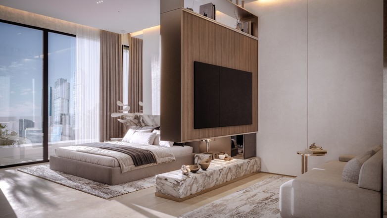 Balcony: Private outdoor spaces offering breathtaking views of the Dubai skyline and the canal.